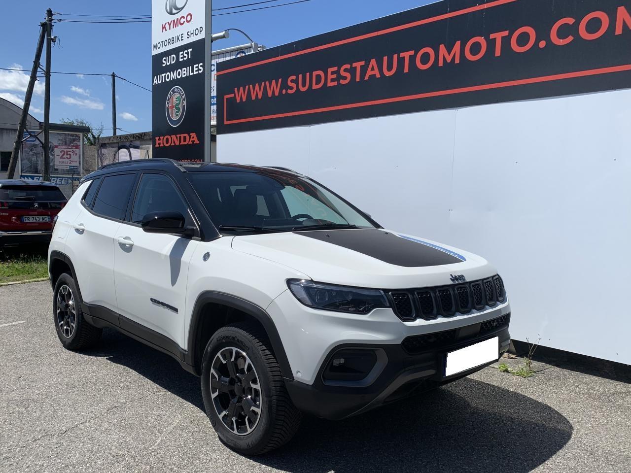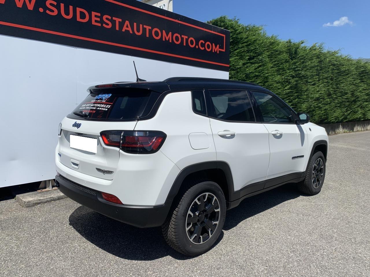 Accoudoir central arrière avec porte-gobeletAffichage de la pression des pneumatiquesAide au démarrage en côteAide au stationnement avant et arrière, avec signal sonoreAirbag rideaux avant et arrièreAirbags frontaux avant (déconnectable côté passager)Airbags latéraux avantAlarme périmétriqueBadges Trail RatedBanquette arrière avec dossiers rabattables à plat 60/40Barres de toit longitudinalesCâble type 2 mode 3 : recharge publique (32 A / 7,4 kW)Caméra de recul Parkview avec affichage dynamiqueClimatisation automatique bi-zone, avec aérateurs à l'arrièreCombiné d'instrumentation numérique configurable à écran TFT de 10,25"Commutation automatique des feux de croisement et de route, Light AssistConnexions Apple CarPlay et Android AutoCouleur Colorado Red avec Toit couleur noirCrochets de remorquageDétecteur de fatigueDétecteur de luminositéEnter-N-Go : système d'ouverture et de démarrage sans cléEssuie-glace à déclenchement automatiqueFeux arrière à signature LEDFrein de stationnement électriqueFreinage automatique d'urgence avec détection piétons et cyclistesJantes alliage 17'' Trailrated Pneumatiques M+S avec floconLimiteur de vitesse intelligentPare-choc avant off-road et garde au sol surelevéePhares LED avec signature spécifiquePlaques de protectionPrise 12V dans le coffrePrise USB type A et CProjecteurs antibrouillard à LEDProjecteurs Jeep Performance LEDRéglage manuel de sièges avant 6 positionsRégulateur de vitesse adaptatif avec fonction Stop & GoRétroviseur intérieur électrochromeRétroviseurs extérieurs dégivrants et rabattables électriquementRoue de secours (215/65R17, usage temporaire)Sellerie cuir ventilé Trailhawk noir avec surpiqures rougesServices Uconnect avec fonctionnalités hybrides rechargeables dédiéesSiège conducteur à réglage lombaire électriqueSiège passager rabattable à platSièges avant électriquesSièges avant ventilésSticker de capot noirSuspensions tout-terrainSystème anti-louvoiement en conditions de tractageSystème audio "Uconnect": 6 haut-parleurs / DAB (Digital Audio Broadcasting) / BluetoothSystème d'avertissement anticollision actifSystème d'avertissement de franchissement de ligne avec correctionSystème de reconnaissance des panneaux de signalisationSystème préventif anti-retournement (ERM)Tapis de coffre réversibleTapis de solTransmission intégrale eAWD avec Selec-Terrain et mode RochersVitres latérales et lunette arrière surteintées