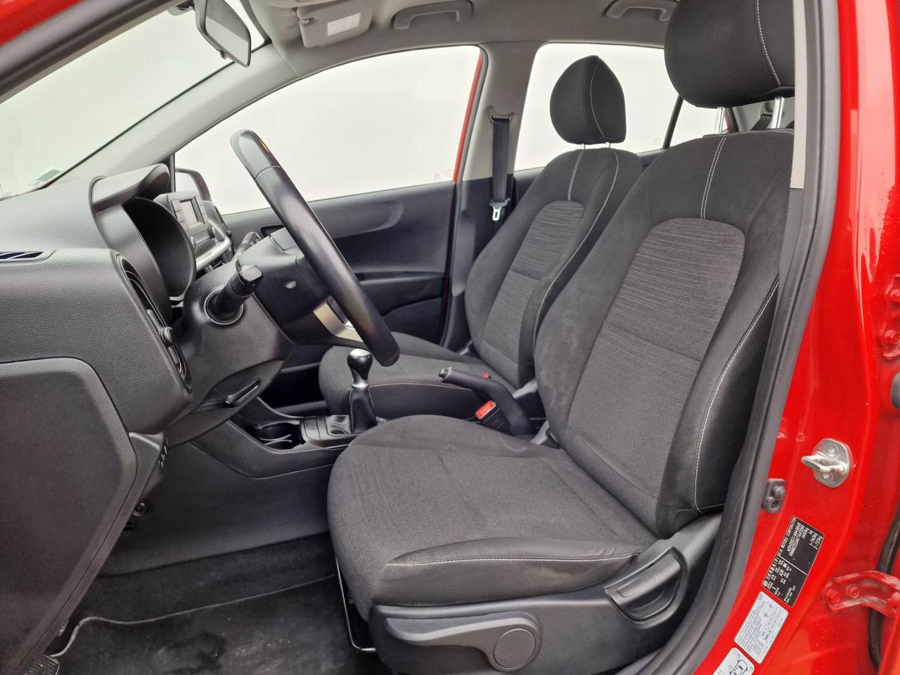 4 haut-parleursABS (antiblocage des roues) avec EBD (répartiteur électronique de la force de freinage)Airbags frontaux conducteur et passager (passager déconnectable)Airbags latéraux conducteur et passagerAirbags rideaux avant et arrièreAllumage automatique des feux de détresse en cas de freinage d'urgenceAllumage automatique des projecteurs en fonction de la luminositéAppuis-tête avant / arrière réglables en hauteurAssistance au démarrage en côte (HAC)Banquette arrière rabattable 60/40Becquet AR intégré dans la couleur de la carrosserieBoîte à gants avec couvercleBoucliers avant et arrière couleur carrosserieCache-bagagesCeintures de sécurité arrière 3 points (X3)Ceintures de sécurité avant à prétensionneurs, limiteur d'effortCeintures de sécurité avant réglables en hauteurClimatisation manuelleCompte-toursCondamnation centralisée à distanceConnectique audio AUX et USBConsole centrale avec double compartiment de rangement et porte-gobelets rétractablesContour de calandre aspect aluminiumContrôle électronique de la trajectoire (ESC)Contrôle de pression des pneus ( TPMS )Contrôle de Stabilité en Courbe (CSC)Contrôle de stabilité en ligne droite (SLSC)Direction à assistance électrique (MDPS)Eclairage dans le coffreFeux avant diurnesIndicateur de changement de rapportInsert de tableau de bord façon aluminiumJantes en acier 14'' avec enjoliveursKit de dépannage en cas de crevaisonLève-vitres électriques avantOrdinateur de bordOuverture de la trappe à essence de l'intérieur du véhiculePare-soleil avec miroirs de courtoisie conducteur et passagerPlafonnier à l'avantPoche aumônière au dos du siège passager avantPoignées de portes extérieures couleur carrosseriePoignées de portes intérieures noiresPrise 12 volts sur la console centrale avantRégulateur et limiteur de vitesseRétroviseur intérieur jour/nuit manuelRétroviseurs extérieurs couleur carrosserieSellerie tissu noir "Stardust"Siège conducteur réglable en hauteurSystéme audio MP3 avec commande au volantSystème de fixation ISOFIX aux places arrière latéralesSystème de téléphonie mains-libres BluetoothTroisième feu stopVitres teintéesVolant et pommeau de levier de vitesses gainés cuirVolant réglable en hauteur