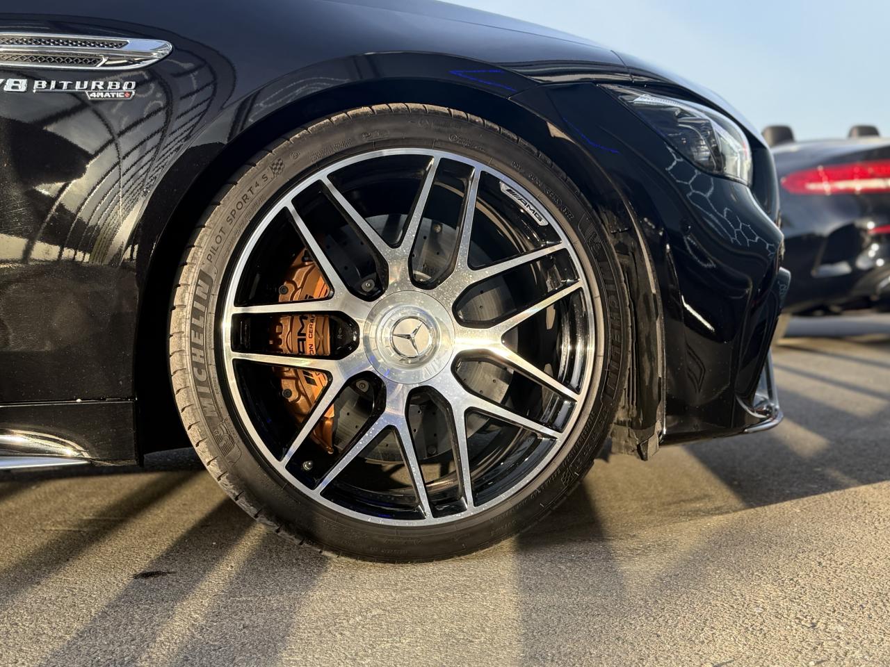 ADAPTIVE BRAKE avec fonction HOLD et aide au démarrage en côte, préremplissage et séchage des freins par freinage en cas de pluieAérodynamisme actif avec AIRPANEL sur la jupe avant et déflecteur arrière extractible à commande électriqueAffichage du non bouclage des ceintures de sécurité aux places arrièreApplication AMG Track PaceBaguettes de seuil éclairées avec inscription AMGBoîte de vitesses 9G SPEEDSHIFT MCT AMG avec fonction RACE STARTBossage du capot moteurBoutons AMG sur le volantCapot moteur actif pour la protection des piétonsClé principale avec blason « AMG »Climatisation automatique THERMATIC à 2 zonesCombiné d'instruments AMG gradué jusqu'à 360 km/h avec menu principal AMG, chronomètre de course (RACETIMER) et styles d'affichage "Classique", "Sport" et « Supersport »Combiné d'instruments WIDESCREEN composé de deux écrans de 31,2 cm (12,3")Contrôle de pression des pneus ( TPMS )Déflecteur arrière à déploiement électriqueDétecteur d'angle mortDirection active de l'essieu arrière AMGDirection paramétrique AMG à 3 niveauxDoubles sorties d'échappement trapézoïdales traitées en chrome brillant à gauche et à droiteDRIVE UNIT AMG façon V8 avec 8 touches à pictogramme au graphisme soigné, élément de commande capacitif, levier sélecteur avec blason AMG estampé, vaste bordure chromée argentée et partie interne en laque noireDYNAMIC SELECT AMG avec programmes de conduite « Chaussée glissante », « Comfort », « Sport », « Sport+ », « RACE » avec « drift mode » et « Individual »Eclairage d’ambiance 64 couleurs, 10 ambiances chromatiques et 2 effetsESP AMG à 3 modesEssuie-glace à déclenchement automatiqueFeux arrière à LED tout en longueur avec clignotants à défilementFreinage d'urgence assisté actifGrille de calandre propre à AMGHayon mains libres (motorisé, s'ouvre et se ferme d'un mouvement du pied)Intégration pour smartphone avec Apple CarPlayKEYLESS-GO : système de démarrage sans cléKit anti-crevaison TIREFITLogo sur hayonLogos sur ailes avantOuverture et fermeture confortPack DYNAMIC PLUS AMGPack StationnementPavé tactile Touchpad sur la console centralePRE-SAFE : système de sécurité préventive avec enrouleurs de ceinture à rétracteur réversible et fermeture automatique des ouvrantsPrise 12V dans le coffreProjecteurs MULTIBEAM LED avec assistant de feux de route adaptatifs PlusRangement intégré à l'accoudoir centralRéglage et suivi du véhicule à distanceSièges avant chauffantsSièges avant, colonne de direction et rétroviseurs extérieurs tout électrique avec fonction MémoiresSièges sport AMG en cuir Nappa noir avec surpiqûre contrastée gris cristal, blason AMG estampé sur les appuie-tête et enjoliveur chromé argenté avec inscription « AMG »Système antiblocage de roues (ABS)Système d'Appel d'Urgence Mercedes-BenzSystème d’échappement commutable AMG PerformanceSystème de freinage composite hautes performances avec disques de 390 mm à l'avant et 360 mm à l'arrièreSystème de sonorisation Surround Burmester avec 14 haut-parleurs pour une puissance de 640 WSystème de stabilisation en cas de vent latéralTapis de sol AMGTrain de roulement AMG RIDE CONTROL+Transmission intégrale variable 4MATIC+ Performance AMGVide-poche avant avec prise 12 VVitres latérales arrière et lunette arrière teintéesVolant Performance AMG en microfibre DINAMICA noire avec méplat dans la partie inférieure, boutons Touch-Control, repère à 12 heures, inscription « AMG », palette de changement de rapport chromées argentées et touches AMG