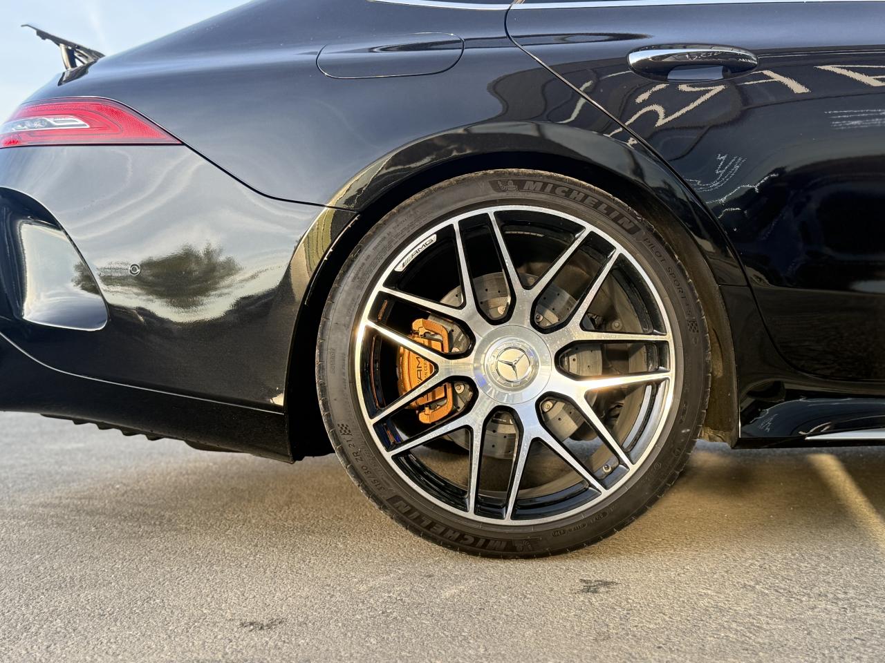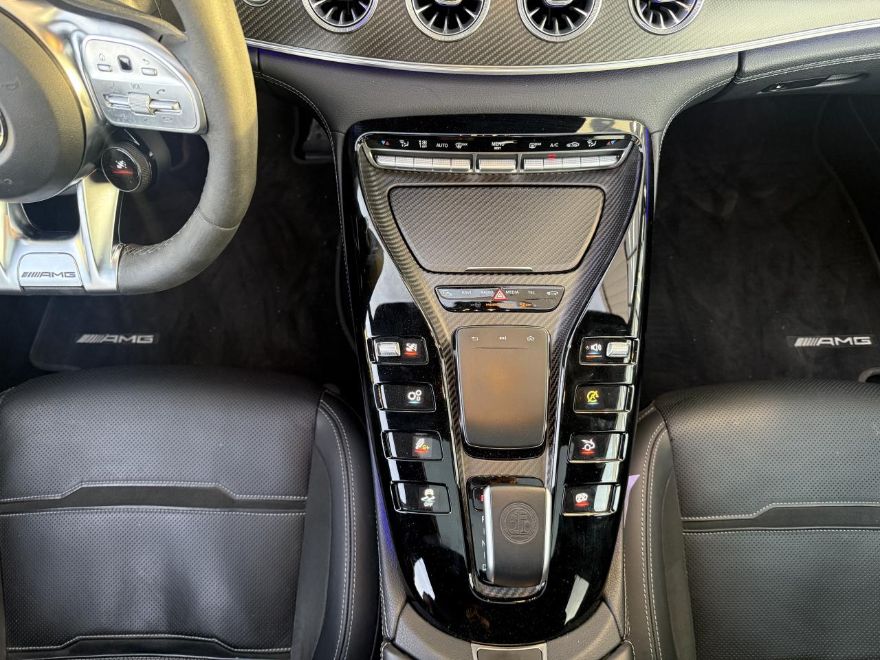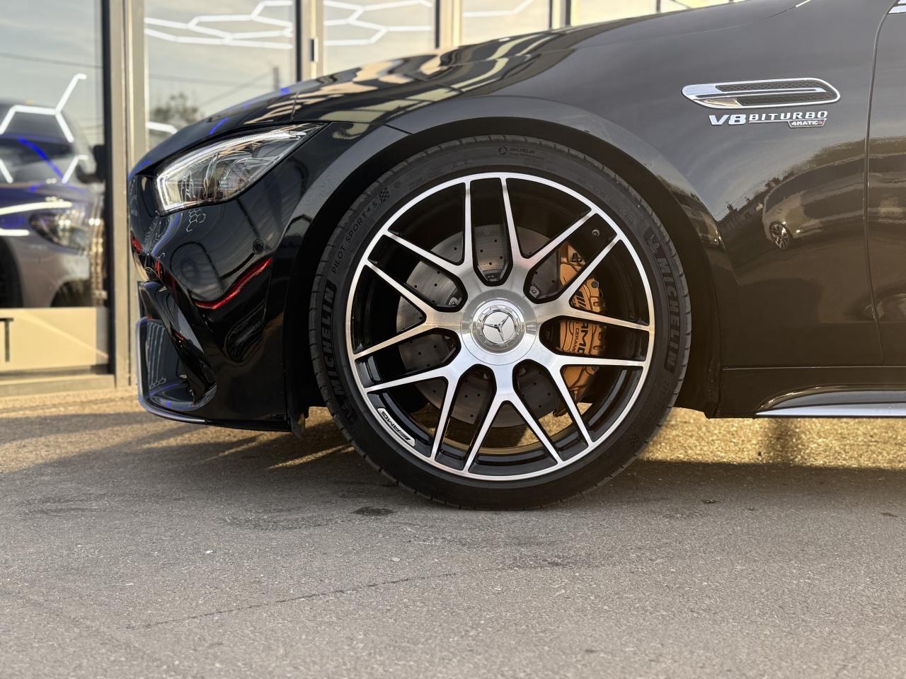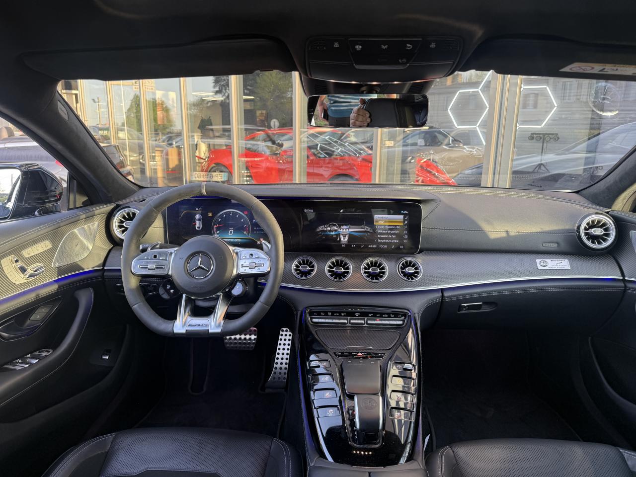 ADAPTIVE BRAKE avec fonction HOLD et aide au démarrage en côte, préremplissage et séchage des freins par freinage en cas de pluieAérodynamisme actif avec AIRPANEL sur la jupe avant et déflecteur arrière extractible à commande électriqueAffichage du non bouclage des ceintures de sécurité aux places arrièreApplication AMG Track PaceBaguettes de seuil éclairées avec inscription AMGBoîte de vitesses 9G SPEEDSHIFT MCT AMG avec fonction RACE STARTBossage du capot moteurBoutons AMG sur le volantCapot moteur actif pour la protection des piétonsClé principale avec blason « AMG »Climatisation automatique THERMATIC à 2 zonesCombiné d'instruments AMG gradué jusqu'à 360 km/h avec menu principal AMG, chronomètre de course (RACETIMER) et styles d'affichage "Classique", "Sport" et « Supersport »Combiné d'instruments WIDESCREEN composé de deux écrans de 31,2 cm (12,3")Contrôle de pression des pneus ( TPMS )Déflecteur arrière à déploiement électriqueDétecteur d'angle mortDirection active de l'essieu arrière AMGDirection paramétrique AMG à 3 niveauxDoubles sorties d'échappement trapézoïdales traitées en chrome brillant à gauche et à droiteDRIVE UNIT AMG façon V8 avec 8 touches à pictogramme au graphisme soigné, élément de commande capacitif, levier sélecteur avec blason AMG estampé, vaste bordure chromée argentée et partie interne en laque noireDYNAMIC SELECT AMG avec programmes de conduite « Chaussée glissante », « Comfort », « Sport », « Sport+ », « RACE » avec « drift mode » et « Individual »Eclairage d’ambiance 64 couleurs, 10 ambiances chromatiques et 2 effetsESP AMG à 3 modesEssuie-glace à déclenchement automatiqueFeux arrière à LED tout en longueur avec clignotants à défilementFreinage d'urgence assisté actifGrille de calandre propre à AMGHayon mains libres (motorisé, s'ouvre et se ferme d'un mouvement du pied)Intégration pour smartphone avec Apple CarPlayKEYLESS-GO : système de démarrage sans cléKit anti-crevaison TIREFITLogo sur hayonLogos sur ailes avantOuverture et fermeture confortPack DYNAMIC PLUS AMGPack StationnementPavé tactile Touchpad sur la console centralePRE-SAFE : système de sécurité préventive avec enrouleurs de ceinture à rétracteur réversible et fermeture automatique des ouvrantsPrise 12V dans le coffreProjecteurs MULTIBEAM LED avec assistant de feux de route adaptatifs PlusRangement intégré à l'accoudoir centralRéglage et suivi du véhicule à distanceSièges avant chauffantsSièges avant, colonne de direction et rétroviseurs extérieurs tout électrique avec fonction MémoiresSièges sport AMG en cuir Nappa noir avec surpiqûre contrastée gris cristal, blason AMG estampé sur les appuie-tête et enjoliveur chromé argenté avec inscription « AMG »Système antiblocage de roues (ABS)Système d'Appel d'Urgence Mercedes-BenzSystème d’échappement commutable AMG PerformanceSystème de freinage composite hautes performances avec disques de 390 mm à l'avant et 360 mm à l'arrièreSystème de sonorisation Surround Burmester avec 14 haut-parleurs pour une puissance de 640 WSystème de stabilisation en cas de vent latéralTapis de sol AMGTrain de roulement AMG RIDE CONTROL+Transmission intégrale variable 4MATIC+ Performance AMGVide-poche avant avec prise 12 VVitres latérales arrière et lunette arrière teintéesVolant Performance AMG en microfibre DINAMICA noire avec méplat dans la partie inférieure, boutons Touch-Control, repère à 12 heures, inscription « AMG », palette de changement de rapport chromées argentées et touches AMG