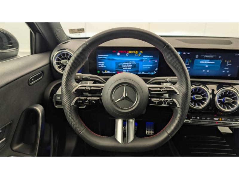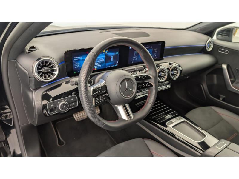 ABS (anti-blocage de roues), ASR (antipatinage), BAS (freinage d'urgence assisté)Accoudoir rabattable dans la console centrale pour le conducteur et le passager AVADAPTATIVE BRAKE avec fonction HOLD et système d'aide au démarrage en côte, préremplissage et séchage des freins par freinage en cas de pluieAirbag genouAirbags frontaux pour le conducteur et le passager AVAirbags latéraux pour le conducteur et le passager AV (airbags combinés thorax et bassin)Airbags rideauxAMG Line En liaison avec AMG Line Advanced Plus ou avec AMG Line Premium ou avec AMG Line Premium Plus ou avec Special EditionAntenne pour GPSAssistant de limitation de vitesse par lecture des panneaux grâce à une caméraAssistant de stabilisation en cas de vent latéralAssistant limitation de vitesseATTENTION ASSISTAvertisseur de franchissement de ligne actifBaguettes de ligne de ceinture et entourages de vitres noir brillantBanquette AR rabattableBoîte à gants éclairéeBoîte de vitesse automatique 7G-DCTBuses de ventilation dans le ton noir avec bague extérieure en argent matCalandre avec pattern étoilé chromé, étoile centrale Mercedes et lamelle unique chroméeCaméra de reculCapot moteur avec bossages stylisésCapteur de luminositéCeintures de sécurité noiresCiel de pavillon en tissu NoirConnexion Bluetooth pour téléphone portableContrôle de pression des pneumatiquesDirection paramétriqueDirection paramétrique avec assistance asservie à la vitesseDossiers des sièges AR rabattables selon un rapport de 40/20/40Double porte-gobeletsDYNAMIC SELECTEcran média 10,25"Essuie-glaces avec détecteur de pluieEtriers de frein AV avec monogramme Merceds-BenzFeux de stop adaptatifsFilet de rangement au dos des sièges AVFixations iSize pour siège-enfant avec sangle Top Tether aux places extérieures ARFonction de démarrage sans clé KEYLESS-GOFonctionnalités élargies MBUXFrein de stationnement électriqueFreinage d'urgence assisté actifGarniture en Similicuir ARTICO/microfibre MICROCUT NoirInserts décoratifs en microfibre MICROCUTInstrumentation digitale avec écran 10"Jantes alliage AMG de 45,7 cm (18") à 5 doubles branches, finition gris trémolite/naturel brillantJupe AR AMG avec enjoliveurs de sortie d’échappement apparents et insert décoratif noirJupe AV AMG avec splitter AV en finition chroméeKit anticrevaison TIREFITModule de communication LTE pour l'utilisation des services connectésNavigation MBUX PremiumPédalier AMG sport en acier inoxydable brossé à picots en caoutchouc noirsPack USB Plus : 2 ports USB-C sous l'accoudoir central 1 port USB-C pour l'AR 1 port USB-C dans le vide-poche Prise 12 V dans le vide-pochesPack Visibilité : Essuie-glaces avec détecteur de pluie Pare-soleil avec miroir de courtoisie éclairé Lampes d'éclairage intérieur AV et AR, du plancher, du porte gobelets et spots de lecturePare-soleil avec miroir de courtoisie éclairéPeinture non métalliséePré-équipement pour la surveillance du véhicule incluant la localisation de celui-ci et la notification en cas de mouvementProtections de bas de caisse AMG dans le ton carrosserieRégulateur de vitesse TEMPOMAT avec limiteur de vitesseRadio digitaleRappel de présenceServices à distanceSièges AV chauffantsSurpiqûres contrastées noires (en liaison avec la garniture en ARTICO/microfibre MICROCUT noire)Système d'appel d'urgence Mercedes-BenzTrain de roulement confort avec châssis surbaisséVide-poche sur la console centrale avec couvercle à enrouleurVolant à 3 double branchesVolant Sport multifonction en cuir Nappa avec surpiqûres rouges, méplat dans la partie inférieure, perforations dans la zone de préhension, commandes tactiles à gauche et à droite et palettes de changement de rapport au volant chromées argentées