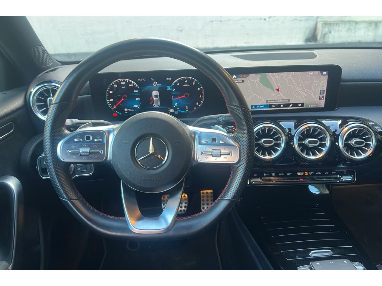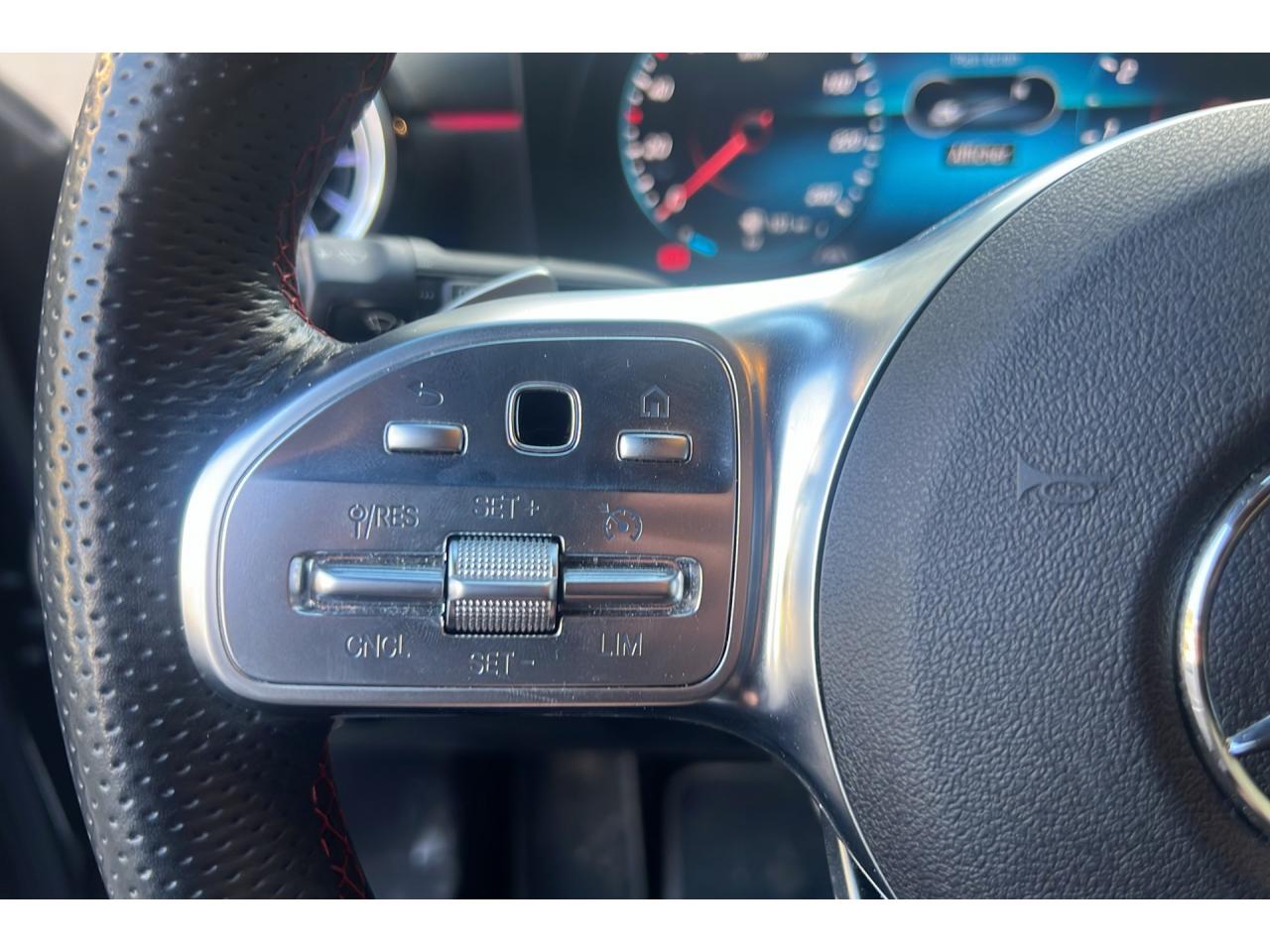 ABS (antiblocage de roues), ASR (antipatinage) et BAS (freinage d'urgence assisté)Accoudoir central avantADAPTIVE BRAKE avec fonction HOLD et aide au démarrage en côte, préremplissage et séchage des freins par freinage en cas de pluieAffichage du non bouclage des ceintures de sécurité aux places arrièreAirbag frontaux conducteur et passagerAirbag genoux conducteurAirbags latéraux (thorax / bassin) avantAirbags rideauxAttention Assist : système de détection de somnolenceAvertisseur de franchissement de ligne actifBaguettes de ligne de ceinture et entourages de vitres chromésBaguettes de seuil avec monogramme "Mercedes-Benz"Boîte à gants éclairéeBoîte de vitesses à double embrayage 7G-DCTBuses de ventilation noires avec cerclage chroméCalandre diamant avec pastilles chromées et lamelle avec insert chroméCapot moteur actif pour la protection des piétonsCiel de pavillon en tissu noirClimatisation automatique THERMATIC à 1 zone avec filtre à charbons actifs contre la poussière, la suie et le pollenConnexion Bluetooth pour téléphone portableConsole centrale Noir brillantDésactivation automatique de l’airbag passager avantDirection paramétrique asservie à la vitesseDossier AR rabattable 40/20/40Double porte-gobelet dans la console centraleDYNAMIC SELECT avec les programmes de conduite « ECO », « Confort », « Sport » et « Individual »Essieu arrière à bras combinésEtriers de freins avant avec monogramme Mercedes-Benz et disques perforésFeux de stop adaptatifsFilets à bagages au dossier des sièges AVFrein de stationnement électriqueFreinage d'urgence assisté actifGarnitures intérieures en microfibre DINAMICA/similicuir ARTICOI-Size et Top Tether pour les sièges arrière extérieursInserts décoratifs en microfibre DINAMICAInterface USB-C dans le vide-poches et dans la console centrale arrièreJantes alliage AMG 45,7 cm (18'') à 5 doubles branches gris titane et argentJupe arrière AMG avec insert décoratif chroméJupe avant AMG avec splitter en finition chromeKit anti-crevaison TIREFITKit carrosserie AMG composé de jupe avant, protections de bas de caisse et jupe arrièreModule de communication LTE pour l'utilisation des services Mercedes me connectPack AdvantagePack visibilitéPavé tactile TouchpadPédalier sport AMG en acier inoxydable brossé avec picots en caoutchoucPeinture noirePré-équipement pour l'autopartage via l'application Mercedes me Car SharingPré-équipement pour Live Traffic Information (service gratuit pendant 3 ans après activation Mercedes me)Pré-équipement pour réglages et suivi du véhicule à distance (service gratuit pendant 3 ans après activation Mercedes me)Prise 12V dans le vide poche de la console centraleProjecteurs hautes performances à technologie LEDRainsensor (Capteur de pluie et de luminosité)Réception radio numérique (DAB)Reconnaissance des panneaux de limitation de vitesseSièges avant avec réglages de la hauteur et de l'approche du siège, de l'inclinaison du dossier, de l'inclinaison de l'assise, de la profondeur de l'assiseSièges avant sport intégrauxSorties d'échappement apparentes en chrome (non fonctionnelles)Système d'Appel d'Urgence Mercedes-BenzSystème de commande vocale et assistant personnel activable grâce à "Hey Mercedes"Système de contrôle de la pression des pneusSystème de stabilisation en cas de vent latéralSystème multimédia MBUX avec fonctionnalités élargies (profils personnalisés, fonctions prédictives, borne Wifi, webradio)Tapis de sol AMGTEMPOMAT (régulateur et limiteur de vitesse)Train de roulement confort avec châssis surbaisséVolant sport multifonction à 3 branches en cuir Nappa, avec méplat, perforations au niveau de la zone de préhension, boutons tactiles Touch-Control, cache chromé et surpiqûres rouges