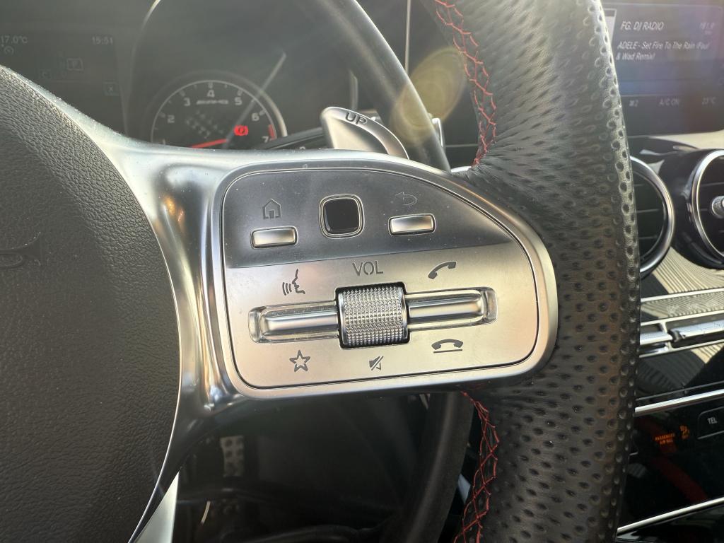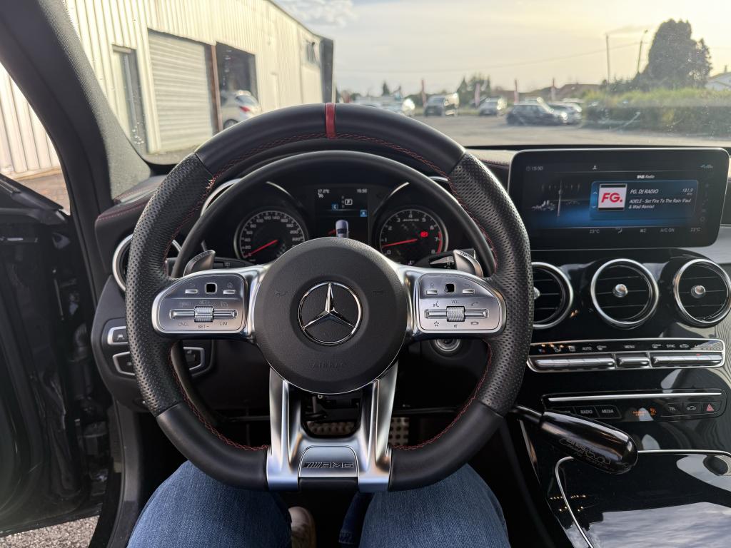 2 prises USB à l'arrièreABS (antiblocage de roues) et ASR (antipatinage)ADAPTIVE BRAKE avec fonction HOLD et aide au démarrage en côte, préremplissage et séchage des freins par freinage en cas de pluieAllumage automatique des projecteursAssistance dynamique en virage (DCE – Dynamic Cornering Enhancement)Attention Assist : système de détection de somnolenceAutoradio Audio 20 GPS double tuner incluant la restitution de fichiers audio MP3/WMA/WAV/AAC, la connexion Bluetooth pour téléphone portable, le Picture Viewer pour l'affichage de fichiers images, la lecture de SMS ou d'e-mailsBoîte de vitesses à 9 rapports SPEEDSHIFT TCT AMG avec passages des rapports plus courts et fonction de double débrayage au rétrogradageClimatisation automatique THERMATIC à 2 zonesDirection paramétrique sport AMG à 2 niveaux avec démultiplication variable et réglage spécifique AMGDYNAMIC SELECT AMG avec 5 modes de conduiteFrein de parking électriqueHayon EASY-PACK avec ouverture et fermeture par commande électriqueKEYLESS-GO : système de démarrage sans cléKit carrosserie AMGLève-vitres électrique (x4) à commande séquentielle et dispositif anti-pincementPack Confort des sièges avantPack d'éclairage intérieurPack PremiumPack rangementProjecteurs MULTIBEAM à LED avec feux de route adaptatifs PLUS ULTRA RANGERégulation du comportement dynamique (ESP) à 3 niveaux disponibles via la touche ESPRétroviseurs extérieurs électriques, chauffants et asphériques, avec rappels de clignotants intégrésSièges avant sport AMG avec monogramme "AMG"SPEEDTRONIC (limiteur de vitesse)Système de navigation premium COMAND Online incluant navigation par disque dur avec cartographie des villes en 3D, affichage des cartes satellites, service "Live Traffic Information" pour optimiser le guidage dynamique, système de commande vocale LINGUATRONIC, réceptioTempomat (Régulateur de vitesse)TOUCHPAD : pavé tactile permettant la navigation dans les menus audio, téléphone et média sur l'écran couleur