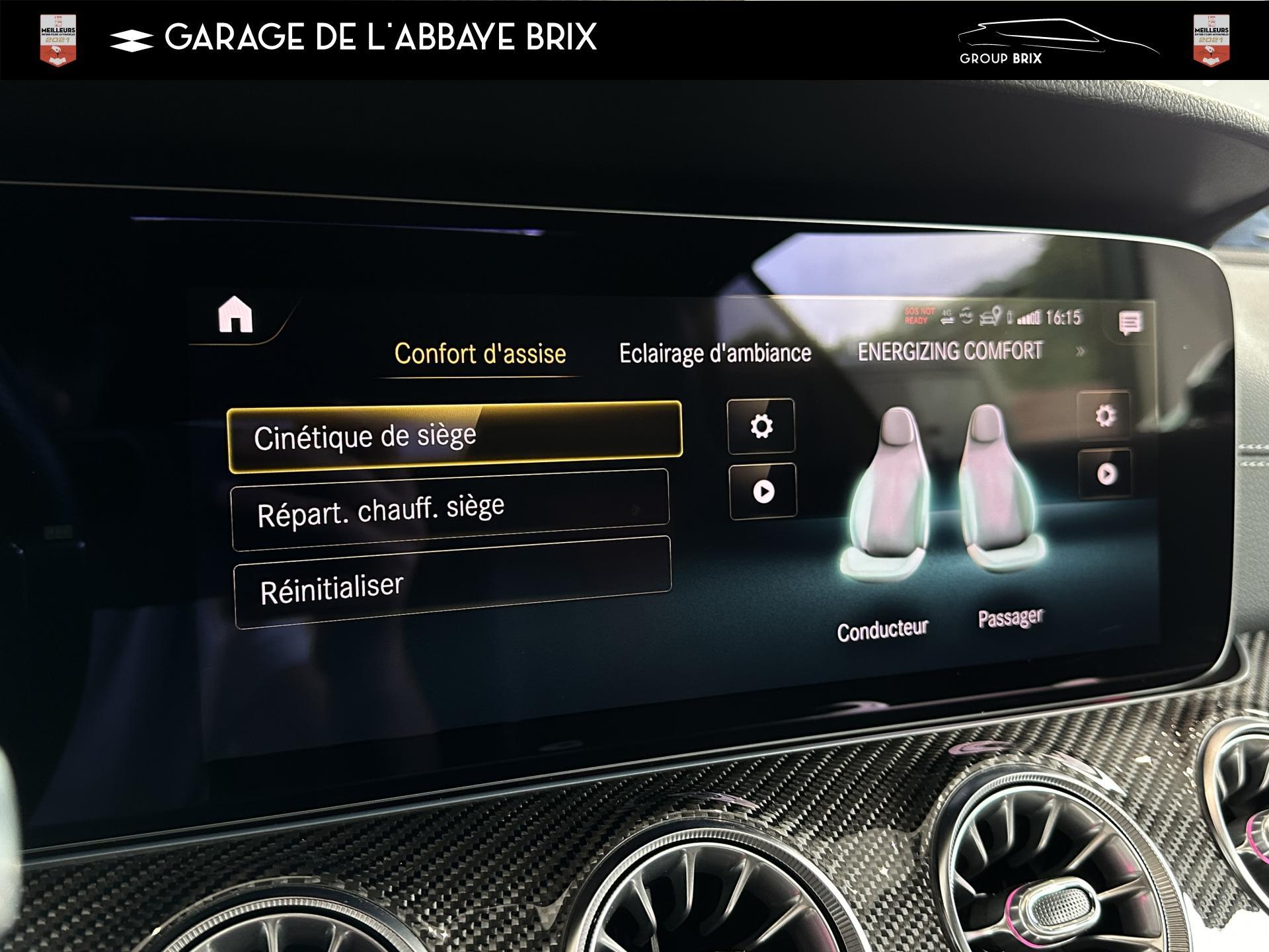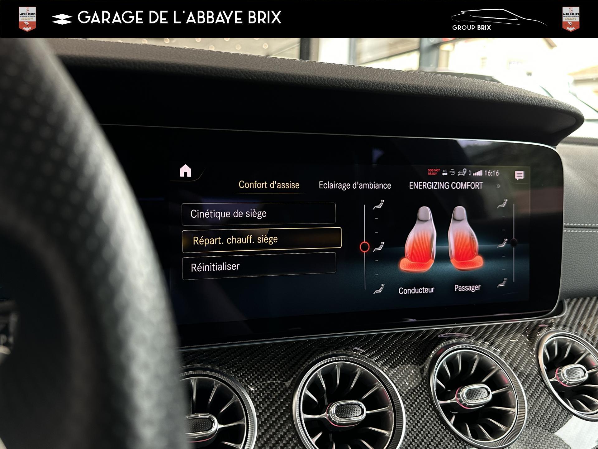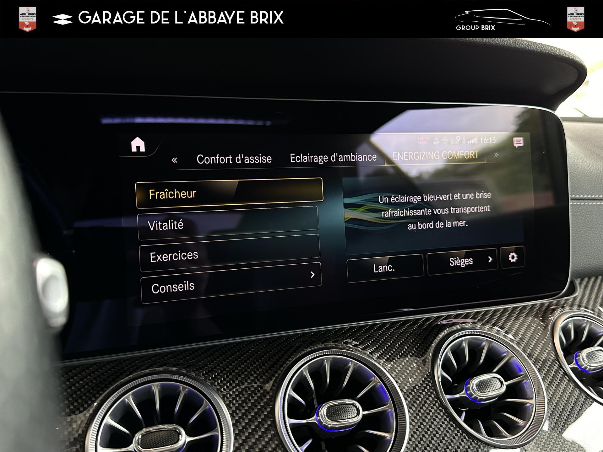 2 prises USB à l'arrièreAMG DYNAMIC SELECT : offre le choix parmi 4 modes de conduite (Confort, Sport, Sport+,Individuel)Assistant de feux de routeClimatisation automatique THERMATIC à 2 zonesDisques de frein perforésEclairage d'ambiance, avec bouches d'aération éclairées, 64 couleurs et 3 zones lumineusesEtriers de freins de couleur argentFonctionnalités élargies MBUX avec reconnaissance vocale naturelle activée via "Hey Mercedes"Jupe arrière AMG avec bande décorative en chrome argentéJupe avant AMG avec splitter finition chromée et prises d'air avec ailettes noires finition brillanteKit carrosserie AMGPack Connectivité Navigation avec services de navigation étendusPack rétroviseursPack Sièges ConfortPavé tactile Touchpad sur la console centralePédalier sport AMG en acier inoxydable brosséProjecteurs hautes performances à technologie LEDRecharge smartphone sans filSystème multimédia MBUX entièrement numérique avec deux écrans couleur de 12,3" et fonction tactile pour l'écran centralTapis de sol AMG avec inscription "AMG"Train de roulement AGILITY CONTROL abaissé de 15 mm avec système d’amortissement sélectifVolant sport multifonctions en cuir Nappa avec boutons de contrôle, palettes de changement de rapport galvanisées et avec méplat dans la partie inférieure