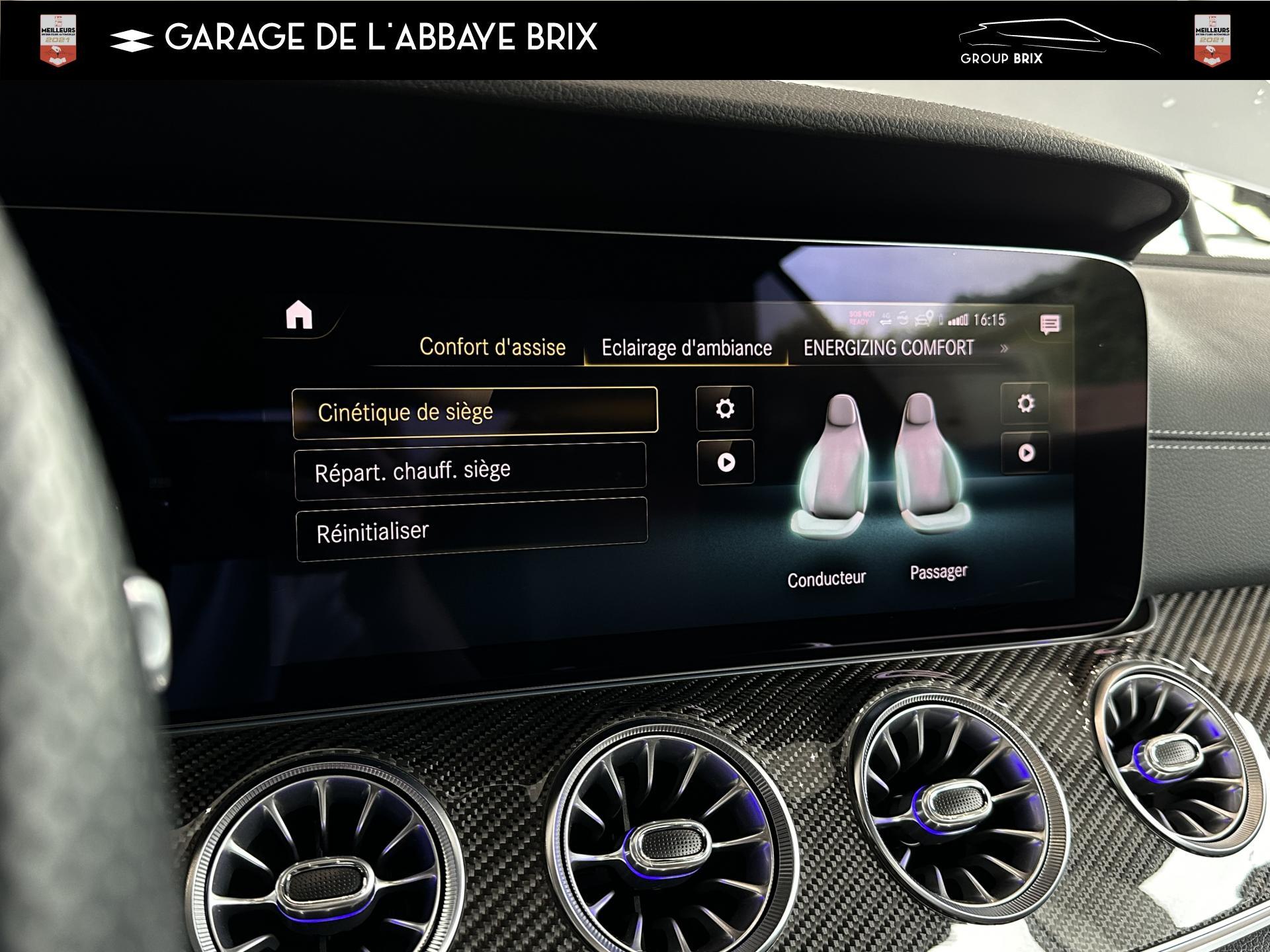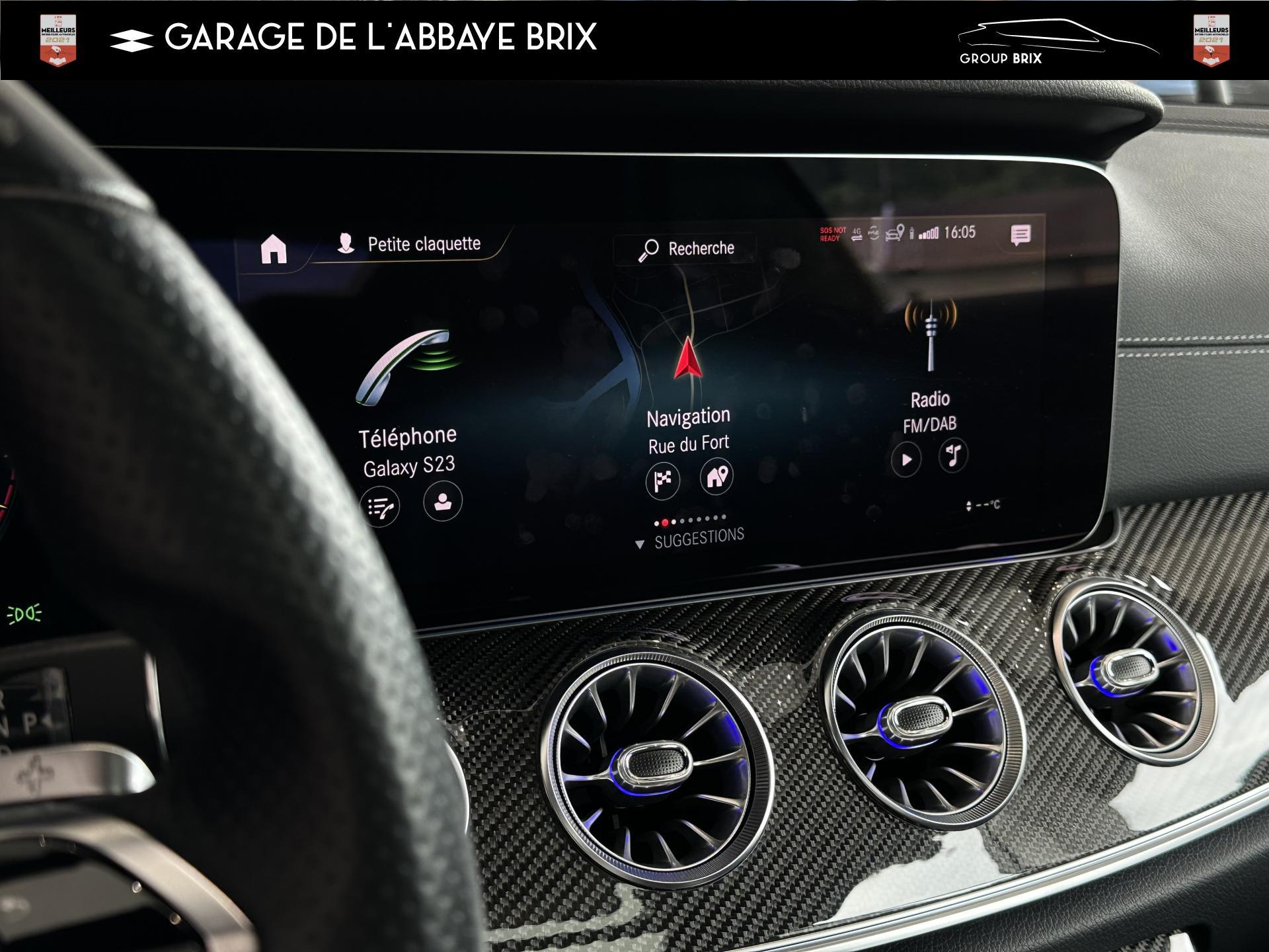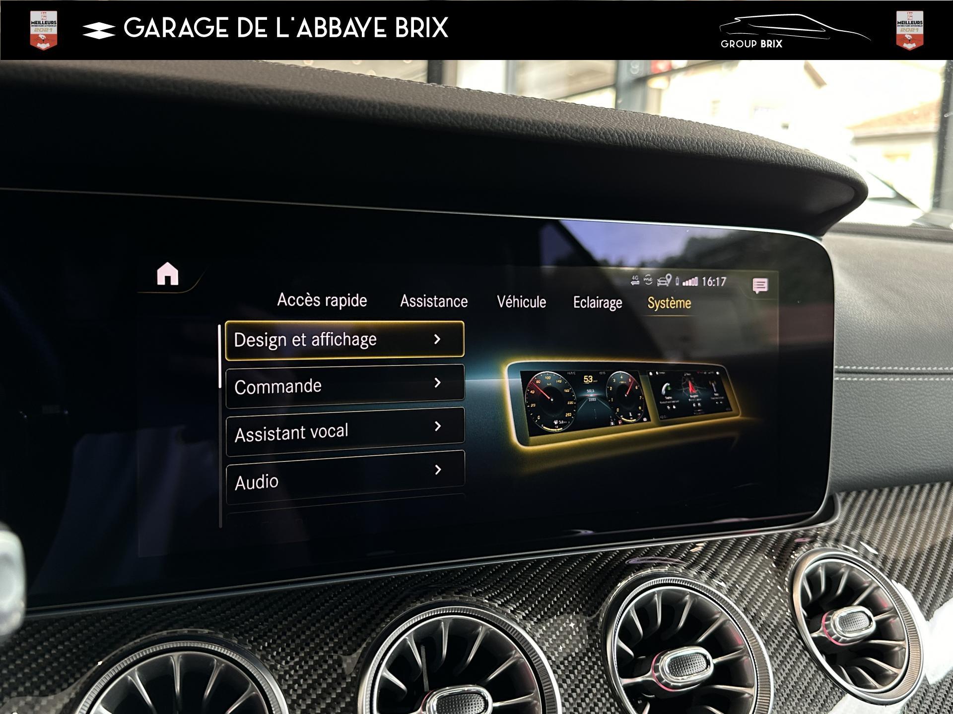 2 prises USB à l'arrièreAMG DYNAMIC SELECT : offre le choix parmi 4 modes de conduite (Confort, Sport, Sport+,Individuel)Assistant de feux de routeClimatisation automatique THERMATIC à 2 zonesDisques de frein perforésEclairage d'ambiance, avec bouches d'aération éclairées, 64 couleurs et 3 zones lumineusesEtriers de freins de couleur argentFonctionnalités élargies MBUX avec reconnaissance vocale naturelle activée via "Hey Mercedes"Jupe arrière AMG avec bande décorative en chrome argentéJupe avant AMG avec splitter finition chromée et prises d'air avec ailettes noires finition brillanteKit carrosserie AMGPack Connectivité Navigation avec services de navigation étendusPack rétroviseursPack Sièges ConfortPavé tactile Touchpad sur la console centralePédalier sport AMG en acier inoxydable brosséProjecteurs hautes performances à technologie LEDRecharge smartphone sans filSystème multimédia MBUX entièrement numérique avec deux écrans couleur de 12,3" et fonction tactile pour l'écran centralTapis de sol AMG avec inscription "AMG"Train de roulement AGILITY CONTROL abaissé de 15 mm avec système d’amortissement sélectifVolant sport multifonctions en cuir Nappa avec boutons de contrôle, palettes de changement de rapport galvanisées et avec méplat dans la partie inférieure