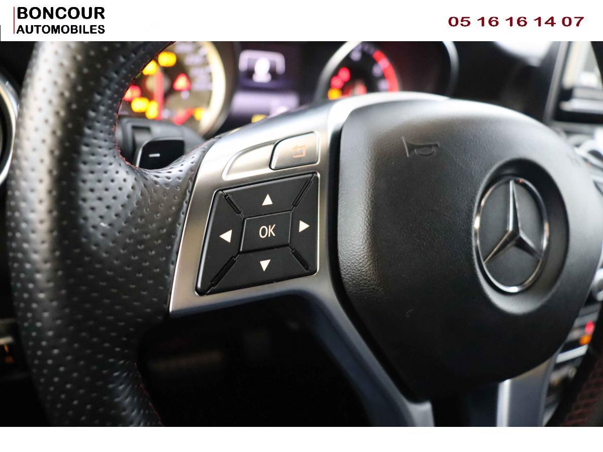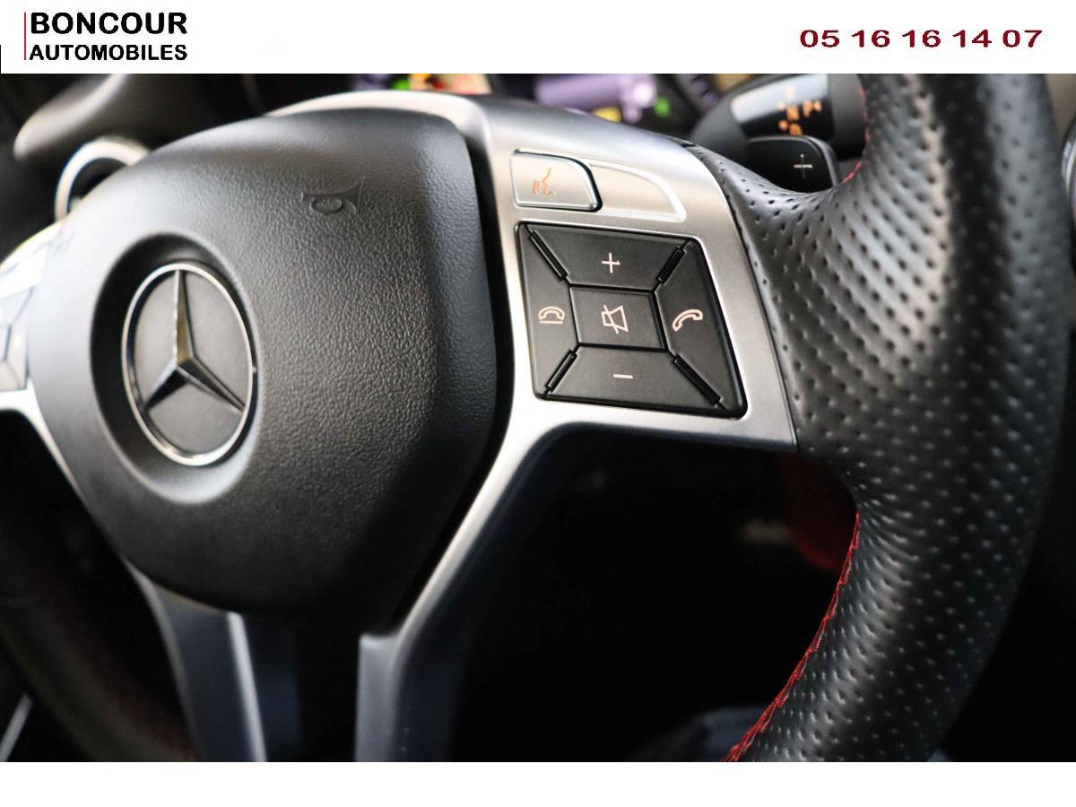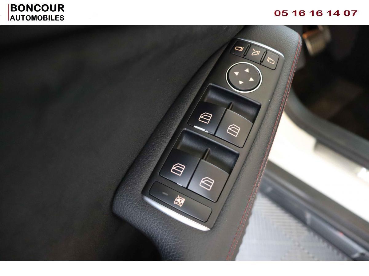 Pack AMG LineToit ouvrant panoramique électrique avec store pare-soleil électrique, fonction de fermeture en cas de pluie et protection anti-pincementVerrouillage centralisé à télécommande avec fonction verrouillage automatique désactivableHayon EASY-PACK à ouverture/fermeture automatiqueSièges Sport intégrauxProjecteurs Bi-Xénon avec lave-phares, feux de jour, feux de position, clignotants, feux arrière et feux de stationnement à technologie LEDPack d'éclairage intérieurAllumage automatique des pharesConnexion Bluetooth pour téléphone portable et clavier numérique intégréPack Sport BlackABS (antiblocage de roues) et ASR (antipatinage)Accoudoir avant avec vide-pochesADAPTIVE BRAKE avec fonction HOLD et aide au démarrage en côteAirbag genoux côté conducteurAirbags bassin intégrés aux sièges conducteur et passager avantAirbags frontaux à plusieurs seuils de déclenchement pour le conducteur et le passager avantAirbags latéraux et airbags rideauxAPA (Aide au Parking Active) : système d'aide au stationnement avec radars de proximité avant/arrière et fonction manoeuvres automatiquesAttention Assit : système de détection de somnolenceAvertisseur de perte de pression des pneusBanquette arrière rabattable (2/3 -1/3)BAS (freinage d'urgence assisté)Boîte à gants éclairéeBoîte de vitesses automatique à double embrayage 7 rapports 7G-DCT avec palettes de commandes au volantCaméra de recul avec lignes de guidageCapot moteur actifCapteur de pluieCeintures de sécurité à 3 points à toutes les placesClé design chroméeClignotant avec commande confort par impulsionsClimatisation automatique confort THERMOTRONIC à 2 zones avec affichage digital et réglages séparés conducteur/passagerCOLLISION PREVENTION ASSIST : système d'avertissement des risques de collisionColonne de direction réglable mécaniquement en hauteur et en profondeurCombiné d'instrument couleurContrôle de la pression des pneusDésactivation de l'airbag passagerDétecteur d'occupation du siège passager avantEclairage de secours en cas d'accidentESP (régulation de comportement dynamique)Feux arrière de brouillardFeux de stop adaptatifsFiltre à particulesFonction d'arrêt/redémarrage "Stop/Start ECO" avec commutateur de désactivation manuelleFrein de parking électriqueHabillage des passages de roues en plastique noir grainéIndicateur de température extérieureIndicateur dynamique de maintenance (ASSYST PLUS)Interface USB dans l'accoudoir central avantISOFIX : fixations des sièges-enfants arrière (places extérieures)Lève-vitres électriques (x4) à commande séquentielle et dispositif anti-pincementNavigation Becker MAP PILOT : navigation 3D (cartographie Europe) par disque dur (situé dans la boîte à gants) avec information trafic TMC et affichage des limitations de vitesseOrdinateur de bordPack de conduite dynamiquePare-chocs peints couleur carrosseriePneus avec possibilité de roulage à platRétroviseurs extérieurs électriques chauffants et asphériques avec rappels de clignotant intégrésRétroviseurs extérieurs rabattables électriquement et rétroviseurs extérieur gauche et intérieur jour/nuit automatiqueRadio Audio 20 avec écran couleur 15 cm (5,8"), double tuner et lecteur CD compatible MP3/WMA/AACRails de toit en noir brillantSécurité enfant avec verrouillage manuel des portes arrière et électrique des vitres arrièreSiège conducteur réglable manuellement en hauteurSièges avant avec réglages manuel de l'inclinaison des assises et de la hauteur du siège passagerTEMPOMAT (régulateur de vitesse) et SPEEDTRONIC (limiteur de vitesse)Volant multifonctions à 12 touches