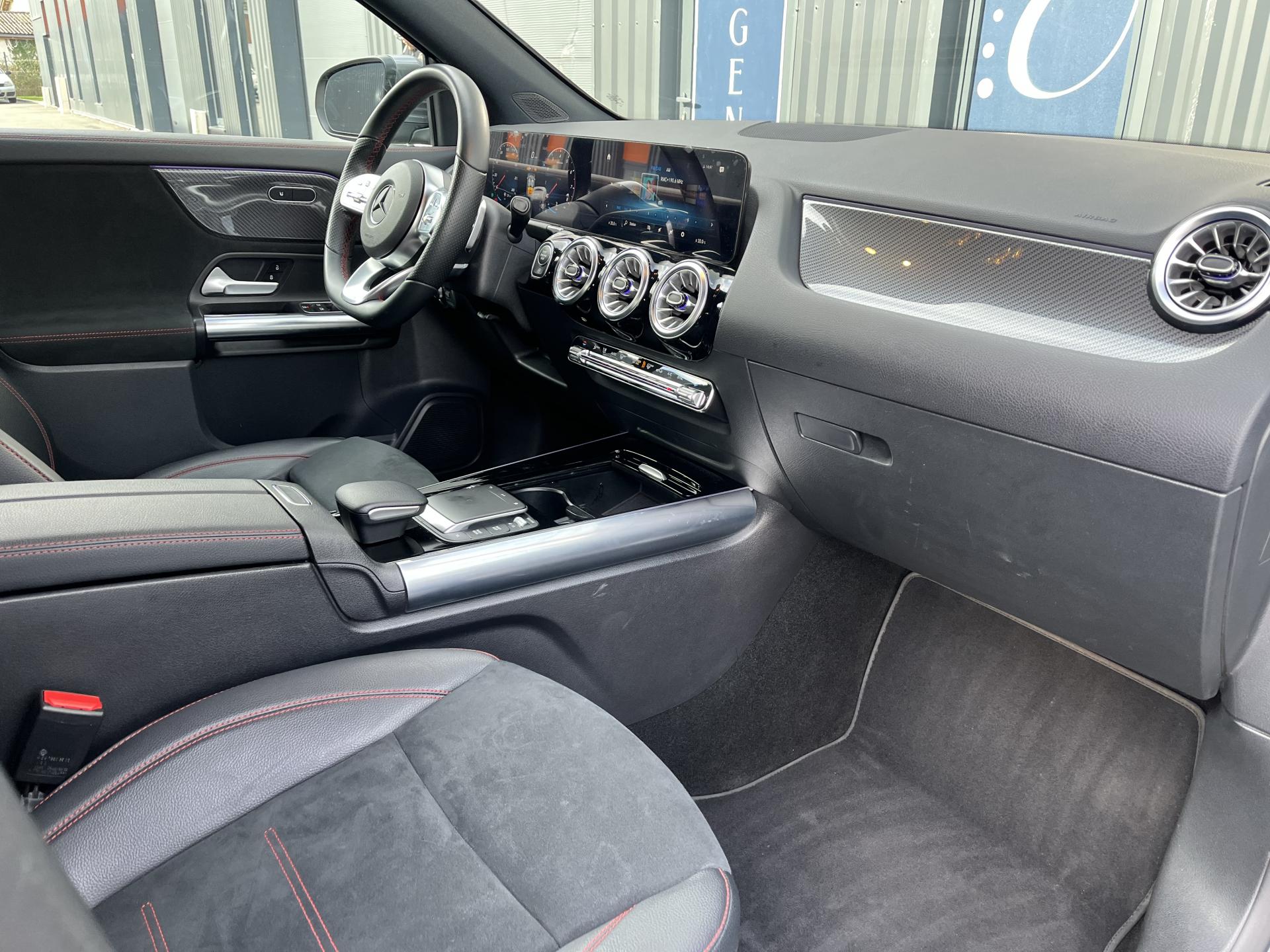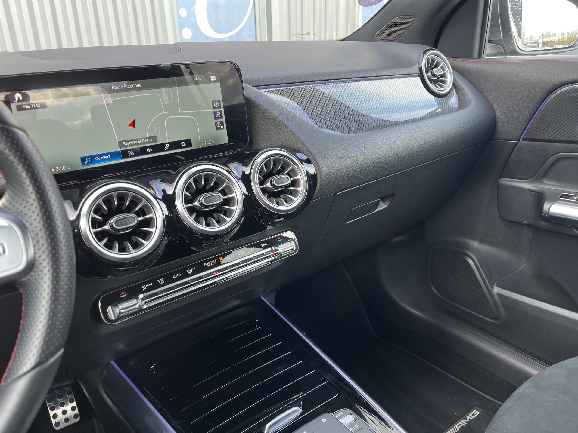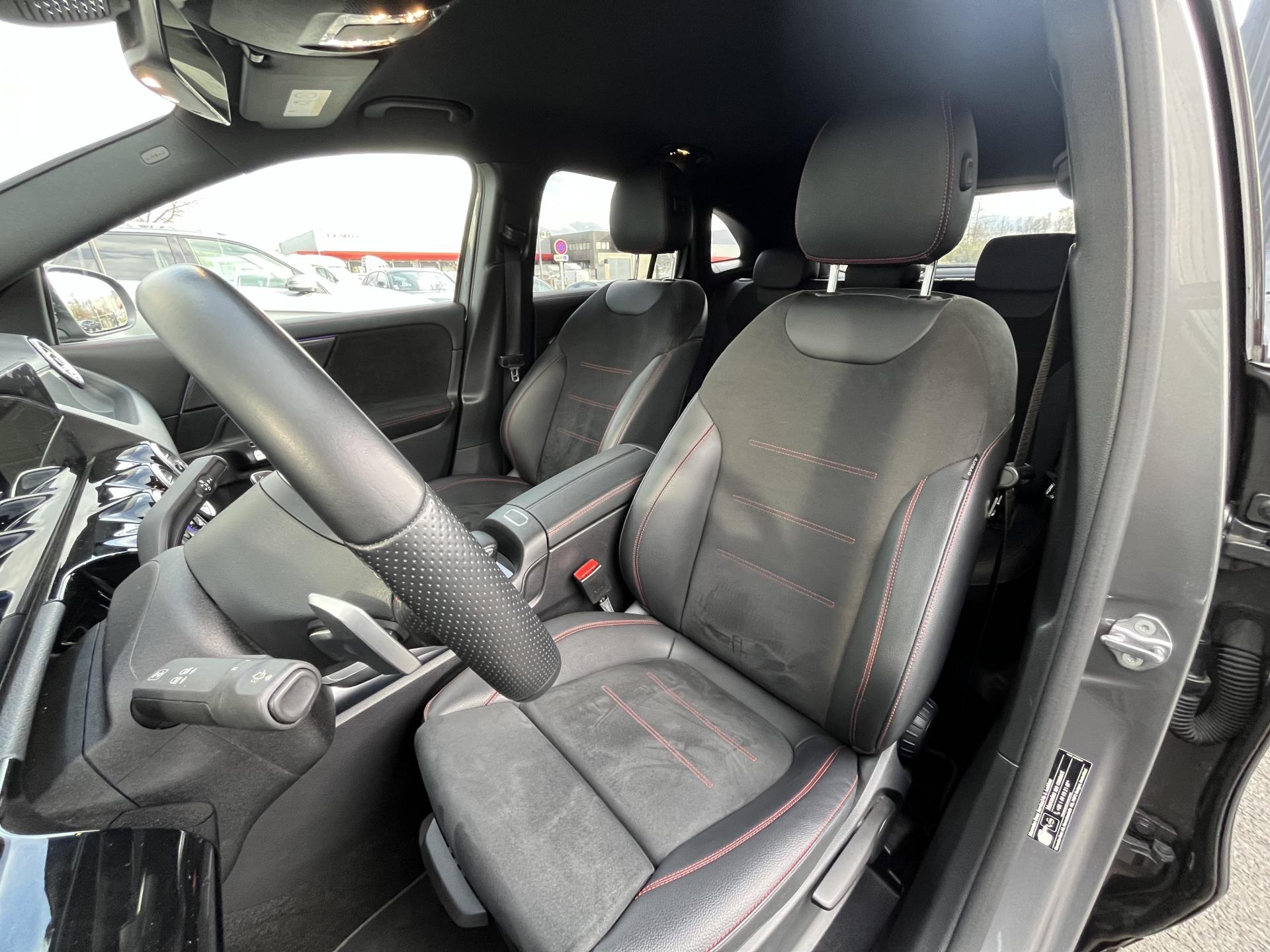 ADAPTIVE BRAKE avec fonction HOLD et aide au démarrage en côte, préremplissage et séchage des freins par freinage en cas de pluieAssistant de franchissement de ligne actifAttention Assist : système de détection de somnolenceAvertisseur de limitation de vitesseBaguette de seuil de chargement chroméeCiel de pavillon en tissu noirClé de véhicule sertie de chromeClimatisation automatique THERMOTRONIC à 2 zones avec filtre à charbons actifs contre la poussière, la suie et le pollenConnexion Bluetooth pour téléphone portableDYNAMIC SELECT avec les programmes de conduite « ECO », « Confort », « Sport » et « Individual »Etriers de frein avec monogramme "Mercedes-Benz"Feux de stop adaptatifsFonction Stop/Start ECOFrein de stationnement électriqueGarnitures en similicuir ARTICO/microfibre DINAMICA noire avec doubles surpiqûres rougesGrille de calandre diamant avec pastilles chroméesI-Size et Top Tether pour les sièges arrière extérieursInserts décoratifs façon CarboneJantes alliage AMG 48,3 cm (19") à 5 doubles branches Gris tantale / argentJupe arrière AMG façon diffuseur avec insert décoratif chroméJupe avant AMG avec splitter en finition chromeKEYLESS-GO : système de démarrage sans cléKit anti-crevaison TIREFITPédalier sport en acier inoxydable brossé avec picots en caoutchoucPack rétroviseursPack Stationnement avec caméra de reculPack visibilitéPavé tactile TouchpadRadio Numérique DABRainsensor (Capteur de pluie et de luminosité)Rampes de toit aluminiumReconnaissance des panneaux de limitation de vitesseRevêtements noir grené avec parties chromées sur les parties latéralesSièges avant avec réglages de la hauteur et de l'approche du siège, de l'inclinaison du dossier, de l'inclinaison de l'assise, de la profondeur de l'assiseSièges Sport à l'avantSorties d'échappement sport apparentes (non fonctionnelles)Système de commande vocale et assistant personnel activable grâce à "Hey Mercedes"Système de navigation par disque dur avec affichage 3DSystème de stabilisation en cas de vent latéralSystème multimedia MBUX avec écran média tactile haute résolution (1 920 x 760 pixels) de 26 cm (10,25'') et instrumentation digitale avec écran de 18 cm (7") incluant les fonctionnalités élargies MBUX (profils personnalisés, fonTapis de sol AMGTEMPOMAT (régulateur de vitesse) et SPEEDTRONIC (limiteur de vitesse)Un port USB dans le vide-poche et un port USB sur la console centrale arrièreVolant sport multifonction a 3 branches en cuir Nappa, avec méplat dans la partie inferieure, perforations au niveau de la zone de préhension, surpiqûres rouges, éléments en chrome et boutons Touch-Control