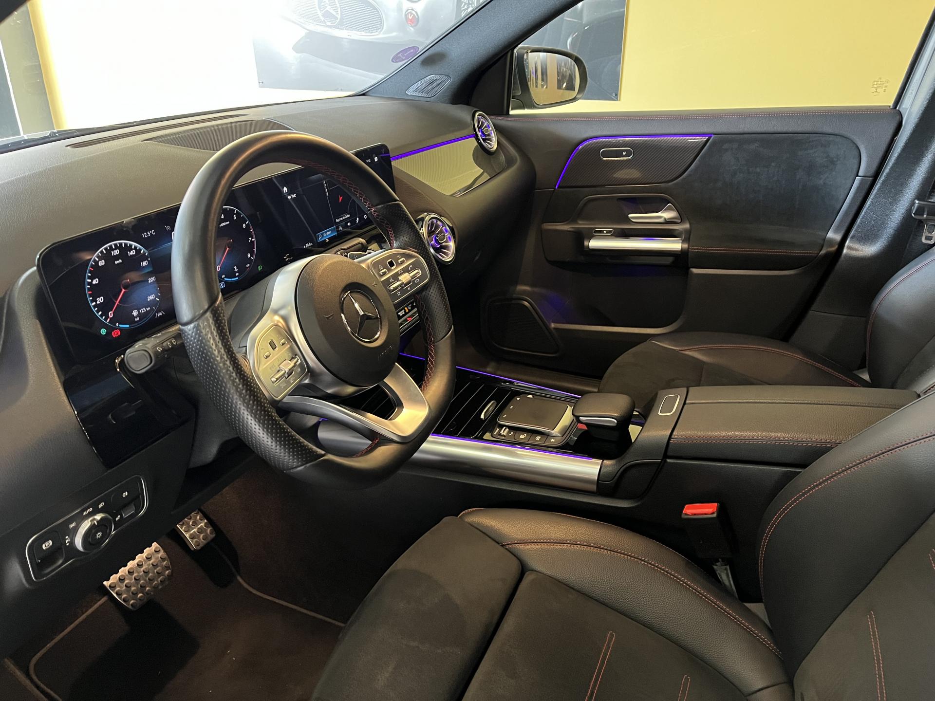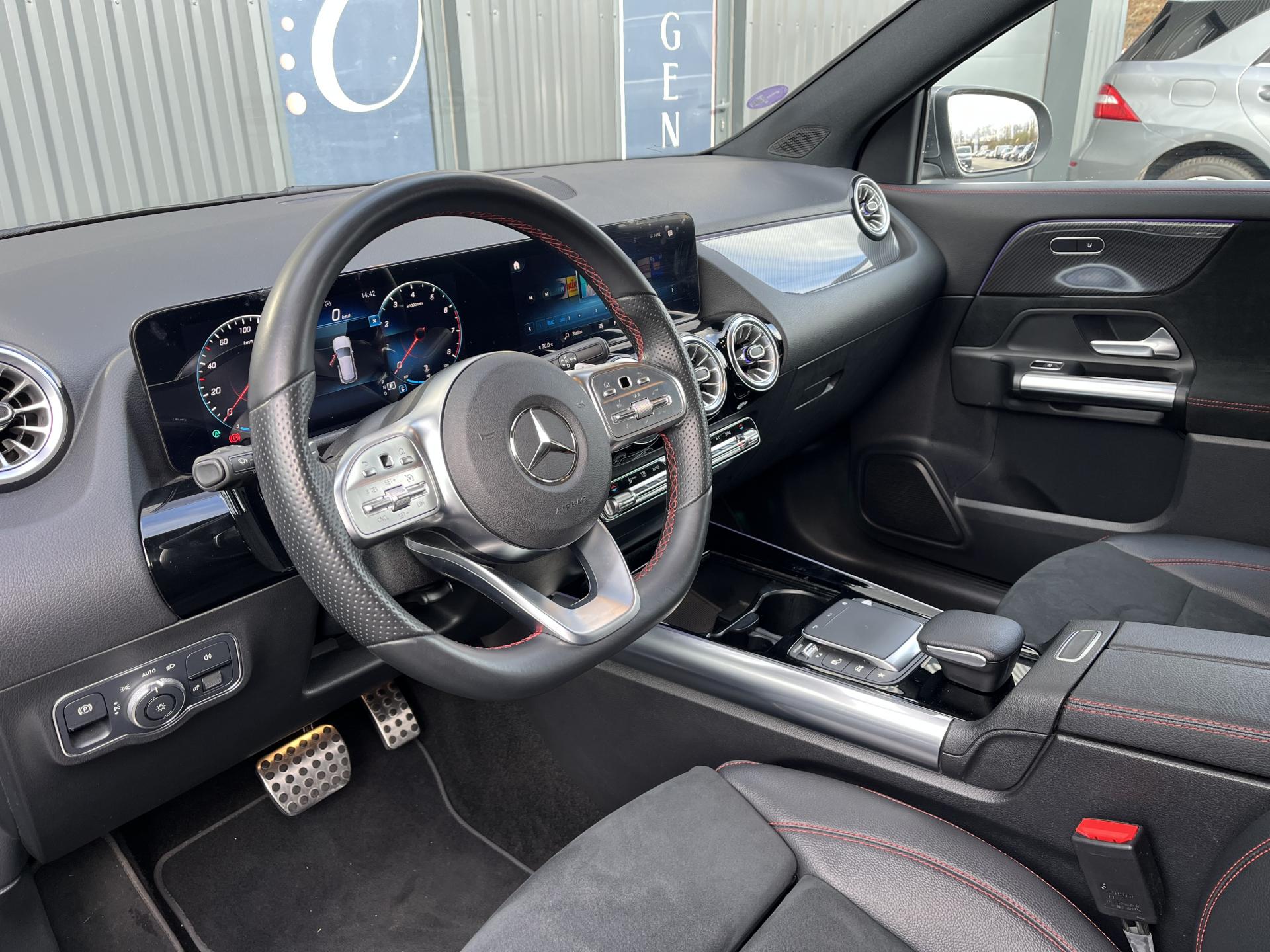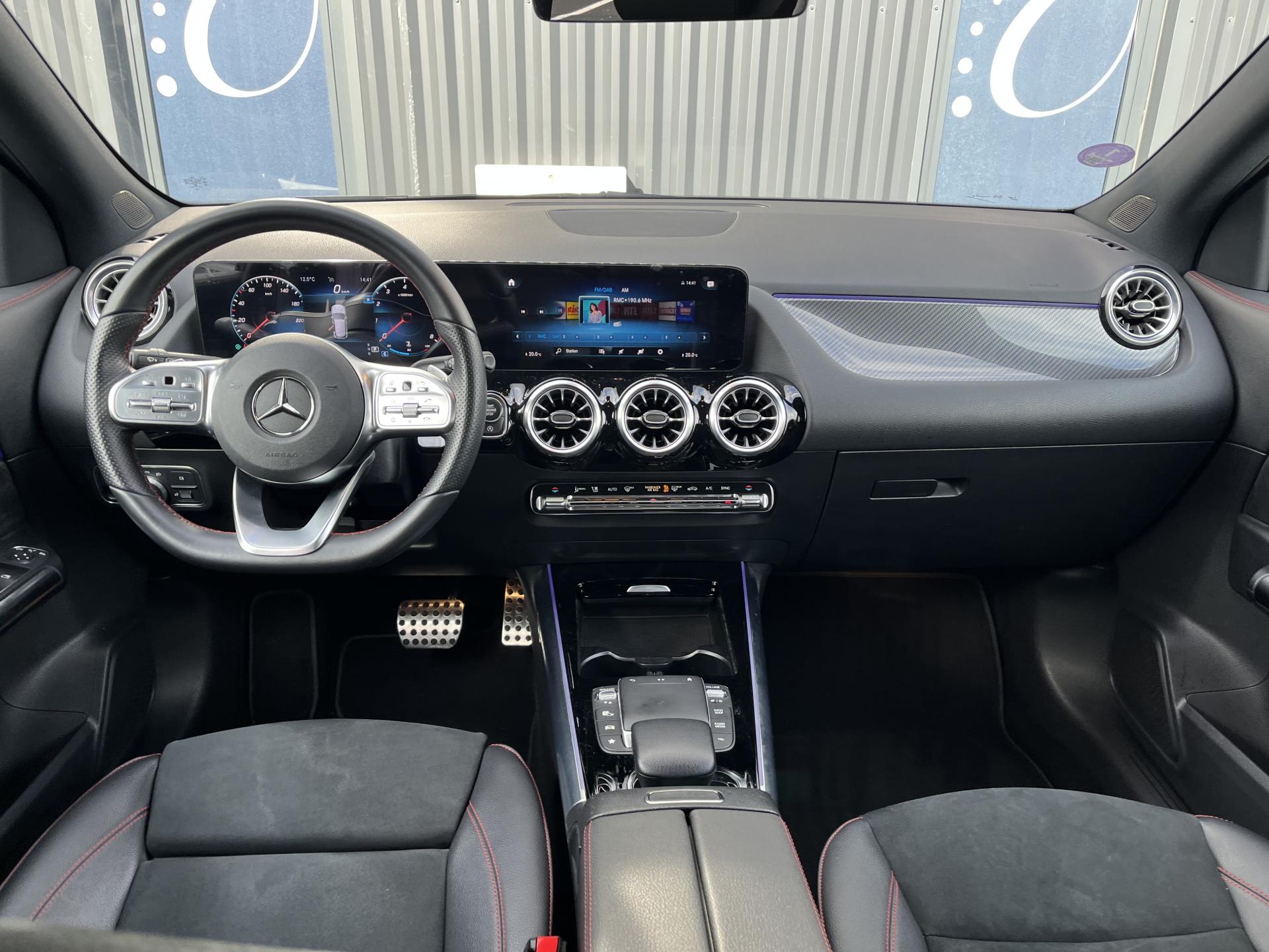 ADAPTIVE BRAKE avec fonction HOLD et aide au démarrage en côte, préremplissage et séchage des freins par freinage en cas de pluieAssistant de franchissement de ligne actifAttention Assist : système de détection de somnolenceAvertisseur de limitation de vitesseBaguette de seuil de chargement chroméeCiel de pavillon en tissu noirClé de véhicule sertie de chromeClimatisation automatique THERMOTRONIC à 2 zones avec filtre à charbons actifs contre la poussière, la suie et le pollenConnexion Bluetooth pour téléphone portableDYNAMIC SELECT avec les programmes de conduite « ECO », « Confort », « Sport » et « Individual »Etriers de frein avec monogramme "Mercedes-Benz"Feux de stop adaptatifsFonction Stop/Start ECOFrein de stationnement électriqueGarnitures en similicuir ARTICO/microfibre DINAMICA noire avec doubles surpiqûres rougesGrille de calandre diamant avec pastilles chroméesI-Size et Top Tether pour les sièges arrière extérieursInserts décoratifs façon CarboneJantes alliage AMG 48,3 cm (19") à 5 doubles branches Gris tantale / argentJupe arrière AMG façon diffuseur avec insert décoratif chroméJupe avant AMG avec splitter en finition chromeKEYLESS-GO : système de démarrage sans cléKit anti-crevaison TIREFITPédalier sport en acier inoxydable brossé avec picots en caoutchoucPack rétroviseursPack Stationnement avec caméra de reculPack visibilitéPavé tactile TouchpadRadio Numérique DABRainsensor (Capteur de pluie et de luminosité)Rampes de toit aluminiumReconnaissance des panneaux de limitation de vitesseRevêtements noir grené avec parties chromées sur les parties latéralesSièges avant avec réglages de la hauteur et de l'approche du siège, de l'inclinaison du dossier, de l'inclinaison de l'assise, de la profondeur de l'assiseSièges Sport à l'avantSorties d'échappement sport apparentes (non fonctionnelles)Système de commande vocale et assistant personnel activable grâce à "Hey Mercedes"Système de navigation par disque dur avec affichage 3DSystème de stabilisation en cas de vent latéralSystème multimedia MBUX avec écran média tactile haute résolution (1 920 x 760 pixels) de 26 cm (10,25'') et instrumentation digitale avec écran de 18 cm (7") incluant les fonctionnalités élargies MBUX (profils personnalisés, fonTapis de sol AMGTEMPOMAT (régulateur de vitesse) et SPEEDTRONIC (limiteur de vitesse)Un port USB dans le vide-poche et un port USB sur la console centrale arrièreVolant sport multifonction a 3 branches en cuir Nappa, avec méplat dans la partie inferieure, perforations au niveau de la zone de préhension, surpiqûres rouges, éléments en chrome et boutons Touch-Control