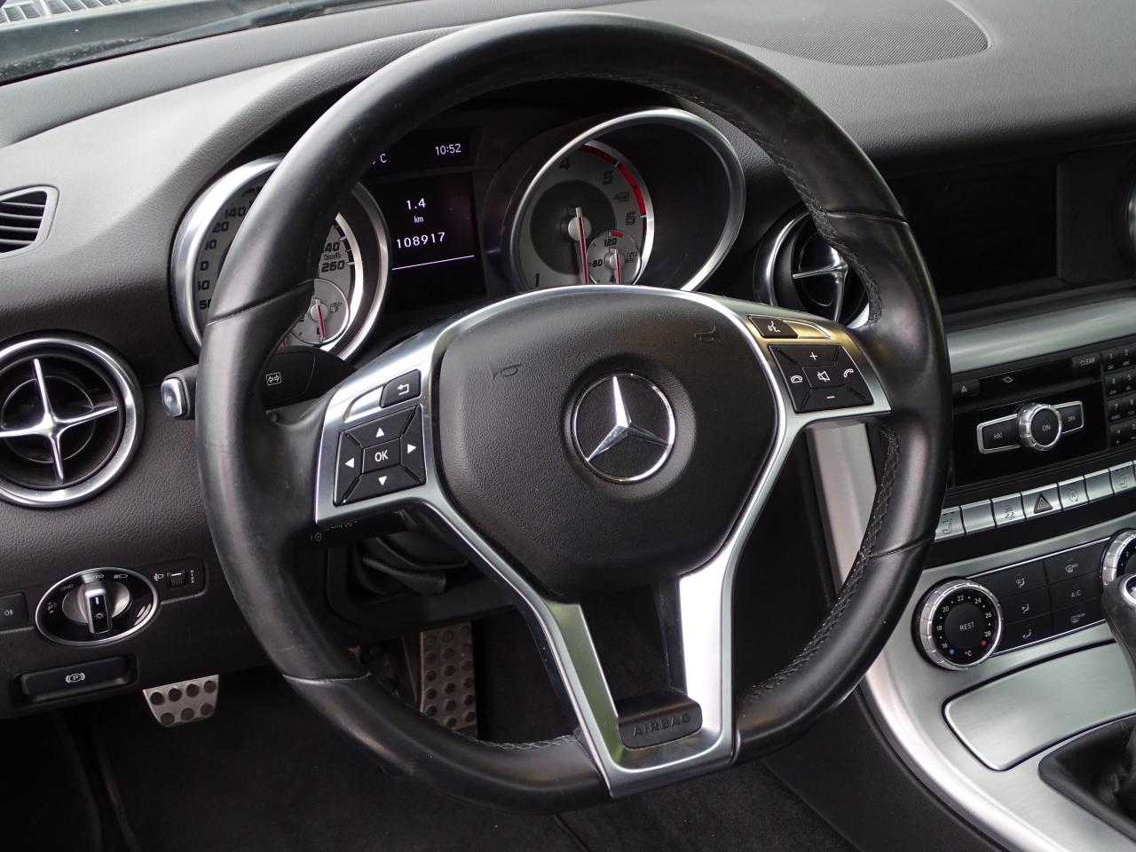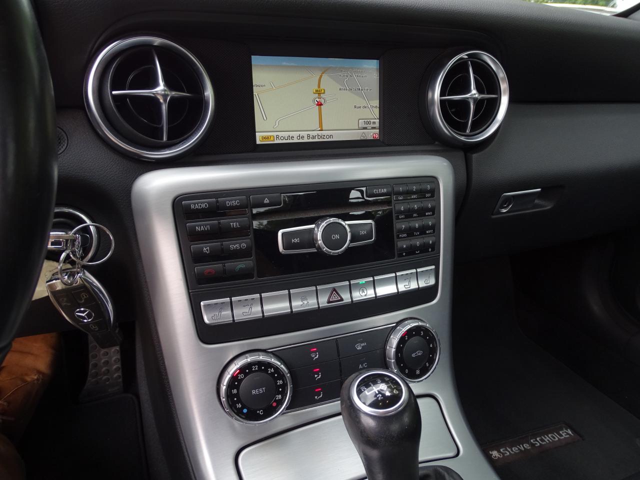 ABS (antiblocage de roues) et BAS (freinage d'urgence assisté)Accoudoir central avec casier de rangement, filet aux pieds du passager avant et derrière le siège conducteurADAPTATIVE BRAKE avec fonction Hold et système d'aide au démarrage en côteAffichage du rapport préconiséAirbags frontaux conducteur et passager à deux seuils de déclenchementAirbags latéraux intégrés dans les dossiers des sièges et airbags de tête intégrés dans les portesAllumage automatique des projecteursAntivol à clé électroniqueAppuie-tête actifsAttention Assist : système de détection de somnolenceBaguettes de seuil finition brillante avec monogramme "Mercedes-Benz"Boîte à gants verrouillable (via le verrouillage centralisé)Boîte de vitesses manuelle 6 rapportsCapot moteur actif pour la protection des piétonsCapteur de pluieCeintures de sécurité à rétracteurs , limiteurs d'effort et guide de ceinture sur les siègesCiel de pavillon avec cadre de lunette arrière et montants avant noirsClignotants avec commande confort par impulsionsClimatisation manuelleColonne de direction réglable manuellement en hauteur et en profondeurCombiné d'instruments avec visuel multifonctions et cadrans argentésCompartiment de rangement dans la console centrale avec rideau coulissantConnexion Bluetooth pour téléphone portable et clavier numérique intégréContrôle de pression des pneus ( TPMS )Détecteur automatique de siège-enfant à transpondeur sur le siège passagerDétecteur d'occupation du siège passager avantDirection assistée avec colonne de sécuritéEclairage du coffreESP (régulation de comportement dynamique) avec ASR (antipatinage)Feux arrière à technologie LEDFeux de jour à LEDFeux de stop adaptatifs clignotantsFilet pare-vent en tissuFiltre à particulesFonction d'arrêt/redémarrage "Stop/Start ECO"Frein de parking électriqueGarnitures intérieures en tissuGrille de calandre à une lamelle chromée avec logo "Mercedes-Benz"Indicateur d'usure des disques de freinsIndicateur dynamique de maintenance (ASSYST)Inserts décoratifs en aluminium brosséInterfaces USB et Auxiliaire dans l'accoudoir centralJantes alliage 16'' 9 branches avec pneus 205/55 R16 à l'avant et 225/50 R16 à l'arrièreLève-vitre électrique à commande confortLevier de vitesses en cuir NappaLunette arrière chauffanteOuverture à distance du coffrePack FumeurPédalier sport en acier inoxydable brossé avec picots en caoutchoucPoches aumônières sur la paroi arrière entre les siègesPorte-gobeletsProjecteurs halogène en verre transparentRadio Audio 20 avec écran couleur 15 cm (5,8"),double tuner, lecteur CD compatible MP3/WMA/AACRange- lunettes éclairé dans le module de pavillonRétroviseurs extérieurs avec rappel de clignotants intégré et peints dans le ton de la carrosserieRétroviseurs extérieurs électriques chauffants, asphériques, réglables électriquementRoue de secours de type galetteSièges sport réglables manuellement en hauteur avec dossiers rabattables et appuie-tête intégrauxSorties d'air latérales chromées brillantes dans les ailesSystème d'échappement à deux sorties chroméesTEMPOMAT (régulateur de vitesse) et SPEEDTRONIC (limiteur de vitesse)Toit escamotable à commande électrohydrauliqueVolant multifonctionsVolant sport trois branches gainé de cuir Nappa avec partie inférieure aplatie