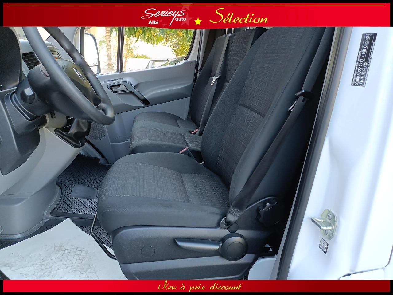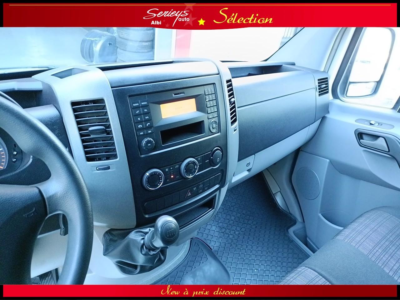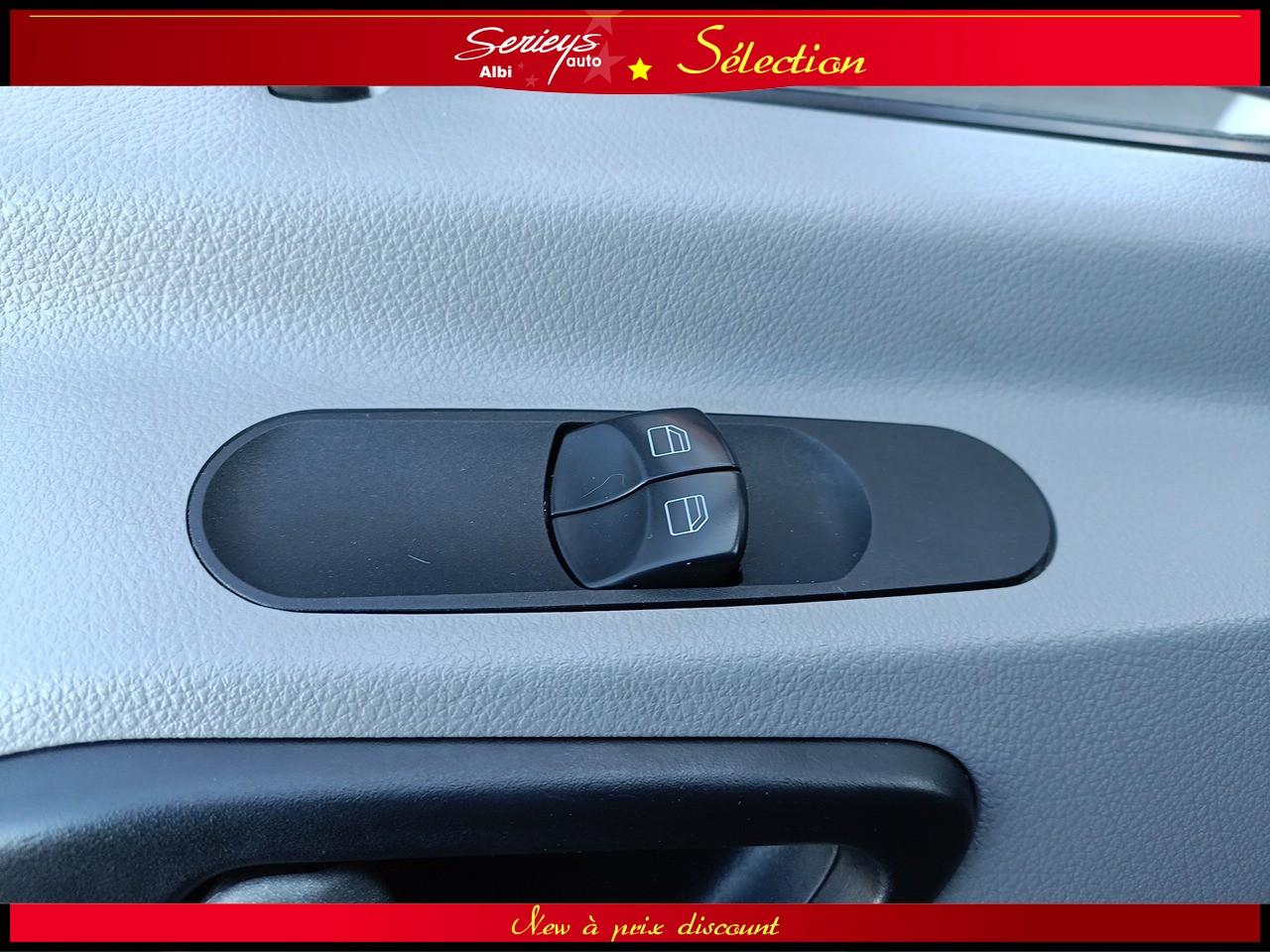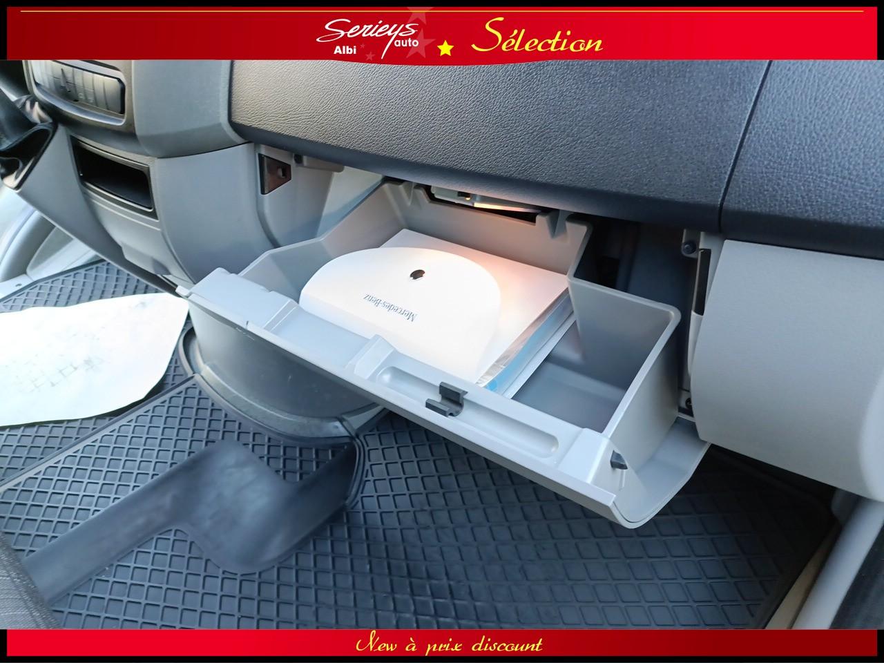 - Climatisation Tempmatic, hayon arrière électrique, cloison entière de séparation, porte coulissante droite habillée, pare-brise chauffant, jantes acier 16", pneus 235/65 R16 C (pneus avant neufs), boîte mécanique 6 rapports ECO Gear, système audio MB Bluetooth, module de communication LTE pour services numériques, réservoir 71 L + réservoir AdBlue 22 L, rétroviseurs électriques et chauffants, Tempomat (régulateur) et Speedtronic (limiteur), système Stop & Start, réglage du volant en hauteur/profondeur.