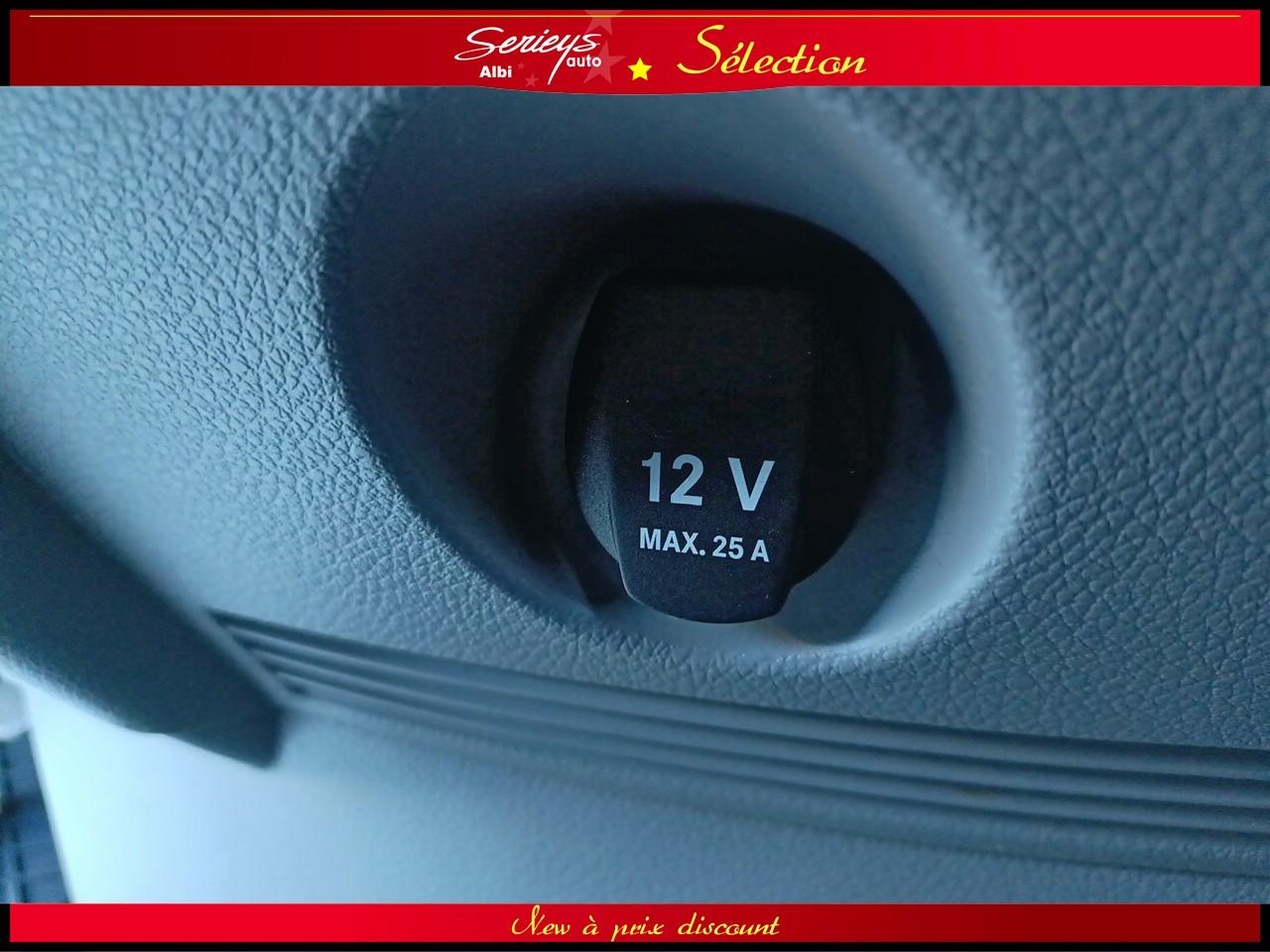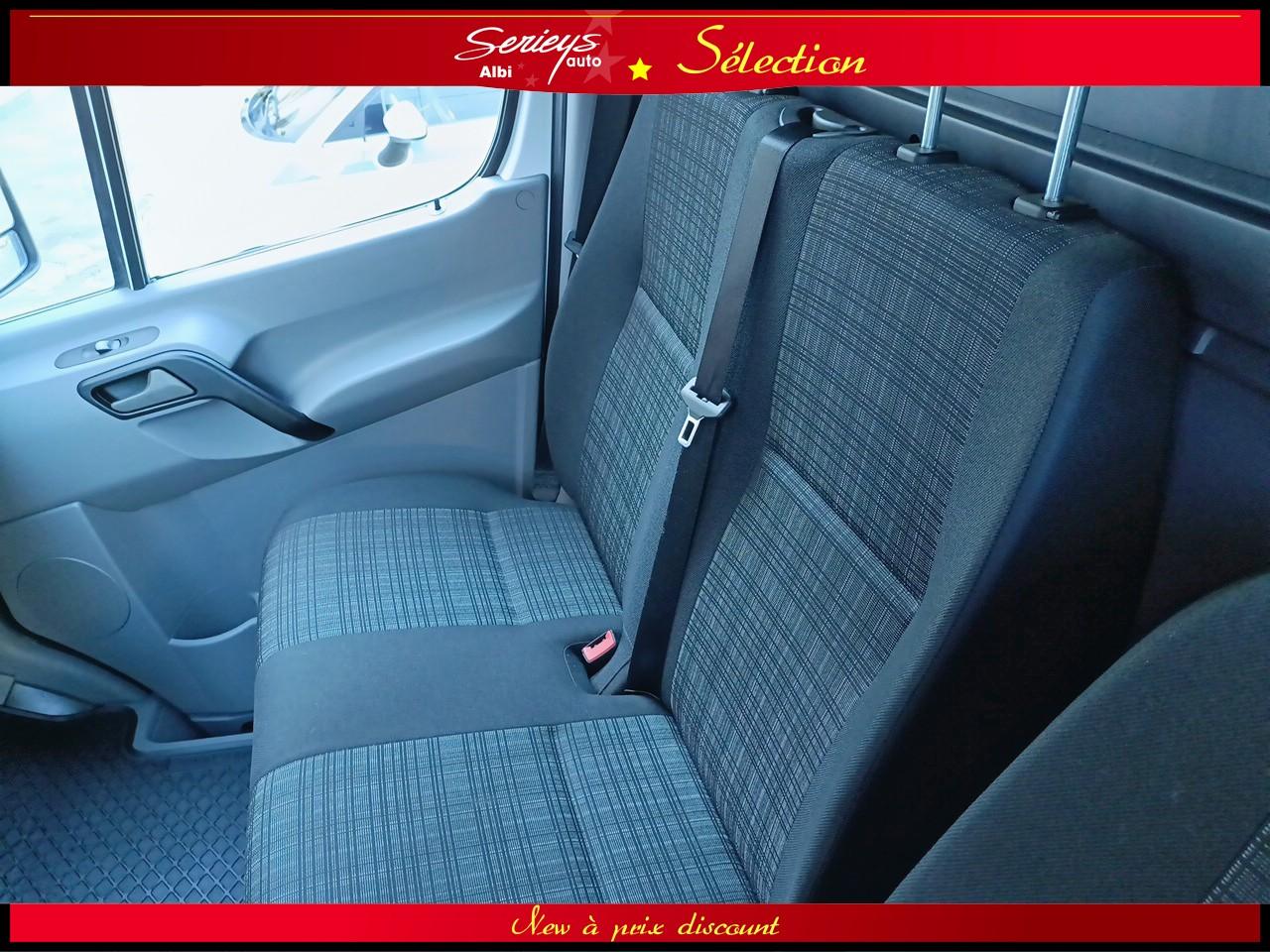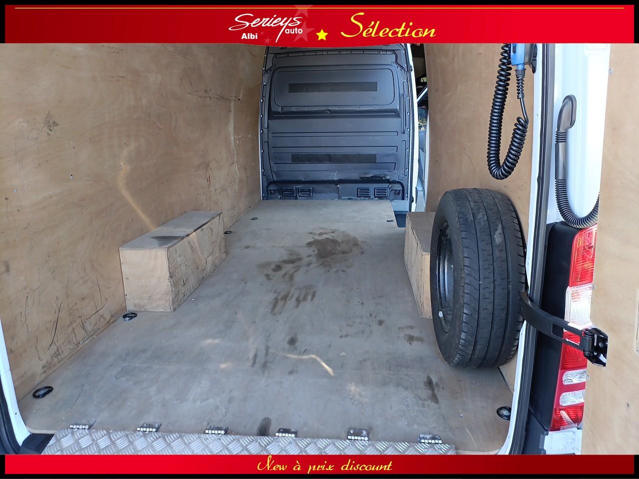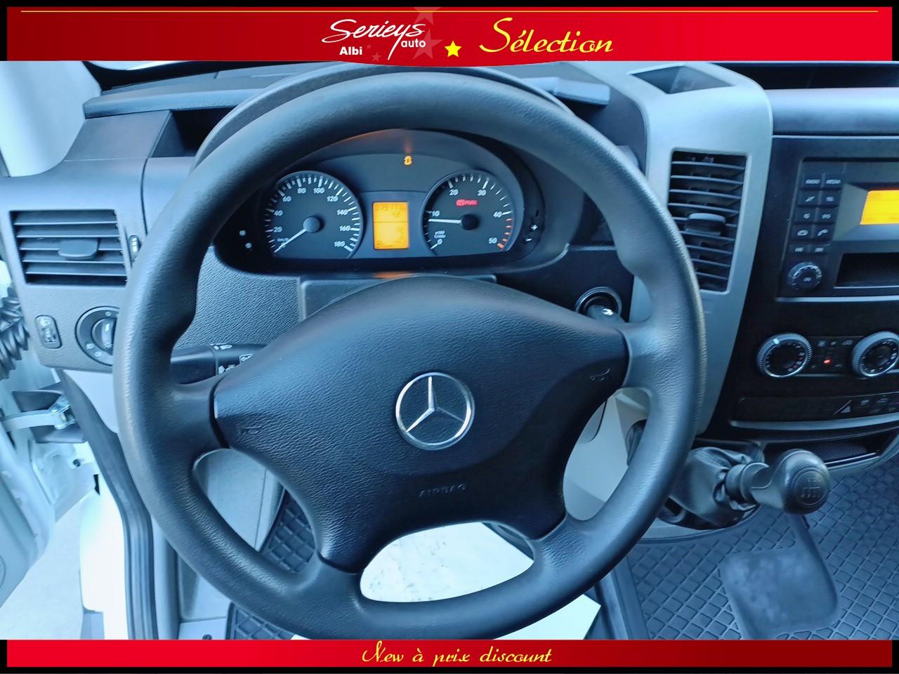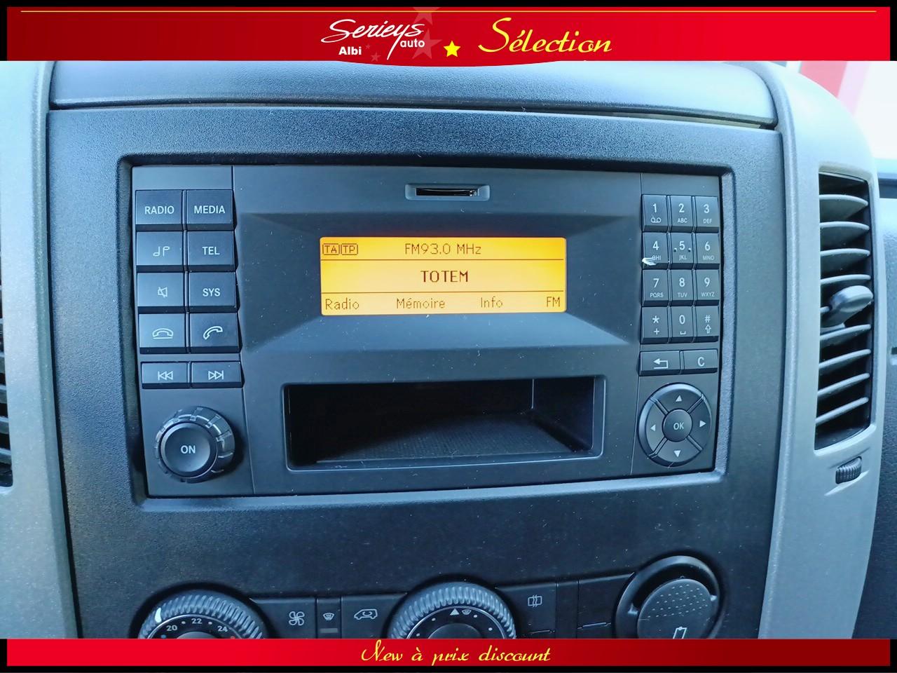 - Climatisation Tempmatic, hayon arrière électrique, cloison entière de séparation, porte coulissante droite habillée, pare-brise chauffant, jantes acier 16", pneus 235/65 R16 C (pneus avant neufs), boîte mécanique 6 rapports ECO Gear, système audio MB Bluetooth, module de communication LTE pour services numériques, réservoir 71 L + réservoir AdBlue 22 L, rétroviseurs électriques et chauffants, Tempomat (régulateur) et Speedtronic (limiteur), système Stop & Start, réglage du volant en hauteur/profondeur.