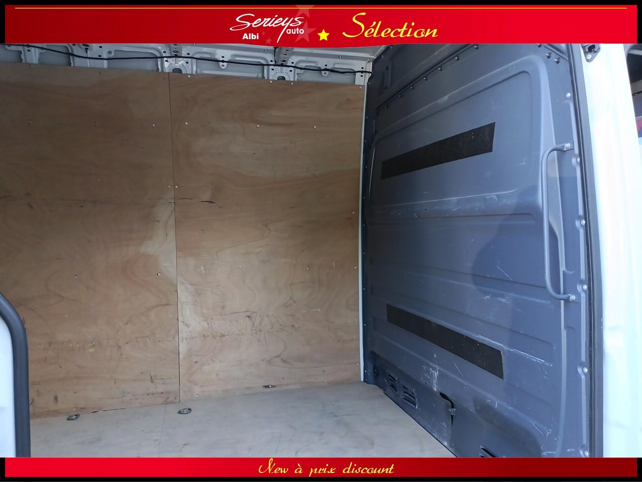- Configuration L3H2 haute capacité (environ 15 m3) adaptée aux activités transport/ livraison, avec porte coulissante droite et cloison entière de séparation.