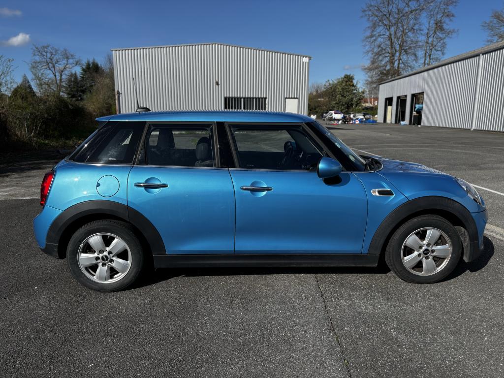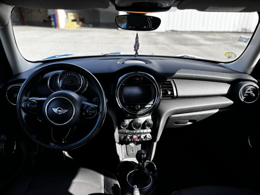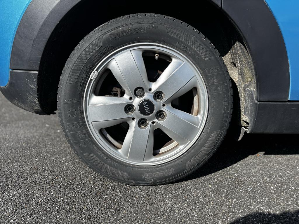 2 clés radiocommandées4 appuie-tête réglables en hauteur6 Airbags : 2 frontaux, 2 latéraux et 2 rideaux gonflables latérauxABS avec aide au freinage d'urgenceAnti-démarrage électronique EWS IVAppel d'Urgence IntelligentAutoradio MINI avec prise AUX-IN, 2 hauts parleurs et 2 sub-woofers et compatibilité MP3Autoradio MINI Visual BoostBaguettes de seuil de porte avec inscription de la motorisation façon métalliqueBanquette arrière 3 places rabattable asymétriquement (60/40)Becquet arrière de toitBoîte de vitesses manuelle 6 rapportsCalandre au contour chromé avec lamelles noiresCerclage des buses d'aération chroméesChrome line interieurCiel de pavillon teinte Satellite GreyClignotants blancsClimatisation automatique bi-zoneColour Line Carbon BlackContrôle Dynamique de la Stabilité DSC, y compris assistant de démarrage en côteCoques de rétroviseurs noiresDétecteur d'accidentDétecteur de pluie et allumage automatique des projecteursEclairage d'accompagnement "Follow me Home"Ecrous antivolFeux arrière à technologie LEDFiltre à particulesFixation ISOFIX à l'arrièreFonction Start & Stop et démarrage sans cléIndicateur de crevaisonJantes en alliage 15'' design "Heli Spoke" 5,5 J x 15 / pneumatiques 175/65 R 15Lève-vitres et rétroviseurs extérieurs électriquesMINI Mobility System et cricOuïes latérales noires avec répétiteurs de clignotants orange intégrésPare-chocs avant et arrière de couleur noirePoignée de hayon noir matPoignées de portes chroméesPoignées de portes intérieures chroméesPorte-boissons à l'avant (x2)Prise 12V sous la console centraleProjecteurs antibrouillardProjecteurs avant et feux arrière au contour chroméRadars de stationnement arrièreSellerie tissu "Firework" Carbon BlackSiège conducteur réglable en hauteurSortie d'échappement simple, droite et chroméeSystème d'accès aux places arrière Easy-EntrySystème de capot actif (DHS)Système de navigation MINI avec écran 6,5''Système mains-libres Bluetooth avec Snap-in - niveau 2TéléServicesTapis de sol en veloursToit couleur carrosserieVerrouillage centralisé des portes, du coffre et de la trappe à essence