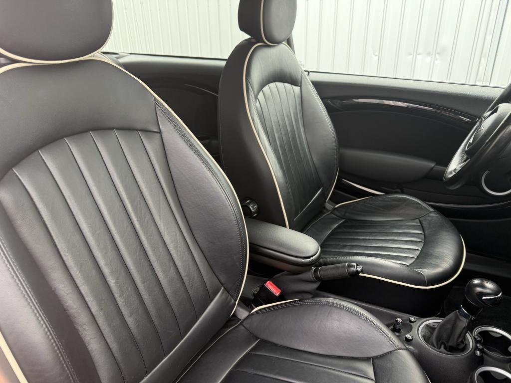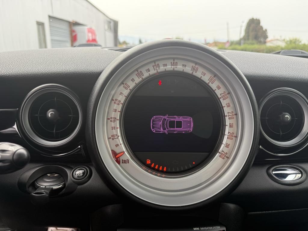 2 clés radiocommandéesABS (Antiblocage de roues)Anti-démarrage électronique EWS IVAutoradio MINI CD avec prise AUX-IN et 6 haut-parleurs et compatibilité MP3Boîte de vitesses automatiqueBouton de démarrage “Start/Stop”Contrôle de freinage en courbe CBCContrôle Dynamique de la Stabilité DSC, y compris assistant de démarrage en côteDirection à assistance électriqueEcrous antivolFeux arrière à technologie DELFeux de stop dynamiquesInserts décoratifs "Fine White Silver"Lève-vitres et rétroviseurs extérieurs électriquesMINI Mobility System et cricProjecteurs avant au contour chroméSellerie tissu "Cosmos"Siège conducteur réglable en hauteurSortie d'échappement simple, droite et chroméeSystème d'aide au stationnement PDC arrièreSystème de récupération de l'énergie au freinageVitres teintées
