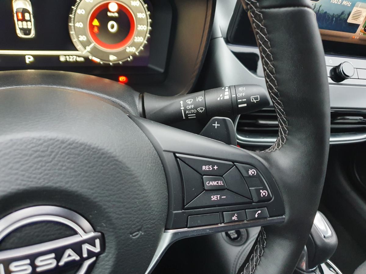 2 porte-gobelets3 appuis-tête arrière réglables6 haut-parleursABS (anti-blocage des roues), EBD (répartiteur électronique de freinage)Accoudoir central avantAide au démarrage en côteAirbags frontaux, latéraux avant et rideauxAlarme périmétriqueAllumage automatique des phares intelligentAntenne aileron de requin noireAvertisseur sonore ceintures de sécuritéBacs de rangement dans les contre-portes avant avec porte-bouteillesBanquette arrière rabattable 40/60Bouton d'accès rapide aux réglages des aides à la conduiteBouton de démarrage “Start/Stop”Caméra de recul avec aide au stationnement avant et arrièreCeintures de sécurité avant ajustable en hauteurChargeur de smartphone par inductionCiel de toit noirClignotants à trois clignotementsClimatisation automatiqueCombiné d'instruments digital de 31cm (12,3")Commandes au volant (audio, Bluetooth, régulateur et limiteur de vitesse, contrôle de l'ordinateur de bord)Contre-portes et tableau de bord en TEP noirContrôle de pression des pneus ( TPMS )Coques de rétroviseurs noiresCorrecteur électronique de trajectoire ESPDéclenchement automatique des feux de détresseDirection assistée asservie à la vitesseDouble port USB arrière (USB-A et USB-C)Double port USB avant (USB-A et USB-C)Eclairage d'accompagnement automatiqueEclairage de coffreEssuie-glace à déclenchement automatiqueFeux arrière LEDFeux avant à LEDFeux de route adaptatifsFeux diurnes à LEDFonction appel d'urgenceFonction de verrouillage / déverrouillage à l'approche du véhiculeFrein à main électrique avec aide au stationnement/démarrage et fonction AutoholdFreinage actif d'urgence avec détection des piétons et cyclistesIndicateur de changement de rapportIntégration Apple CarPlay et Android Auto sans filJantes alliage 17''Kit de réparation de pneumatiqueLève-vitres électriques avant et arrière (à impulsion à l'avant)Liseuses à l'avant et à l'arrièreNBAS (Amplificateur de freinage d'urgence)NissanConnectNissanConnect ServicesPalettes au volantPare-soleil conducteur avec pochette porte-cartesPare-soleil côté conducteur et passager avec miroir de courtoisiePeinture opaque Rouge ToscanePoignées de maintien pour passager avant et arrièrePoignées de portes couleur carrosseriePoignées intérieures des portes chroméesPoints d'ancrage de sièges enfant ISOFIX à l'arrièrePommeau de levier de vitesses gainé de CuirPrévention de franchissement de ligne intelligentPrise 12V à l'avantReconnaissance des panneaux de signalisationRégulateur/limiteur de vitesseRepose-genoux en TEPRétroviseur intérieur électrochromeRétroviseurs extérieurs dégivrantsRétroviseurs extérieurs rabattables automatiquementRétroviseurs extérieurs réglables électriquement avec indicateurs de changement de directionSélecteur de mode de conduite (ECO / NORMAL / SPORT)Sellerie mixte TEP/tissu Noir et GrisSiège conducteur réglable en hauteurSièges avant avec appuis-tête intégrésSièges avant réglablesSpoiler arrièreSystème "Chassis Control"Système audio radio avec écran tactile 12,3" et reconnaissance vocaleSystème d'ouverture et de démarrage sans clé "Intelligent Key"Système de détection de fatigue intelligentSystème mains libres BluetoothSystème Stop & StartVitres arrière teintéesVolant en cuir synthétiqueVolant réglable en hauteur et en profondeur