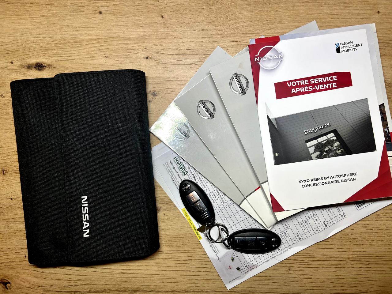 ABS (Antiblocage de roues)Accoudoir central arrière avec porte-gobeletsAccoudoir central avant coulissantAérateurs centraux pour les passagers arrièreAirbag passager déconnectableAirbags frontauxAirbags latéraux avantAirbags rideauxAllumage automatique des pharesBanquette arrière rabattable 60/40Becquet de toitBouclier arrière avec diffuseur "Carbon Look"Ceintures de sécurité arrière 3 points à enrouleur (x3)Ceintures de sécurité avant 3 points avec prétensionneur et limiteur d'effortClimatisation automatique bizoneCommandes au volant (audio, Bluetooth , régulateur et limiteur de vitesse)Démarrage avec bouton START / STOPDirection assistéeESP (Correcteur électronique de trajectoire)Essuie-glaces avant à déclenchement automatiqueFermeture et ouverture centralisées des portes à distanceFeu arrière anti-brouillardFeux diurnes à allumage automatiqueFinitions de vitres latérales chroméesInserts motifs Noir sur la planche de bordJantes alliage 17"NBAS (Amplificateur de freinage d'urgence)Nissan AVM - Vision 360°Nissan ConnectNissan Safety ShieldOrdinateur de bord avec écran TFT couleur HD 5"Pare-soleil côté conducteur et passager avec miroir de courtoisie éclairéPartie centrale de tableau de bord finition Noir laquéPhares LED avec signature lumineusePoignées de porte couleur carrosseriePoignées de porte intérieures chroméesPoints d'ancrage de siège enfant ISOFIX à l'arrière (x2)Port USB dans accoudoir central avantPrise 12V dans l'accoudoir central avantPrise auxiliaire Jack 3.5" dans accoudoir central avantProjecteurs antibrouillard avantRadar anti-collision et de freinage d'urgenceRégulateur et limiteur de vitesseRépartiteur électronique de freinage (EBD)Rétroviseur intérieur automatique jour/nuitRétroviseurs extérieurs à réglage électriqueRétroviseurs extérieurs avec rappels de clignotants intégrésRétroviseurs extérieurs couleur carrosserieRétroviseurs extérieurs dégivrantsRétroviseurs extérieurs rabattables électriquementRoue de secours temporaireSellerie cuir noirSiège conducteur réglable en hauteurSièges avant chauffantsSystème audio radio / CD 6 haut-parleursSystème d'ouverture et de démarrage sans clé "Intelligent Key"Système de contrôle de pression des pneus (affichage de la pression)Système mains libres BluetoothSystème Stop & StartVitres électriques à l'arrièreVitres électriques à l'avant (avec mode impulsionnel côté conducteur)Vitres latérales arrière et vitre de hayon surteintéesVolant et pommeau de levier de vitesses gainés cuirVolant réglable en hauteur et en profondeur