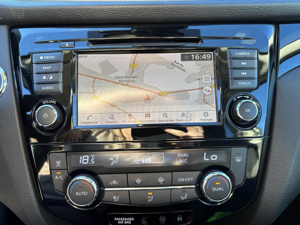 6 haut-parleursABS (Antiblocage de roues)Accoudoir central arrièreAccoudoir central avantAide au stationnement avant/arrièreAirbag passager déconnectableAirbags frontaux, latéraux AV, rideauxAllumage automatique des projecteursBanquette arrière rabattable 40/60Ceintures de sécurité arrière 3 points avec enrouleurCeintures de sécurité avant 3 points avec prétensionneur et limiteur d'effortCiel de toit gris clairClimatisation automatique bi-zoneCommandes au volant (audio, Bluetooth, régulateur et limiteur de vitesse, contrôle de l'ordinateur de bord)Contour des vitres latérales chroméContrôle de pression des pneus ( TPMS )Direction assistée électrique ajustable (mode Sport ou Normal)Eclairage d'ambiance intérieurESP (Correcteur électronique de trajectoire)Essuie-glace à déclenchement automatiqueFermeture et ouverture centralisées des portes à distanceFeux arrière avec signature LED et effet 3DFeux diurnes à LEDFrein de parking électriqueInsert argent dans le pare-chocs arrièreInsert argent dans le pare-chocs avantInserts de porte et planche de bord en argent mat 3DJantes alliage 18"Kit de réparation pneumatiqueLève vitres électriques avant et arrière impulsionnelsNBAS (Amplificateur de freinage d'urgence)Nissan AVM - Vision 360°Ordinateur de bord avec écran TFT couleur 5"Pack NissanConnectPack SécuritéPare-soleil côté conducteur et passager avec miroir de courtoisie éclairéPhares halogènesPlancher de coffre modulablePoignées de portes couleur carrosseriePoignées ouverture de portes intérieures chroméesPoints d'ancrage de siège enfant ISOFIX à l'arrière (x2)Port USB dans accoudoir central avantPorte gobelet avant x2Porte-gobelets arrière (x2)Prise 12V dans l'accoudoir central avantPrise auxiliaire Jack 3.5" dans accoudoir central avantProjecteurs antibrouillardRégulateur et limiteur de vitesseRépartiteur électronique de freinage (EBD)Rétroviseurs extérieurs avec indicateurs de changement de direction à LEDRétroviseurs extérieurs couleur carrosserieRétroviseurs extérieurs réglables électriquement et dégivrantsRétroviseurs extérieurs rabattables automatiquementRadio Numérique DABSellerie en tissu noirSiège conducteur avec réglage en hauteurSiège passager réglable en hauteurSièges avant "monoform style"Sièges avant avec réglage lombaireSystème "Chassis Control"Système anti-démarrageSystème audio radio avec écran tactile 7" avec interface personnalisable, Apple CarPlay, Android Auto, commandes vocalesSystème d'ouverture et de démarrage sans clé "Intelligent Key"Système mains libres BluetoothSystème Stop & StartVolant et levier de vitesse gainés cuirVolant réglable en hauteur et en profondeur