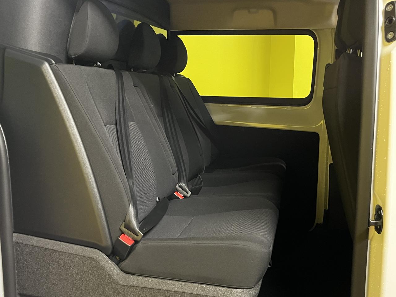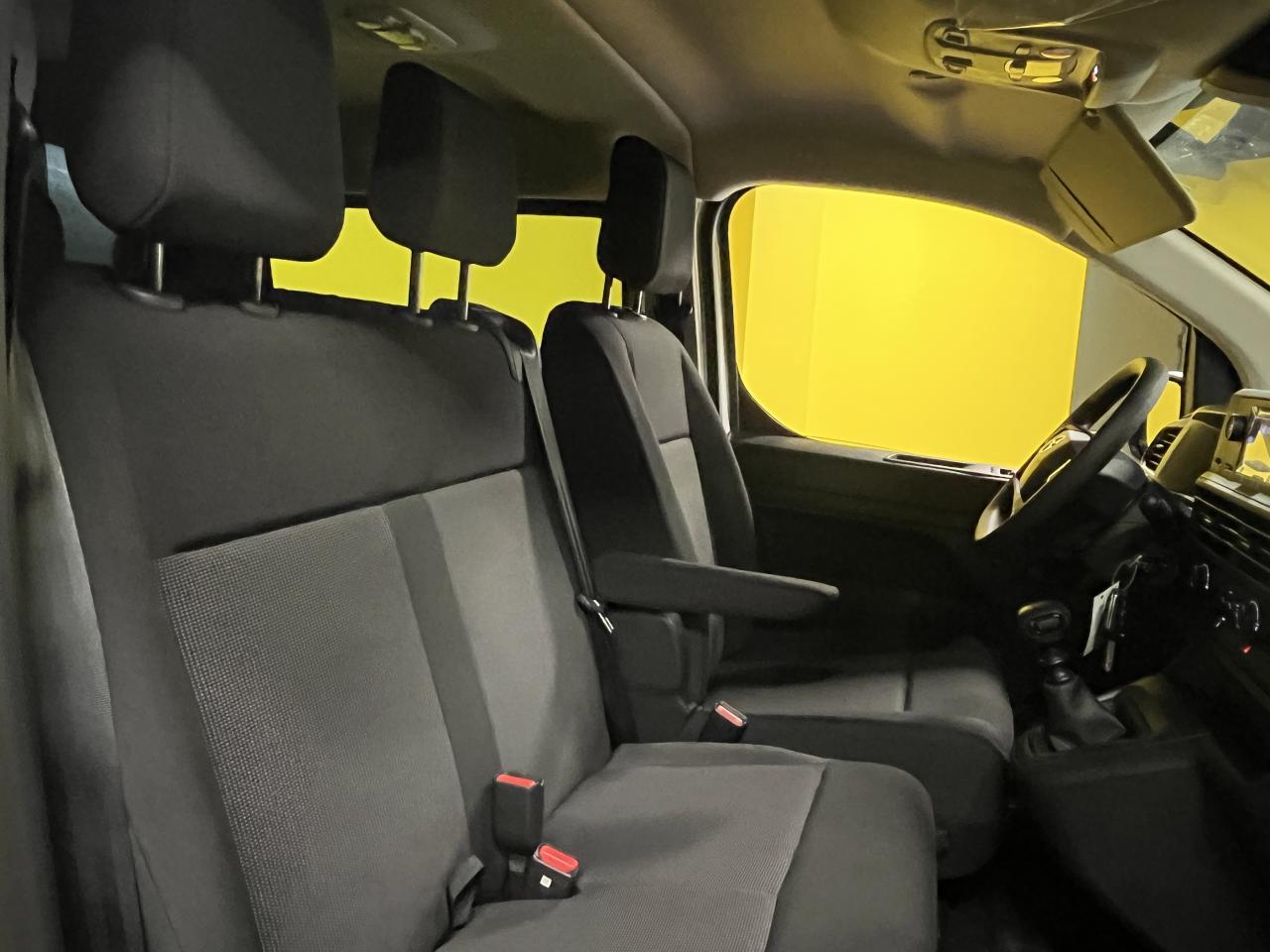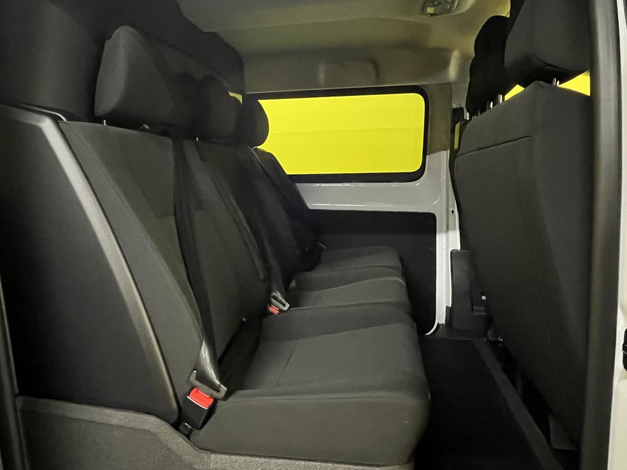 - Banquette fixe 3 places en rang 2 avec appui-tête réglables et 2 accoudoirs, position unique avec coffre de rangement amovible sous assises gauche et centrale (accessible depuis habitacle) et avec zone pour charge longue sous assise droite (accessible par la zone de chargement)