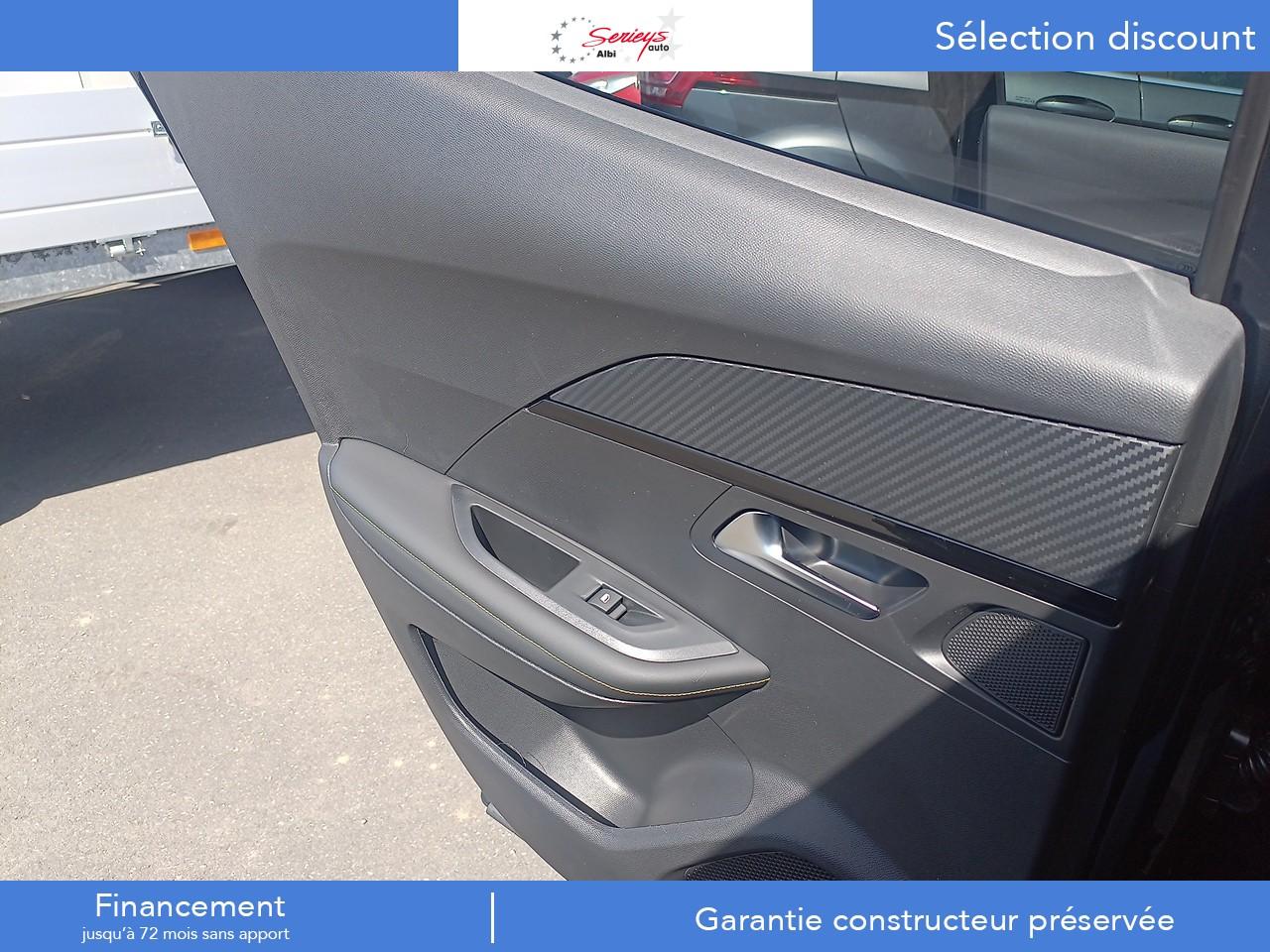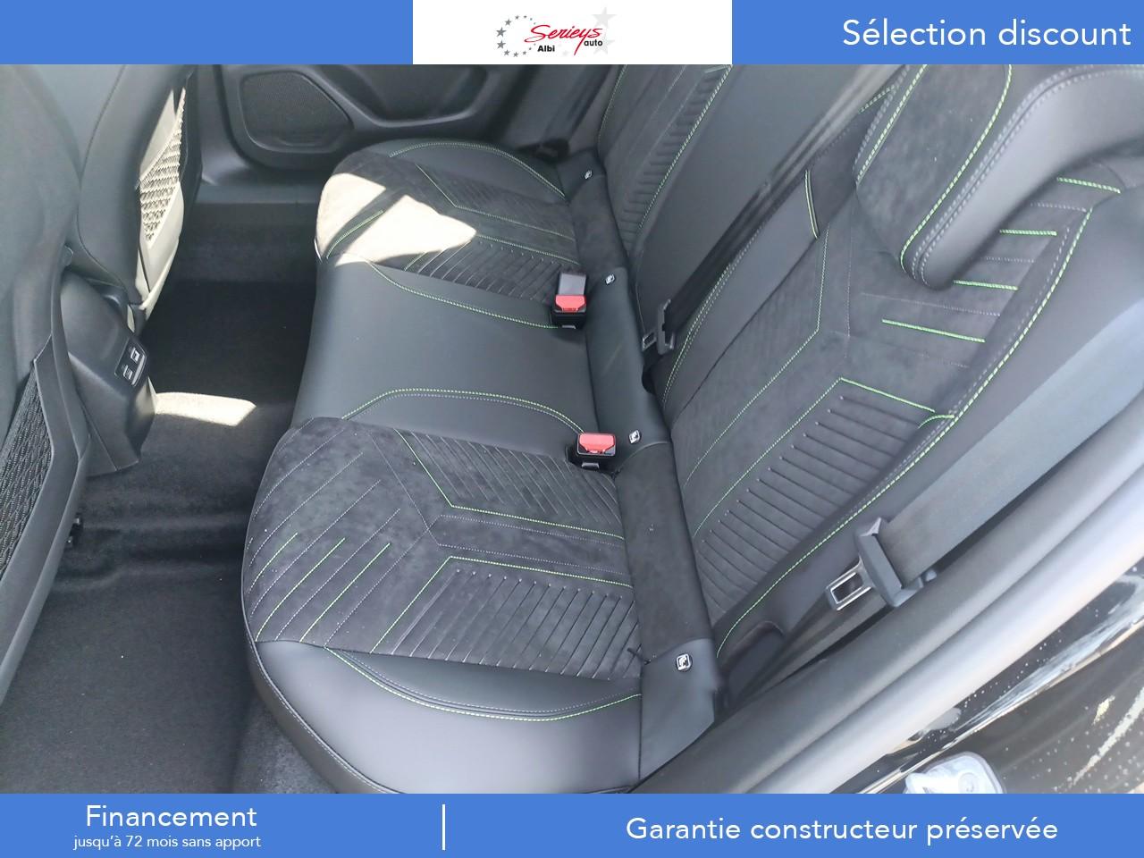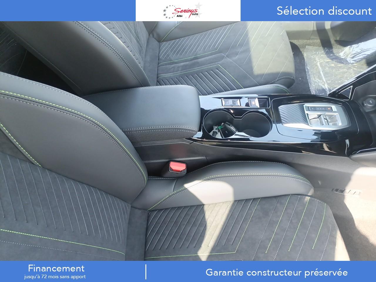 1 prise chargement USB-C1 prise USB type A (Charge) pour passagers arrière4 poignées de maintien (2 à l'avant et 2 à l'arrière)6 haut-parleurs (2 tweeters et 2 woofers à l'avant et 2 haut-parleurs à l'arrière)Accès et démarrage mains libres ProximityAccoudoirs de porte avant et arrière tissu/TEP Isabella avec surpiqûre AdamiteAide au démarrage en côteAir conditionné automatique Mono-zoneAirbags frontaux auto-adaptatifs, latéraux avant (thorax et abdominaux), rideaux avant et arrièreAppuie-tête avant et arrière (aux 3 places) réglables en hauteurBanquette arrière rabattable 1/3-2/3Barres de toit longitudinales noires brillantesBecquet arrière Noir Perla NeraBoitiers de rétroviseurs extérieurs noir brillantCalandre Haut de gamme Noir avec marquage vertical couleur caisse, larmes Dark ChromeCanule d'échappement chromée doubleChargeur à induction pour smartphone 15WCommandes d'ouverture extérieure de portes couleur caisseConsole haute avec accoudoir & frein de stationnement électriqueDécor de grille inférieure Gris MétéorDétection de sous-gonflage indirecteEclairage polyambiant 8 couleurs (Liés aux modes de conduite)Enjoliveur de seuil de coffre Gris MétéorEnjoliveur supérieur couleur caisseEnjoliveurs de custode avec sérigraphieESP entièrement déconnectableFeux arrière 3 griffes à LEDFixations ISOFIX Top Tether pour les places latérales arrièreHabitacle et ciel de pavillon noirKatana noir mat avec insert noir brillant et monogramme GTKit de dépannage pneumatiqueLécheurs de vitres latérales noir brillantLève-vitres électriques avant et arrière, séquentiels et antipincementPack Eclairage IntérieurPack i-ConnectPack Safety PlusPack VisibilitéPanneaux de portes arrière avec grain Karsten avec baguette Noir brillantPanneaux de portes avant avec décor Carbone et baguette Noir brillante et jonc lumineux (8 couleurs) et crosse de tirage TEP Isabella MistralPare-brise teinté acoustique sérigraphié bi-couchesPédalier sport en aluminiumPEUGEOT Connect SOS & Assistance et TéléservicesPeugeot i-Cockpit 3D avec combiné tête haute 10" numériquePlanche de bord moussée avec double surpiqûres adamite/tramontane et baguette Noir brillante avec jonc chromé et jonc lumineuxPlancher de coffre modulable 2 positionsProjecteurs Peugeot upper Full LED Technology avec feux diurnes à LED 3 griffesProtections latérales de porte noir grainé avec inserts Gris MétéorRétroviseur intérieur photosensible framelessRétroviseurs extérieurs dégivrants à réglage et rabattement électriques, éclairage de seuilSélecteur de mode de conduite (ECO / NORMAL / SPORT)Sellerie tissu Belomka accompagnement TEP Isabella tri-matière Uni Capy et surpiqûres Vert AdamiteSeuils de porte aluminium avec lettrage PEUGEOT NoirSiège conducteur avec réglage mécanique de hauteurSiège passager avant réglable en hauteur manuellementSurtapis aux places avant et arrièreSystème de commutation automatique feux de route/feux de croisementTélécommande 3 boutons + clé standardToit Black DiamondVitres latérales arrière et lunette arrière chauffante temporisée surteintéesVolant compact cuir fleur, commandes multimédia intégrées