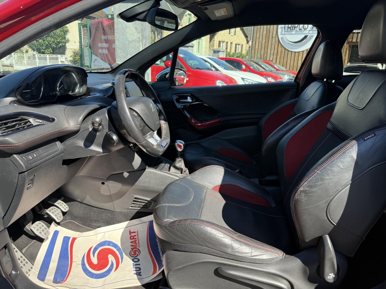 3 appuie-têtes arrière "virgule"ABS (Antiblocage de roues)Afficheur matrice couleurAFU (Assistance au freinage d'urgence), REF (Répartiteur Electronique de Freinage)Aide au stationnement arrièreAir conditionné automatique avec filtre combiné pollen/charbon actifAirbags frontaux (passager déconnectable), latéraux et rideauxAllumage automatique des feux de détresseBandeau de planche de bord en Technotep surpiquéBanquette arrière rabattable et fractionnable 1/3-2/3Becquet de hayon sportBoîte à gants ventiléeCalandre GTi à motif damier et jonc inférieur rougeCeinture de sécurité arrière centrale 3 pointsCeintures de sécurité avant et arrière latérales avec enrouleurs pyrotechniquesCiel de pavillon noirCombiné premium avec cerclage à LEDs rougesCombiné tête haute 4 mouvementsContrôle dynamique de stabilité (ESP) et antipatinage des roues (ASR)Coques de rétroviseurs extérieurs chrome brillantDiffuseur arrière noir laqué et jonc chroméDirection électrique à assistance variableDouble canule d'échappement chromée rectangulaireEclairage d'accompagnement "Follow me Home"Eclairage de boîte à gantsEclairage de coffreEcran tactileElargisseurs d'ailes et de bas de caisseEncadrement de vitres latérales chroméEssuie-glace arrière avec déclenchement automatique en marche arrièreEtriers de frein rougesFiltre à pollenFixations Isofix (aux places latérales arrière)Fonction BluetoothIndicateur de changement de direction à commande impulsionnelleIndicateur de changement de rapport de vitesseIndicateur de température extérieureJantes alliage 17" Carbone Gris Storm matLécheurs de vitres chromésLève-vitres avant électriques impulsionnel et anti-pincement coté conducteurLevier de frein à main en cuirMiroirs de courtoisie éclairésMonogrammes GTi (sur inserts de custode et hayon)Navigation et port USB déportéNavigation sur écran tactileOrdinateur de bord déporté sur écran tactilePédalier sport en aluminiumPack LedPack VisibilitéPoignées de portes couleur caissePommeau de levier de vitesse sport spécifiquePrise 12V sur façade techniqueProjecteurs antibrouillard avec enjoliveurs chromésProjecteurs haut de gamme (clignotants à LEDs)Protecteurs de seuils de portes avant avec fond de lettrage rougeRégulateur et limiteur de vitesseRétroviseurs extérieurs avec rappels de clignotants intégrésRétroviseurs extérieurs chauffants à réglages électriquesRétroviseurs extérieurs rabattables électriquementRoue de secours alliage 17"Siège conducteur réglable en hauteurSiège passager réglable en hauteurSièges sport mi-cuir clubSurtapis avant / arrière PremiumTémoin de non bouclage ou de débouclage des ceintures de sécurité avant et arrièreTablette cache-bagagesTiges d'appuie-tête avant et arrière chroméesVerrouillage automatique des portes en roulantVerrouillage centralisé des portes et du coffre par télécommande HFVitres arrière et lunette arrière surteintéesVolant compact 3 branches cuir pleine fleur multifonctionVolant compact multifonction réglable en hauteur et en profondeur