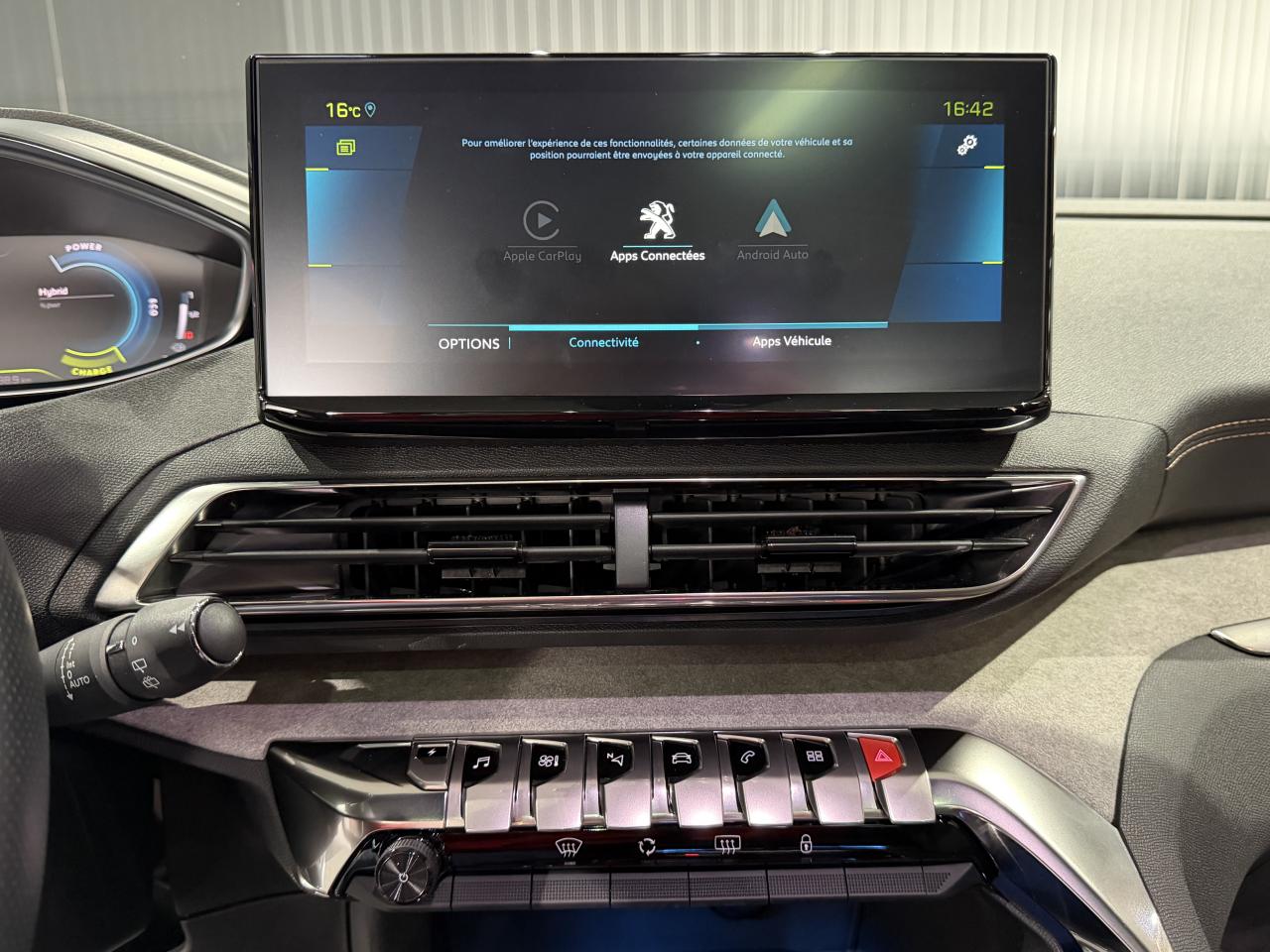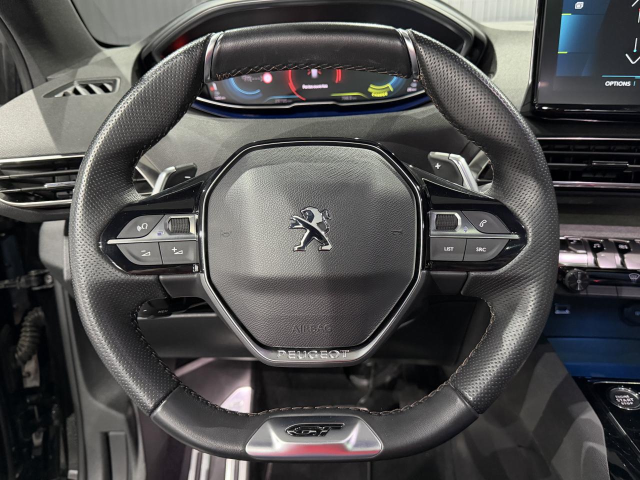 Accès et démarrage mains-libresAccoudoir central avant à ouverture papillon, avec compartiment de rangement éclairé et réfrigérableAir conditionné automatique bi-zone avec aérateurs aux places arrièreAirbags frontaux conducteur et passager adaptatifs (airbag passager déconnectable)Airbags latéraux conducteur et passager avantAirbags rideaux de tête aux places avant et arrièreAppuis-tête à sécurité optimisée réglables en hauteur sur les sièges conducteur et passager avant ainsi que sur les places latérales arrièresAVAS : système d'alerte sonore du véhicule émis à faible allure en roulage électrique, audible depuis l'extérieur pour la sécurité des piétonsAvertisseur de temps de conduiteBadge "HYBRID" sur ailes avant et volet de coffreBanquette rabattable 1/3 - 2/3 (commandes dans le coffre) avec accoudoir et trappe à skisBarres de toit longitudinales en aluminiumCâble de recharge T2 mode 2 (10A/2,3KW)Calandre GT avec design évolutif chroméCanules d'échappement de style chroméesChargeur embarqué 3,7kWCommandes de lève-vitres avec inserts chromésContrôle de la charge de la batterie à distanceCoques de rétroviseurs extérieurs Noir Perla NeraDécors de planche de bord et panneaux de portes en Alcantara Gris GrevalDétection de sous-gonflage indirecteDirection assistée électrique, avec colonne de direction réglable en hauteur et profondeur (mécanique)Drive Mode : Choix de 2 modes de conduite (Eco ou Sport)Driver Sport PackEnjoliveurs d'arc de pavillon en inoxEssuie-vitre avant avec système de lavage 'Magic Wash'Feux arrière LED 3D avec clignotants arrière défilantsFixation Isofix pour siege passager AVFixations Isofix aux 3 places arrièreFonction 'Mirror Screen' (Apple Carplay / Android Auto)Frein de stationnement électrique avec aide au démarrage en penteHabitacle et ciel de pavillon Noir MistralIndicateur de rapport conseilléInserts d'ailes avant chromésJantes alliage 18" 'Detroit' bi-ton diamantées Noir OnyxJoncs de vitres latérales en inoxKit de dépannage pneumatiqueLève-vitres électriques avant et arrière, séquentiels et antipincementLunette arrière surteintée chauffanteNavigation 3D connectée avec reconnaissance vocale, écran tactile capacitif 10" HD avec carte SIMPack City 1Pack Drive Assist PlusPack Eclairage d'ambiancePack Safety PlusPack VisibilitéPare-soleil avec miroirs de courtoisie éclairésPassages de roues rapportés noirsPédalier et repose-pied conducteur en aluminiumPeinture métallisée Bleu CélèbesPEUGEOT Connect SOS & Assistance et TéléservicesPeugeot i-Cockpit combiné tête haute numérique reconfigurable,et volant compact multi-fonctionsPlafonnier avant et arrière à LED avec 2 spots de lecturePlancher de coffre fixe avec articulation pour accès au coffre de rangement du câble de rechargePoches aumônières au dos des sièges avantPré-chauffage / climatisation du véhicule à distancePrises 12V (x3 : zone connectique, arrière de console et coffre)Prises USB de charge (x2) au 2nd rangProjecteurs 'Peugeot Full LED Technology' avec correction automatique de site, fonction Eclairage Virage Statique,'Foggy Mode' et feux diurnes à LED prolongés dans les projecteursProtecteurs de bas de portes avec inserts Inox BrillantReconnaissance étendue des panneaux de circulationRétroviseur intérieur électrochrome sans contourRétroviseurs extérieurs électriques et dégivrants, rabattables électriquement,éclairage d'accueil à LED,témoin de surveillance d'angles mortsSabot de pare-choc avant MétallureSécurité enfant électrique des vitres arrièreSélecteur de modes de conduite modes Electric/Sport/HYBRIDSellerie Mi-TEP/Tissu BelomkaSeuils de portes avant en inoxSiège conducteur avec réglage lombaireSiège passager avant avec mise en tabletteSièges avant réglables en hauteurSurtapis aux places avant et arrièreToggle Switches' chromés (touches 'piano' d'activation des fonctions de l'écran tactile)Toit Black DiamondTrappe de recharge électrique sur l'aile arrière gauche, avec indicateur lumineux d'état de rechargeVitres latérales AR surteintéesVitres latérales feuilletées acoustiques à l'avantVolant cuir fleur perforé avec bagues chrome acier et badge GT