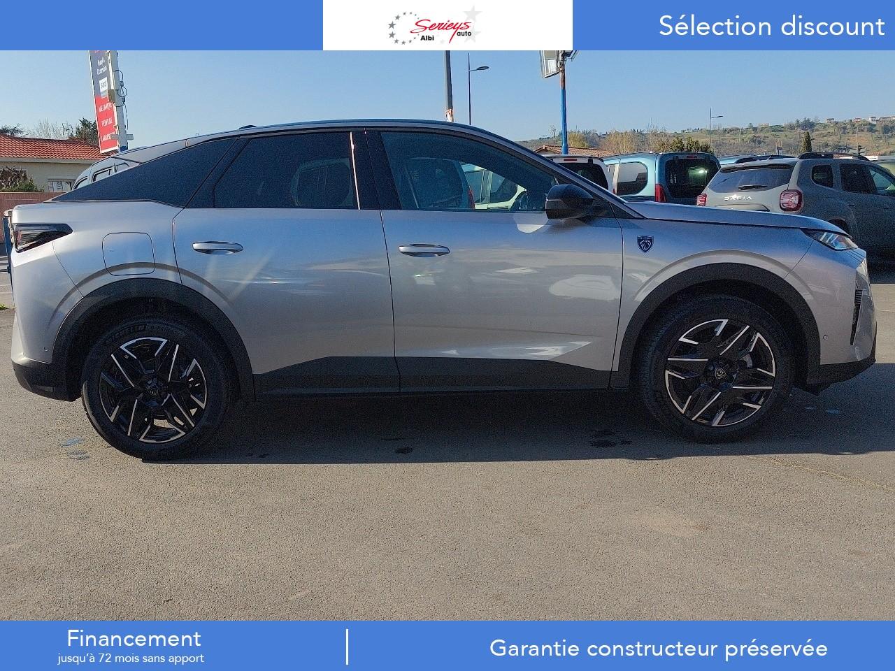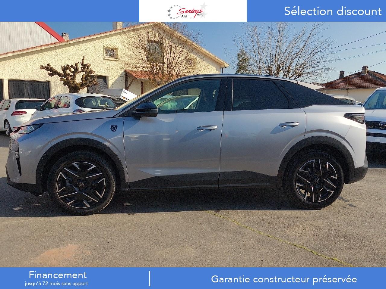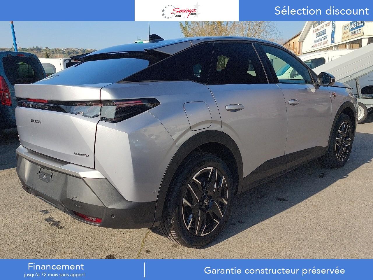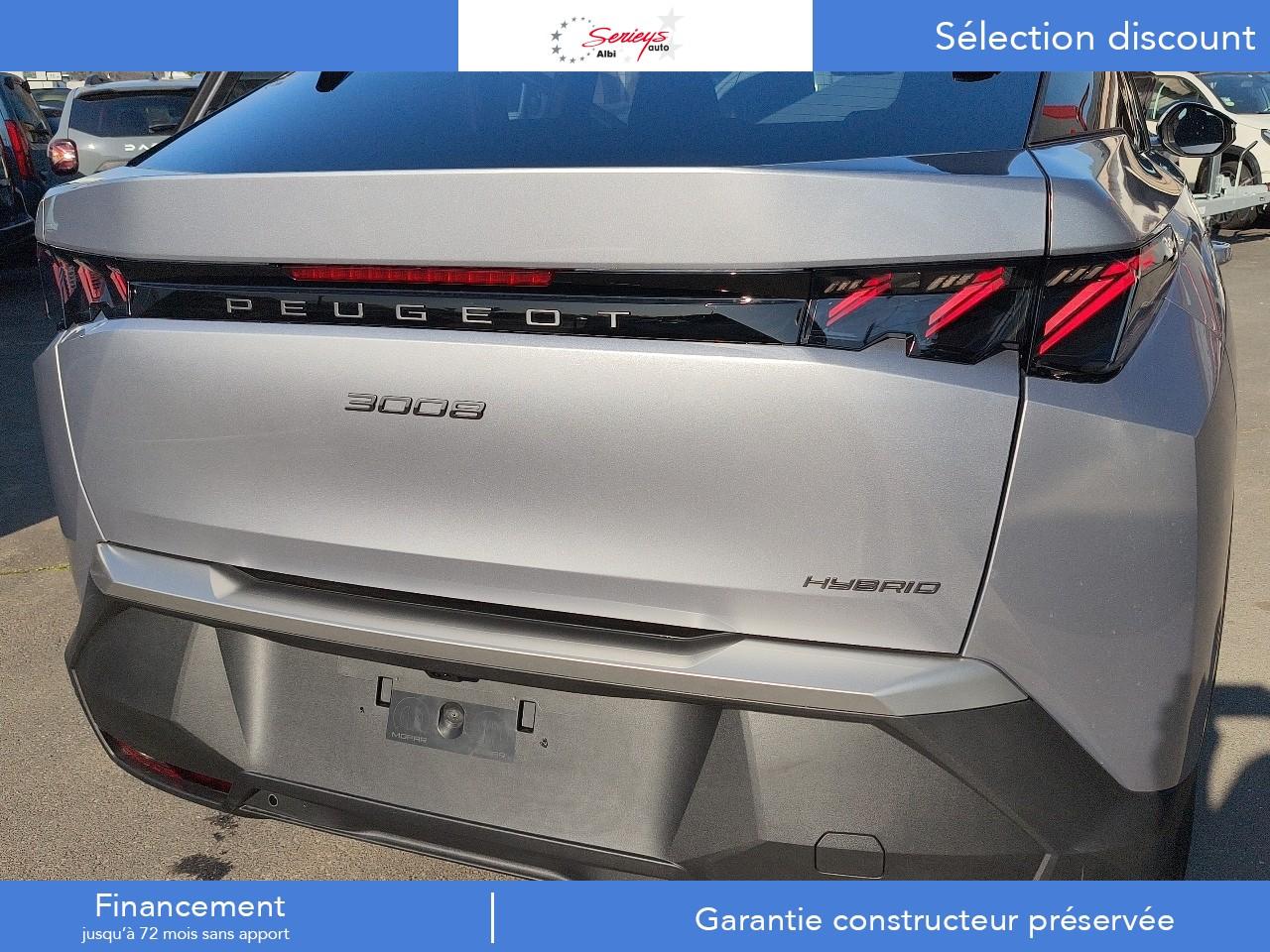 1 prise 12 V dans la console centrale1 prise USB C (Data & charge) et 1 prise USB C (Charge) à l'avant2 ports USB-C de recharge à l’arrière2 télécommandes 3 boutons6 haut-parleurs (2 tweeters et 2 woofers à l'avant et 2 larges bandes à l'arrière)Accès et démarrage mains libres ProximityAir conditionné à régulation automatique 2 zonesAirbags frontaux conducteur et passager adaptatifs (airbag passager déconnectable)Airbags latéraux conducteur et passager avantAirbags rideaux de tête aux places avant et arrièreAlerte active de franchissement involontaire de ligne et bas côtéAlerte attention conducteurAlerte Risque Collision (ARC)Allumage automatique des projecteursBandeau entre les feux arrière Noir laqué avec lettrage 'Peugeot’Bandeau entre les projecteurs Noir laqué avec logo '3008’Blason "3008" à l'avantBlason "Peugeot" sur ailes avantCalandre couleur carrosserieCommutation automatique des feux de routeConnect PlusConsole centrale avec décor tissu RIMINI chiné, façade Noir laqué et jonc Cast Iron, accoudoir tissu RIMINI chinéDécor inférieur Gris MeteorDétection de sous-gonflage indirecteDossiers de banquette arrière rabattable 40/20/40 avec accoudoir central arrièreEclairage d'ambiance indirect, jour & nuit sur la planche de bord, les panneaux de portes avant et sous l'écran panoramique 21'', associé aux modes de conduite, personnalisable en 8 couleursEclairage de la boîte à gant LEDEclairage LED des caves de pieds avantEcopes latérales Noir laquéElargisseurs de passages de roues couleur noireESP avec aide au démarrage en penteEssuie-glace à déclenchement automatiqueFeux AR à griffes 3D LEDsFixations ISOFIX Top Tether pour les places latérales arrièreFonction Bluetooth, Mirror Screen sans fil (Apple CarPlay/ Android Auto)Frein de stationnement électriqueFreinage d'urgence automatique piloté par caméra et radarHabitacle et ciel de pavillon noirHayon électrique mains libresJantes alliage 19'' diamantées BREDA Noir Orbital, vernis brillantJupe arriere inférieure Noir grainéJupe avant inférieure Noir grainéKit de dépannage pneumatiqueLampe LED dans le vide-poches de la console centraleLécheurs de vitres masquésLève-vitres électriques avant et arrière, séquentiels et antipincementLimiteur de vitesseMonogrammes arrière ' HybridMonogrammes arrière '3008'Navigation 3D ConnectéePanneaux de portes avec décor tissu RIMINI chiné, décor d’alcôve en Aluminium sérigraphié et jonc Cast Iron, accoudoirs TEP Isabella, surpiqûres Iced Clay à l'avantPare-brise feuilleté et acoustiquePare-chocs arrière avec décor Gris MeteorPare-soleil avec miroirs de courtoisie occultables éclairés à LEDPédalier et repose-pied aluminiumPeugeot Connect SOS et AssistancePeugeot i-Cockpit panoramique avec écran incurvé et flottant 21’’ HDPeugeot i-Connect AdvancedPeugeot i-Toggles virtuels avec 10 raccourcis personnalisablesPlafonnier avant et liseuses arrière i DOME tactiles à LEDPlanche de bord moussée avec décor tissu RIMINI chiné, décor d’alcôve en Aluminium sérigraphié, façade et aérateurs Noir laqué avec décor Cast IronPlancher de coffre modulable 2 positionsPoignées de maintien rétractables (x 4)Prises 12V à l'arrière de la console centrale et dans le coffreProjecteurs adaptatifsProjecteurs Peugeot Pixel LED avec feux diurnes 3 griffes à LEDProtections inférieures de portes noires grainéesRadio Numérique DABRecharge smartphone sans filReconnaissance étendue des panneaux de signalisation et préconisation de vitesseRégulateur de vitesse adaptatif avec fonction Stop & GoRétroviseur intérieur électrochrome sans contourRétroviseurs extérieurs dégivrants à réglage et rabattement électriques, éclairage de seuilSellerie Alcantara REFLECTION embossé accompagnement TEP Isabella, écharpe tissu RIMINI chiné, surpiqûres Iced ClaySeuil de portes avant inox avec lettrage ‘Peugeot’Sièges avant chauffantsSurtapis avant et arrière avec surpiqûres Iced Clay et logo 'GT'Toit et becquet arrière Black DiamondVisiopark 1Vitres arrière, custodes et lunette arrière surteintéesVolant chauffantVolant compact, cuir fleur lisse et perforé avec commandes intégrées Noir Laqué, décors Cast Iron , surpiqûres Iced Clay, insert Noir laqué avec badge ‘GT’