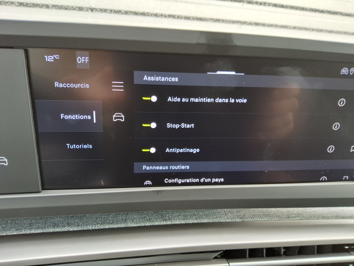 3 prises 12 V (Console centrale, rang 2, coffre)4 poignees de maintien retractables (2 a l'AV et 2 a l'AR)6 airbags: Frontaux conducteur et passager (passager neutralisable par cle),6 HP (2 tweeters et 2 woofers a l'AV et 2 larges bandes a l'AR)ABSAcces et demarrage mains libres ProximityAir conditionne automatique bi-zoneAllumage automatique des pharesBanquette AR avec dossier rabattable 40/20/40Boite de vitesse automatique, sequentielle (6 rapports)Detection de sous-gonflage indirecteDirection assisteeEclairage interieurElements de style exterieurElements de style interieureESP avec aide au demarrage en penteEssuie-vitre AV a declenchement automatiqueFeux AR 3 griffes a LEDFeux diurnes 3 griffes a LEDFixations ISOFIX et Top Tether aux places laterales ARFrein de stationnement electriqueHabitacle et ciel de pavillon NoirLeve-vitres AV/AR electriques et sequentiels avec antipincementMonogrammes AR 3008 et HybridMonogrammes AV: blason PEUGEOT et 3008Pack Safety PlusPare-brise feuillete acoustiquePEUGEOT i-Cockpit panoramique avec Double ecran HD flottant (2 x 10'')Plancher de coffre modulable 2 positionsProjecteurs "Peugeot Led Technology"Retroviseur interieur electrochromeRetroviseurs exterieurs degivrants avec reglage et rabattement electriques, eclairage de seuilSellerie tissu CRISPY embosse, accompagnement TEP Isabella, echarpe tissu RIMINI chine,Sieges AV a reglage en hauteur manuelVerrouillage centraliseVisiopark 1Volant compact croute de cuir avec commandes integrees
