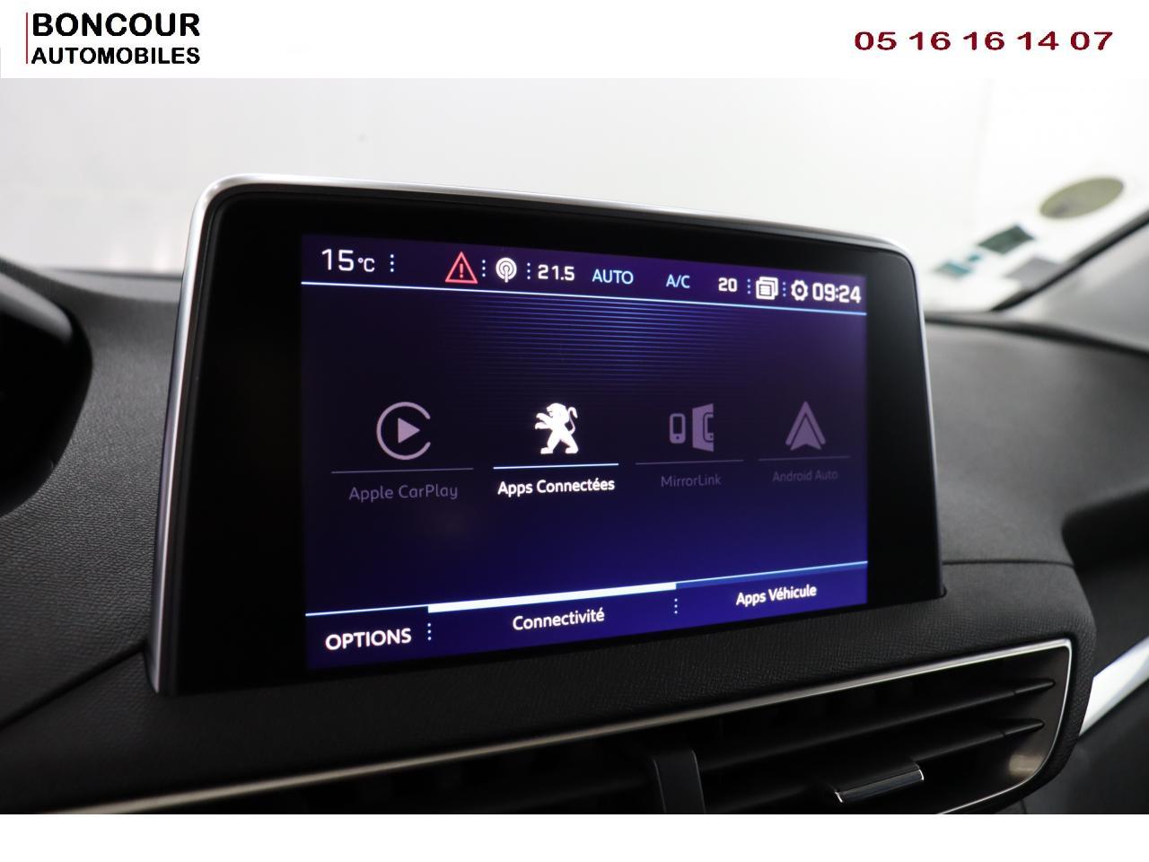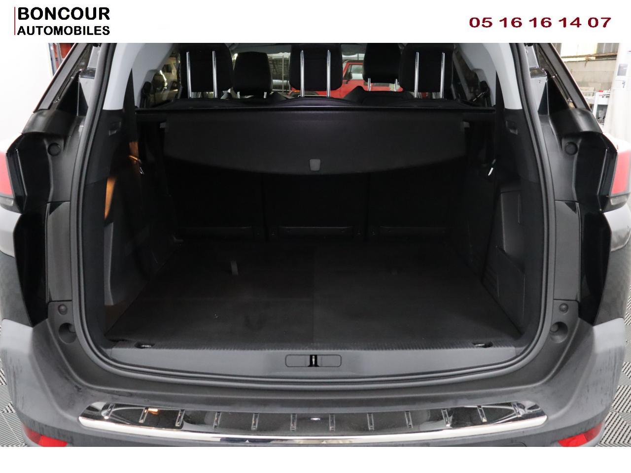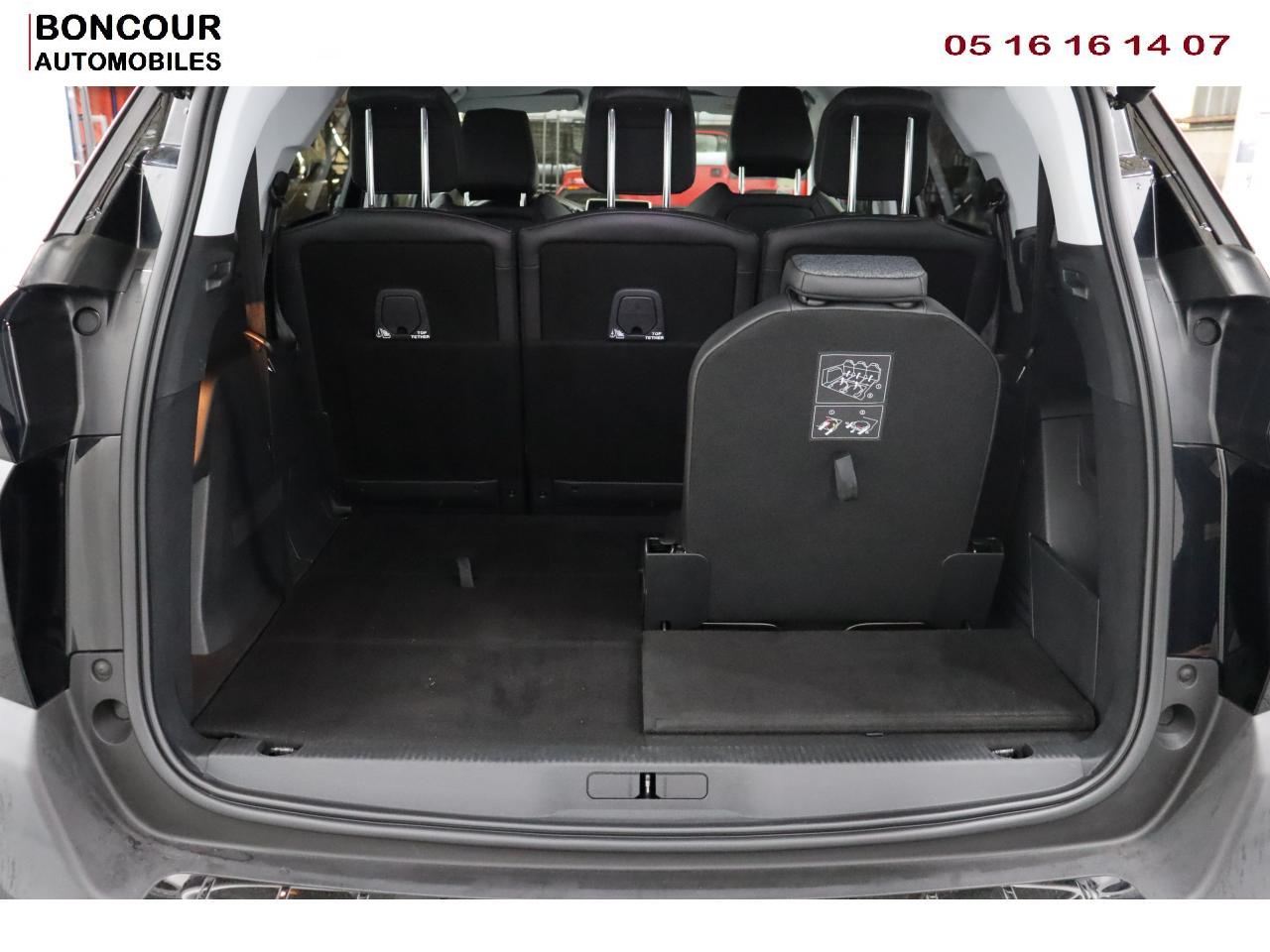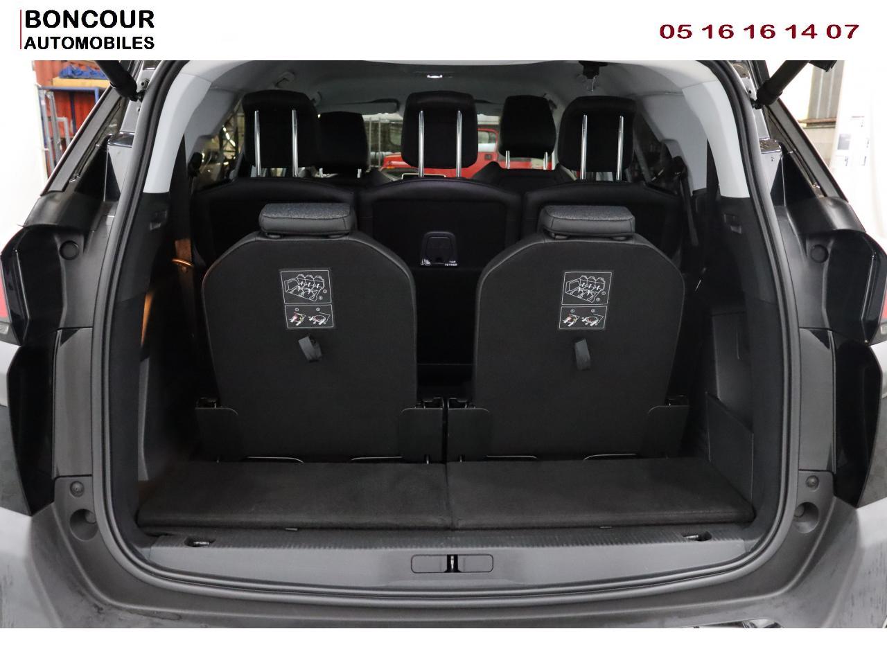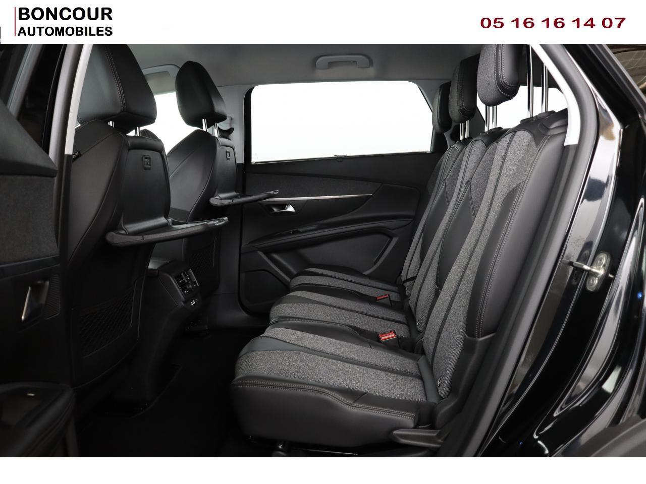 2 sièges de 3è rang, escamotables3 Fixations Isofix (3 points d'ancrage au rang 2)3 Sièges arrière en rang 2 (indépendants, coulissants, inclinables et escamotables dans le plancher)Accoudoir central avant à ouverture papillon, avec compartiment de rangement éclairé et réfrigérableADML ( Accès et Démarrage mains libres)Aide au Freinage d'Urgence (AFU)Aide sonore et graphique au stationnement arrièreAir conditionné automatique bizone + diffuseur arrièreAirbags frontaux conducteur et passager (passager neutralisable), latéraux avant et rideauxAlerte de temps de conduiteAppuis-tête à sécurité optimisée réglables en hauteur sur les sièges conducteur et passager avant ainsi que sur les places arrièresBarres de toit longitudinales profilées en aluminiumFonction Mirror ScreenFrein de stationnement électrique avec aide au démarrage en penteHayon mains libres : volet de coffre motorisé avec accès mains libresJantes alliage 18" 'Detroit' bi-ton diamantéesLève-vitres avant et arrière électriques, séquentiels avec anti-pincementLunette arrière chauffante avec antennes sérigraphiéesPack City 1Pack Eclairage d'ambiancePack Safety PlusPack VisibilitéPeugeot Connect : Navigation 3D connectée avec reconnaissance vocale + PEUGEOT Connect SOS & AssistancePeugeot i-Cockpit Amplify: choix de 2 ambiances paramétrablesPeugeot i-Cockpit combiné tête haute numérique reconfigurable, écran tactile capacitif 8" et volant compact multi-fonctionsPrise 12V (x3) : à l'avant, à l'arrière et dans le coffrePrise USBProjecteurs 'Peugeot Full LED Technology' avec correction automatique de site, projecteurs antibrouillard à LED avec fonction cornering, clignotants avant à LED avec défilement dynamiqueRétroviseurs extérieurs rabattables électriquement avec éclairage d'approche à LEDRecharge smartphone sans filReconnaissance des panneaux de vitesse et préconisationRideaux pare-soleil en rang 2Siège passager avant mécanique avec mise en tabletteSiège passager avant réglable en hauteur manuellementVitres arrière surteintées : latérales + lunette
