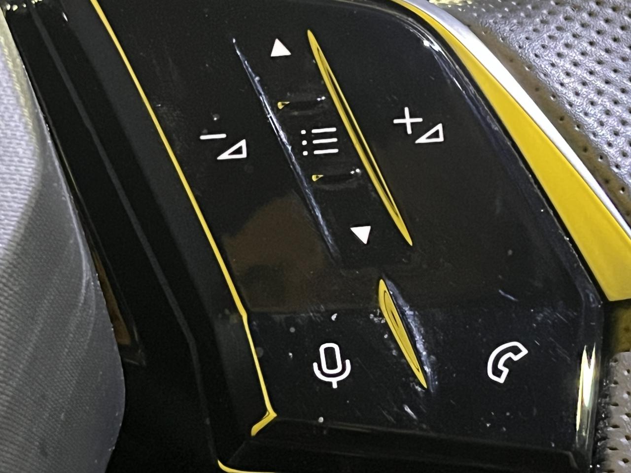 - Volant compact, cuir fleur lisse et perforé avec commandes intégrées Noir Laqué, décors Cast Stène , surpiqûres Iced Clay, insert Noir laqué avec badge ‘GT’