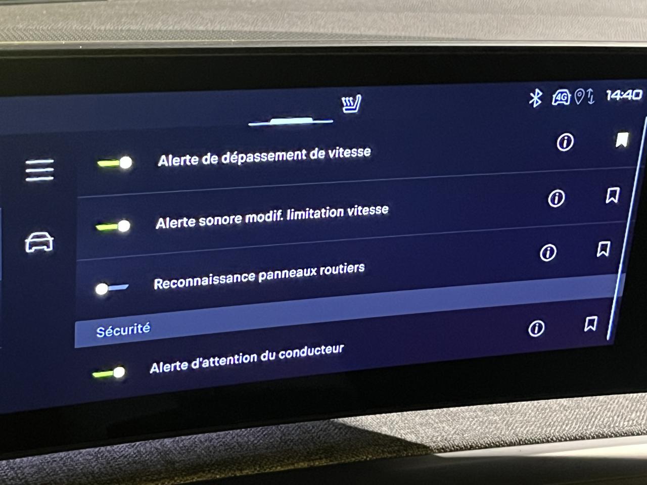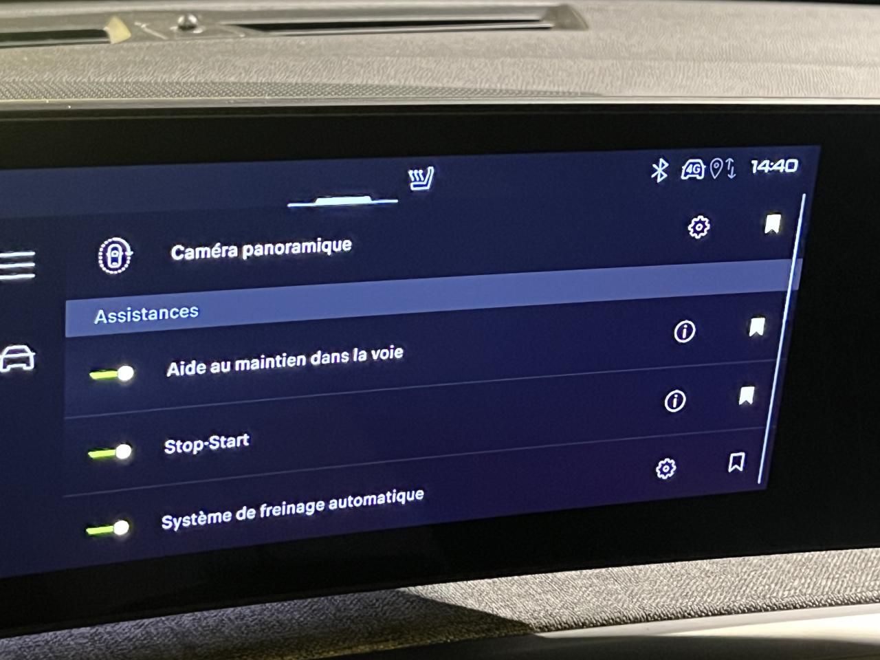 - Peugeot i-Toggles virtuels avec 10 raccourcis personnalisables