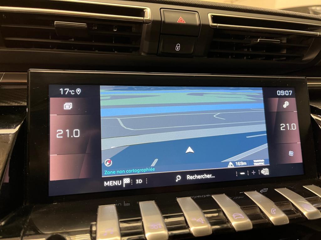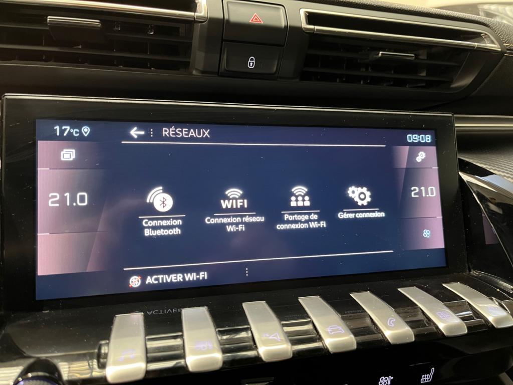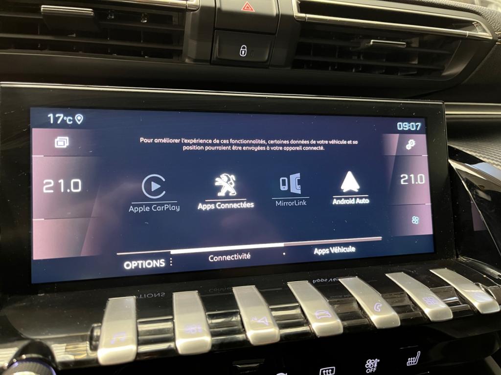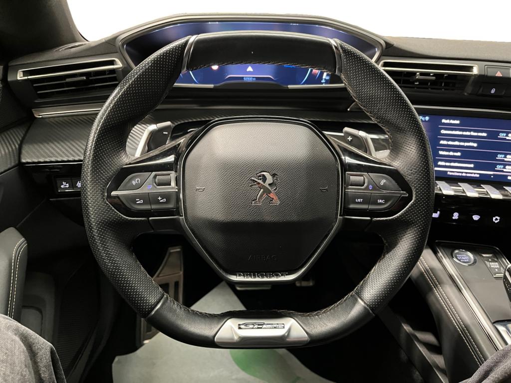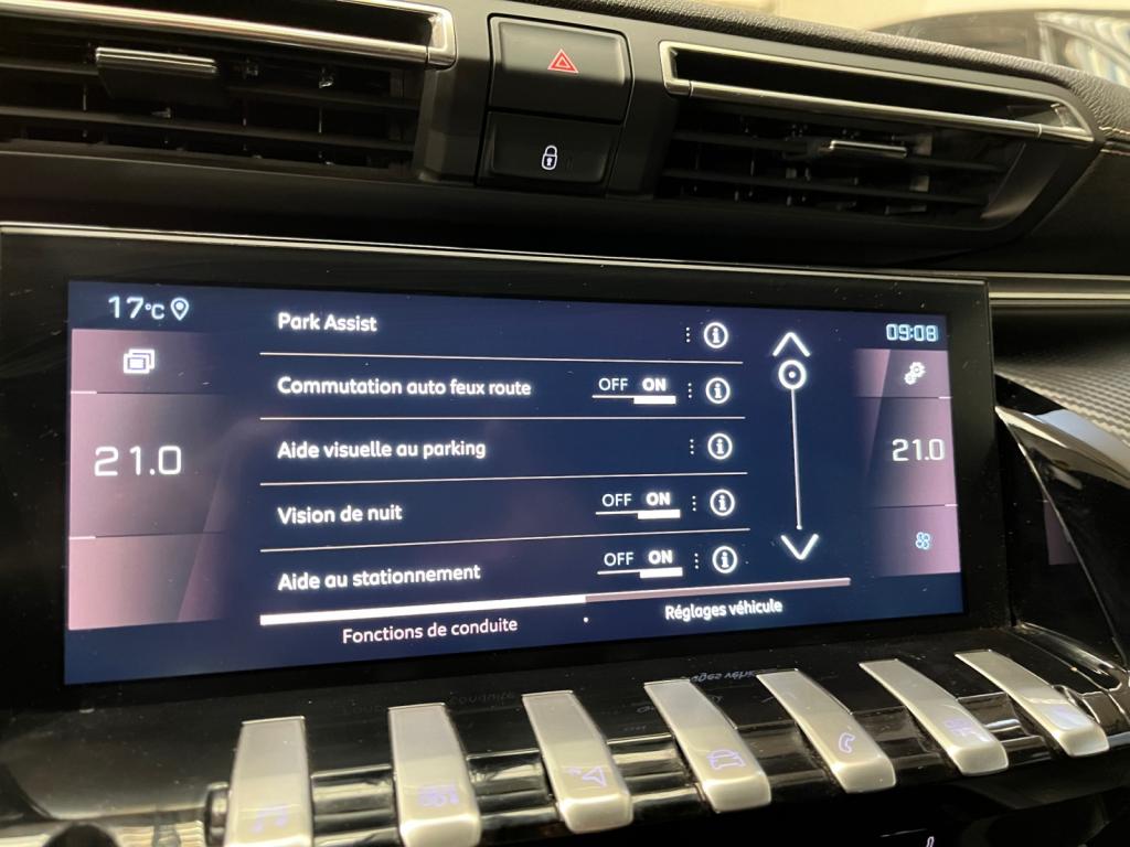 2 ports USB de chargement dans la console centrale arrièreABS avec répartiteur électronique de freinage (REF) et aide au freinage d'urgence (AFU)Accès et démarrage mains-libresAccoudoir central avant à ouverture papillon, avec compartiment de rangement éclairéActive Suspension Control (Suspension pilotée)Air conditionné automatique bi-zone avec aérateurs aux places arrièreAir Quality System (sonde de pollution, couplée à un filtre à charbon actif Haute Efficacité)Banquette arrière rabattable 2/3 - 1/3 avec accoudoir central et trappe à skisCalandre à damier chromé et contour chroméCeintures de sécurité arrière, avec limiteurs d'effort progressifsContrôle électronique de trajectoire (ESC)Contrôle dynamique de stabilité CDS avec antipatinage électronique ASRCrochets de fixation pour cintre (x2 à l'arrière)Eclairage d'ambiance bleu sur planche de bord, panneaux de porte et console centraleEclairage intérieur à LED étendu : Eclairage intérieur LED + zone coffre (x2), pare-soleil, accoudoir central, porte-gobelets, caves à piedsFeux de reculFilets aumônières au dos des sièges avantFonction Mirror ScreenFrein de parking automatique électrique avec desserrage automatique au démarrageHabitacle et ciel de pavillon noirKit de dépannage pneumatiqueLève-vitres électriques avant et arrière, séquentiels et antipincementPack City 1Pack Safety PlusPack VisibilitéPeugeot i-Cockpit Amplify: choix de 2 ambiances paramétrablesPeugeot i-Cockpit avec combiné tête haute numérique reconfigurable, écran tactile capacitif 10" et volant compact multi-fonctionsProjecteurs Full LED avec correction automatique de site, clignotants avant à LED et éclairage en virage statique et feux 3D Full LED adaptatifsRéglage manuel des sièges avant en hauteurRégulateur et limiteur de vitesseRétroviseur intérieur sans contourRétroviseurs extérieurs électriques et dégivrants, rabattables électriquement avec éclairage d'accueil à LEDSellerie Tissu 'Belomka' noir & TEP noirSièges avant mécaniques avec réglage lombaire électriqueSurtapis avant et arrière noirs avec double surpiqûre aikiniteSystème d'Infotainment et Navigation Peugeot Connect avec écran tactile capacitif 10'' HD, 1 prise jack, 2 prises USBToggle Switches' chromés (touches 'piano' d'activation des fonctions de l'écran tactile)Vitres latérales et lunette arrière surteintéesVolant cuir fleur perforé avec bagues chromées et badge GT Line