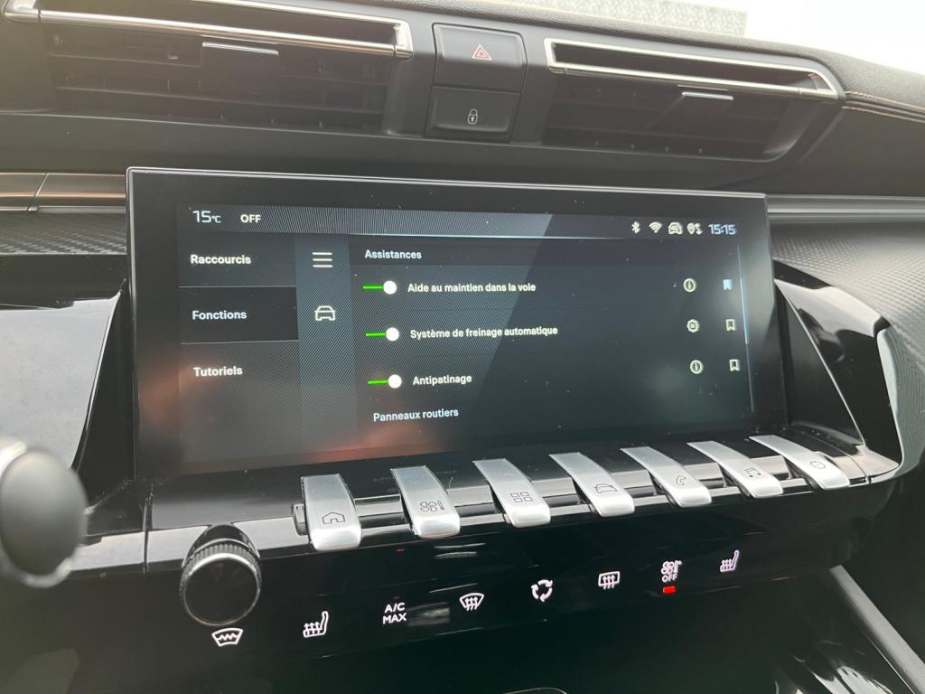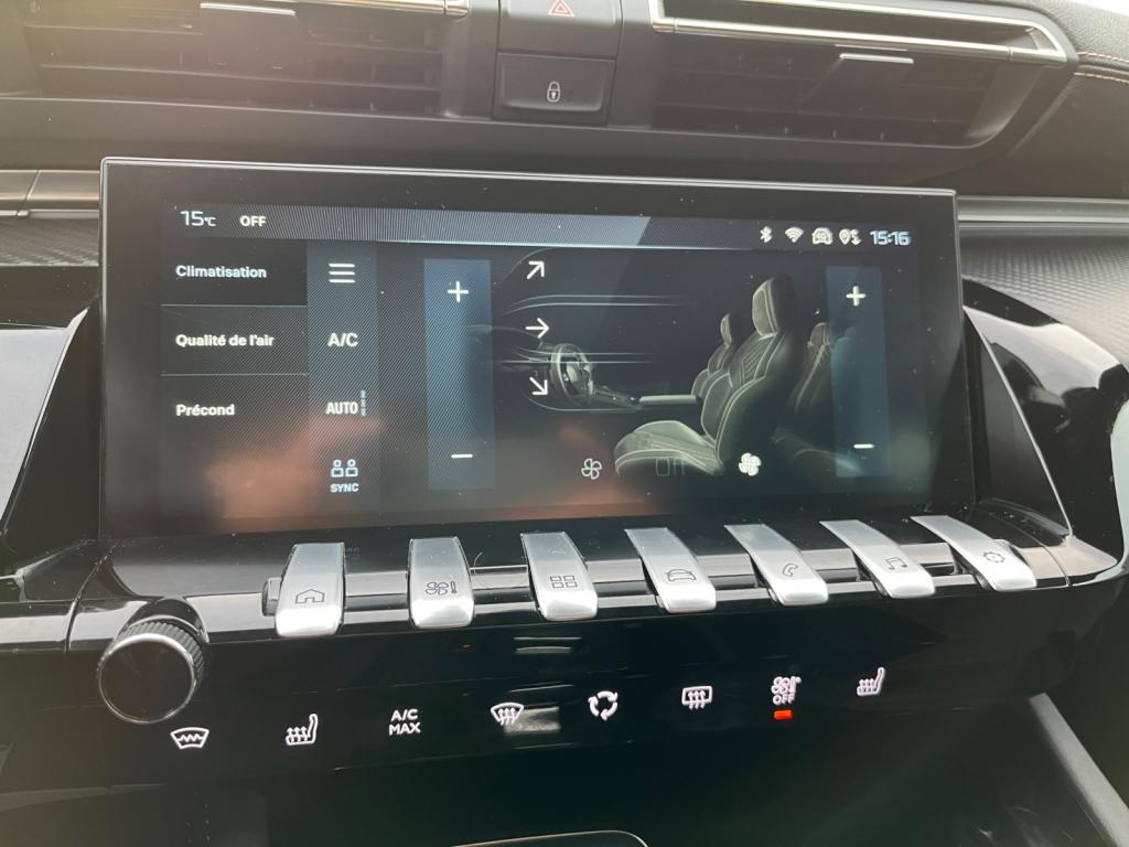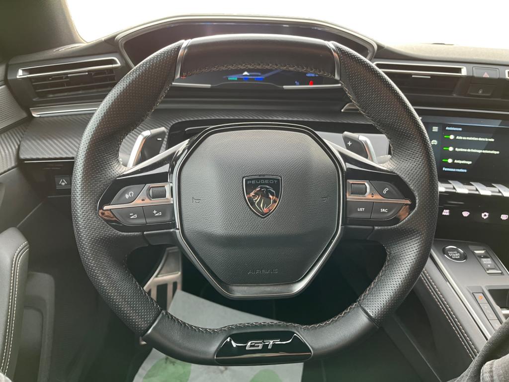 Accès et démarrage mains-libresAccoudoir central avant à ouverture papillon, avec compartiment de rangement éclairéAide graphique et sonore au stationnement arrière, avant et en latéralAir conditionné automatique bi-zone avec aérateurs aux places arrièreBadges ‘508’ et signature ‘PEUGEOT’ de couleur ‘Gris Basalte’Badges ‘GT’ de couleur ‘Gris Basalte’ sur custodes et volet de coffreBanquette rabattable 1/3 - 2/3 (commandes dans le coffre) avec accoudoir et trappe à skisChargeur embarqué 3,7kWEclairage intérieur LED : Plafonniers avant et arrière avec 2 spots de lecture,Pare soleil avec miroirs de courtoisie éclairés, rangements, caves à piedsFeux arrière full LEDFonction 'Mirror Screen' (Apple Carplay / Android Auto)Frein de stationnement électrique avec aide au démarrage en pente et serrage automatiqueHabitacle et ciel de pavillon Noir MistralJantes alliage 18" ‘Epherra’ bi-ton diamantéesKit de dépannage pneumatiquePédalier et repose-pied en aluminiumPack ConfortPack Drive Assist PlusPack Peugeot i-Connect AdvancedPack Safety PlusPack VisibilitéPeugeot i-Cockpit avec dalle numérique tête haute 12,3''Projecteurs Matrix LEDRétroviseur extérieur conducteur électrochromeRétroviseur intérieur électrochrome sans contourRétroviseurs extérieurs électriques et dégivrants, rabattables électriquement,éclairage d'accueil à LED,témoin de surveillance d'angles mortsRadio Numérique DABSélecteur de modes de conduite modes Electric/Sport/HYBRIDSellerie Alcantara Mistral/mi-TEP avec surpiqûre AikiniteSignature ‘PEUGEOT’ sur le bandeau de volet de coffreSurpiqures ‘Aïkinite’ sur accoudoirs, planche de bord et pads de console centraleThème graphique du combiné et de l'écran tactile exclusif ‘Dichroïque’Toggle Switches' chromés (touches 'piano' d'activation des fonctions de l'écran tactile)Visiopark 2 : caméras avant et de recul avec restitution sur l'écran tactile d'une vue avant ou arrière, et d'une vue de dessus de l'environnement du véhicule sur 360°Volant cuir fleur perforé avec bagues chromées et badge GT
