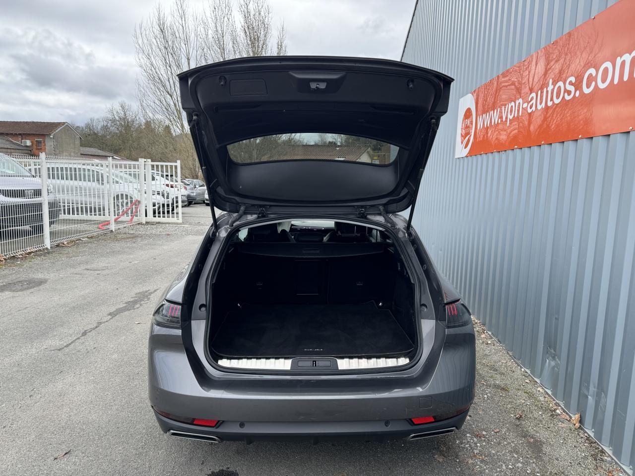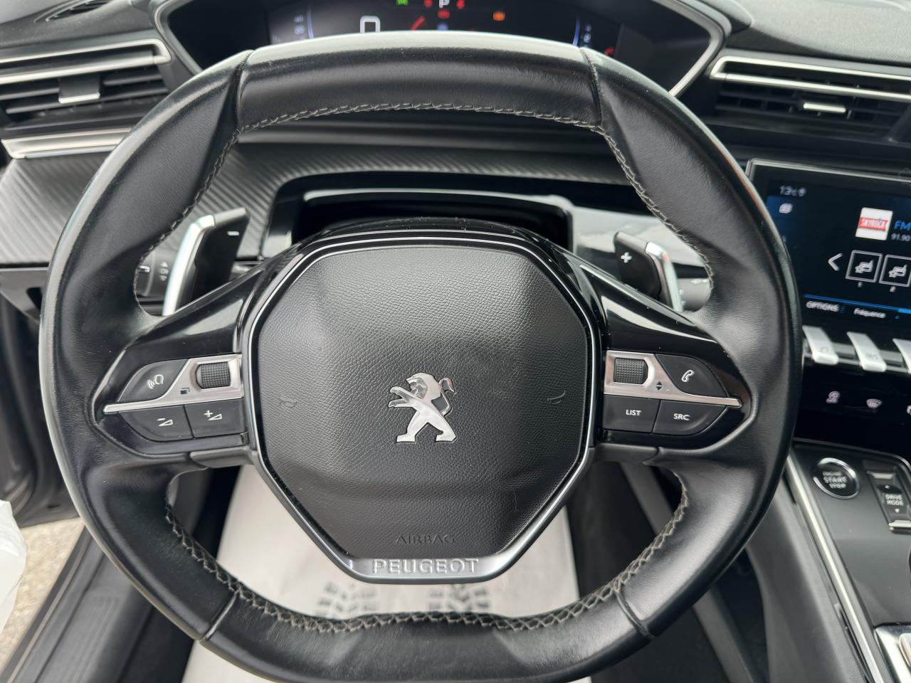 2 ports USB de chargement dans la console centrale arrièreABS avec répartiteur électronique de freinage (REF) et aide au freinage d'urgence (AFU)Accès et démarrage mains-libresAccoudoir central avant à ouverture papillon, avec compartiment de rangement éclairéAir conditionné automatique bi-zone avec aérateurs aux places arrièreAir Quality System (sonde de pollution, couplée à un filtre à charbon actif Haute Efficacité)Airbags frontaux conducteur et passager adaptatifs (airbag passager déconnectable)Airbags latéraux conducteur et passager avantAirbags rideaux de tête aux places avant et arrièreAppuie-tête avant et arrière règlables en hauteurAvertisseur de temps de conduiteBanquette rabattable 1/3 - 2/3 (modularité 'Magic Flat' et commandes dans le coffre) avec accoudoir et trappe à skisBarres de toit longitudinales en aluminiumBoîte à gants floquée et éclairéeCalandre avec ailettes chromées et contour noir brillantCapot avant actifCeintures de sécurité arrière, avec limiteurs d'effort progressifsCeintures de sécurité avant à enrouleurs à prétension pyrotechnique et limiteur d'effortColonne de direction avec réglage manuel de hauteur et de profondeurConsole centrale avant avec deux porte-gobelets rétroéclairésContrôle de stabilité de la remorque (TSM)Contrôle dynamique de stabilité CDS avec antipatinage électronique ASRContrôle électronique de trajectoire (ESC)Crochets de fixation pour cintre (x2 à l'arrière)Décors de planche de bord et panneaux de portes aspect carboneDétection de sous-gonflage indirecteDirection assistée électriqueEclairage d'ambiance bleu sur planche de bord, panneaux de porte et console centraleEclairage intérieur à LED étendu : Eclairage intérieur LED + zone coffre (x2), pare-soleil, accoudoir central, porte-gobelets, caves à piedsEntourage des vitres latérales en aluminiumEssuie-vitre avant avec système de lavage 'Magic Wash'Feux antibrouillard arrièreFeux de reculFeux diurnes à LEDFilets aumônières au dos des sièges avantFixation pour sièges enfants ISOFIX et Top Tether pour les places arrièreFonction Mirror ScreenFrein de parking automatique électrique avec desserrage automatique au démarrageHabitacle et ciel de pavillon grisJantes alliage 17'' Merion monotonJupe de pare-chocs arrière teintée masseKit de dépannage pneumatiqueLève-vitres électriques avant et arrière, séquentiels et antipincementPack City 1Pack Drive Assist PlusPack Safety PlusPack Sièges 'AGR'Pack VisibilitéPeinture opaque Gris HurricanePeugeot i-Cockpit Amplify: choix de 2 ambiances paramétrablesPeugeot i-Cockpit avec combiné tête haute numérique reconfigurable, écran tactile capacitif 10" et volant compact multi-fonctionsProjecteurs Full LED avec correction automatique de site, clignotants avant à LED et éclairage en virage statique et feux 3D Full LED adaptatifsProjecteurs halogènes avantRecharge smartphone sans filRégulateur et limiteur de vitesseRétroviseurs extérieurs couleur carrosserieRétroviseurs extérieurs électriques et dégivrants, rabattables électriquement avec éclairage d'accueil à LEDSélecteur de mode de conduiteSellerie Tissu 'Imila' noir & TEP noir ou Tissu 'Evron' Gris & TEP grisSeuil de coffre en inoxSortie d'échappement rectangulaire chromée de chaque côtéSurtapis avant/arrière noirs avec simple surpiqûre gris bétonSystème d'Infotainment et Navigation Peugeot Connect avec écran tactile capacitif 10'' HD, 1 prise jack, 2 prises USBTendelet coulissant le long des montants de custodeToggle Switches' chromés (touches 'piano' d'activation des fonctions de l'écran tactile)Verrouillage à distanceVerrouillage automatique de tous les ouvrants en roulantVitres latérales et lunette arrière surteintéesVolant cuir fleur