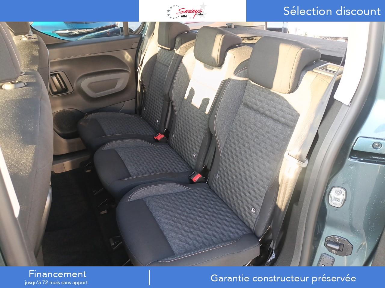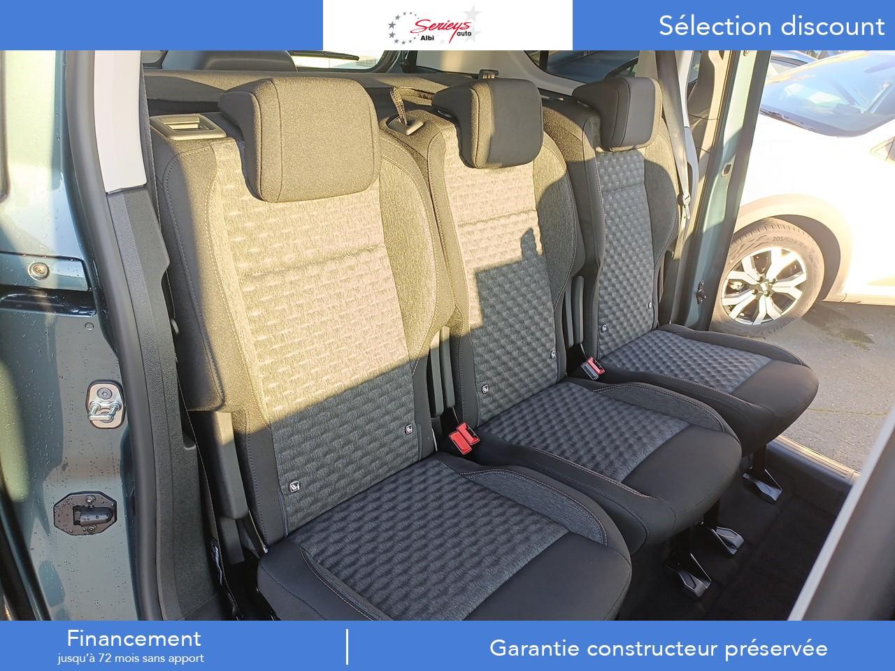 3 sièges arrière indépendants escamotables en rang 2ABS (Antiblocage de roues)GPS COULEUR Ecran 10 HDRadar AV + AR + Camera ARRadar AV avec Angles MortAide au stationnement arrièreAirbags frontaux et latéraux (thorax et abdominaux) conducteur et passager avantAirbags rideauxAllumage automatique des projecteursAnti-patinage (ASR)Assistance au démarrage en côte (Hill Assist)Assistance au freinage d'urgenceBarres de toit longitudinales noires brillantesBluetoothBoîte à gants inférieure ferméeBoîte à gants Top Box réfrigéréeCaméra de recul avec Digital Visiopark 180Capucine de rangementClimatisation automatique bi-zoneCombiné Numérique 10'' couleurCommutation automatique des feux de routeCondamnation centralisée par plip HF avec 2 plipsContrôle dynamique de conduite (ESP)Coques de rétroviseurs extérieurs noires verniesDétecteur de sous-gonflageESC (Correcteur électronique de trajectoire)Essuie-glace à déclenchement automatiqueFeux diurnes Eco LEDFonction Mirror Screen (Apple Carplay / Android Auto ) sans filFrein de stationnement électriqueHayon arrière vitré avec essuie-glace et dégivrageJantes alliage 17", pneumatiques 215/60 R17Lève vitres électriques avant et arrière impulsionnelsLimiteur de vitesseLunette arrière ouvrante surteintéePack SafetyPeugeot Connect SOS & AssistancePortes latérales coulissantes droite et gaucheProjecteurs antibrouillardProjecteurs EcoLEDRadio DAB avec écran tactile couleur personnalisable 10" HDRangement ouvert devant le combinéRégulateur de vitesse auto-adaptatif avec fonction Stop And Go avec système actif de maintien au centre de la voieRétroviseurs extérieurs électriques et dégivrantsRétroviseurs extérieurs rabattables électriquementSécurité enfant électriqueSellerie tissu LosangeSiège conducteur à réglage lombaire avec accoudoirSiège passager individuel rabattable avec accoudoirSystème de fixation ISOFIX sur sièges de 2nde rangéeTablette arrière cache-bagages à 2 positionsTablette aviation au dos des sièges avantVitres fixes en rang 3Vitres surteintées sur rangs 2 et 3Volant chauffantVolant cuir multifonction