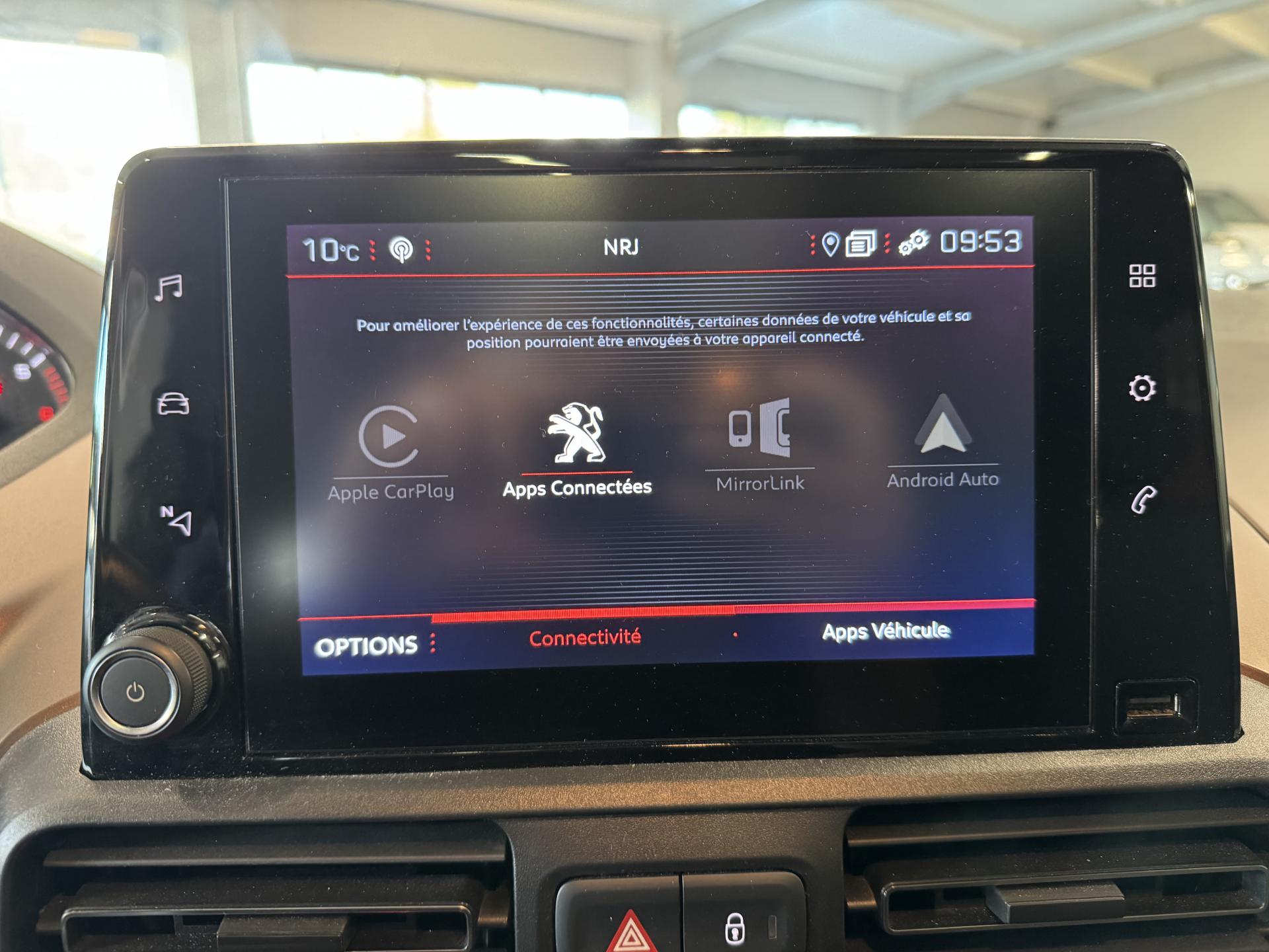 2 hauts parleurs sur portes avant, 2 hauts parleurs sur portes latérales coulissantes, 2 tweeters sur goussets de rétroviseurs extérieurs2ème Télécommande 3 boutons4 Crochets d'arrimage dans le coffreABS (Antiblocage de roues)Accès et démarrage mains-libresAFUI (assistance au freinage d'urgence intelligent)Aide au stationnement arrièreAirbags frontaux et latéraux (thorax et abdominaux) conducteur et passager avantAirbags rideaux avant et arrière 2e rangéeAllumage automatique des projecteursASR avec push inhibiteur (antipatinage à l'accelération)Assistance au démarrage en côte (Hill Assist)Barres de toit longitudinales noires laquéesBoîte à gants réfrigéréeCalandre noir laquéCapucine de rangementClimatisation automatique bi-zone, avec aérateurs à l'arrièreCombiné GT Line avec fond à damierCommandes d'ouverture extérieure de portes couleur caisseConsole centrale haute avec rangementsCoques de rétroviseurs extérieurs Noir OnyxDétection de sous-gonflage indirecteEnjoliveurs de plaque de police arrière couleur caisseESC (Correcteur électronique de trajectoire)Frein de stationnement électriqueInserts de protections latérales Noir OnyxJantes alliage 17'' diamantées Gris storm AORAKI, pneumatiques GOODYEAR Efficient Grip Performance 215/60 R17 TBRRKit de dépannage pneumatiqueLève vitres électriques avant et arrière impulsionnelsLunette arrière ouvrante chauffante, vitrages arrière surteintésNavigation 3D connectée à commande vocale, écran tactile capacitif 8'' couleur, Bluetooth, TomTom Traffic, parkings, stations services, météo locale, recherche locale de points d'intérêtPack SafetyPack VisibilitéPare-chocs avant couleur carrosseriePeinture opaque Blanc BanquisePeugeot Connect SOS et AssistancePEUGEOT i-Cockpit : Poste de pilotage innovant associant combiné tête haute, volant compact et grand écran tactilePortes latérales coulissantes droite et gauche avec vitres descendantes, vitres fixes en rang 3, vitrages arrière teintésPrise USB de recharge sous les aérateurs arrière (en rang 2)Projecteurs antibrouillardProjecteurs avec feux diurnes avec DRL à LED et module elliptiqueRétroviseur intérieur électrochromeRétroviseurs extérieurs électriques, rabattables et chauffantsRadio connectée, écran tactile capacitif 8'' couleur, 1 prise USB en facade, 1 prise USB dans la boite à gants supérieure, 1 prise jack, Bluetooth, Mirror ScreenSécurité enfant électriqueSabots avant et arrière Gris AluminéSellerie tissu 'Squared'Service Monitoring (Contrat de 10 ans)Siège conducteur réglable en longueur, hauteur et inclinaison, appui tête réglable en hauteur, réglage lombaire manuel, accoudoir, rangement sous siège, tablette aviation et aumonièreSiège passager escamotable, appui tête réglable en hauteur, accoudoir amovible, tablette aviation et aumonièreSièges individuels arrière (en rang 2) escamotables, fixations Isofix à chaque place, 2 portes gobelets, prise 12V en rang 3Surtapis et badges GT LineTélécommande 3 boutons + clé standardTablette arrière cache-bagages à 2 positionsTrappes de rangement dans le plancher arrière (en rang 2)Verrouillage centralisé de tous les ouvrantsVolant GT Line cuirVolant réglable en hauteur et en profondeur