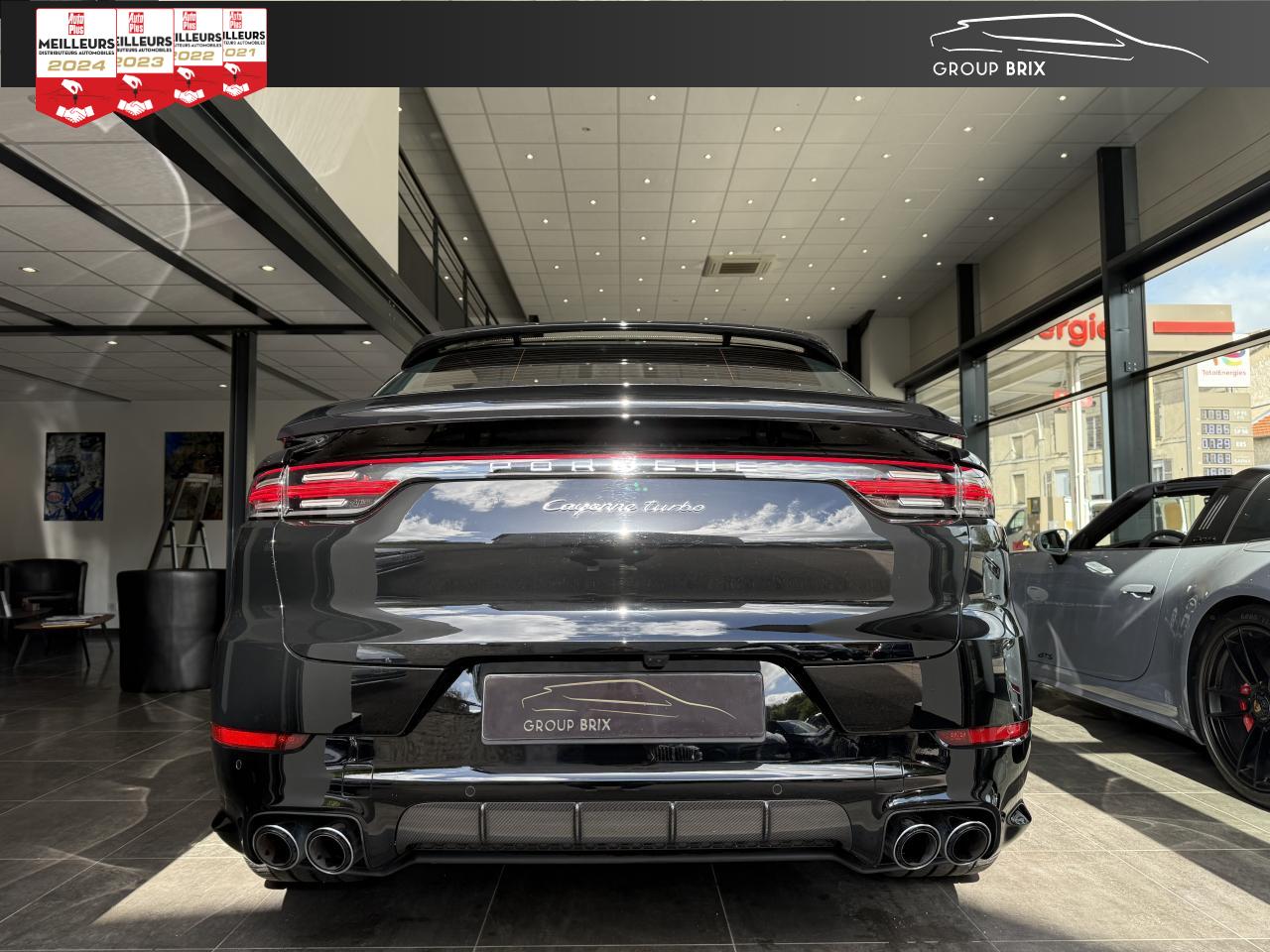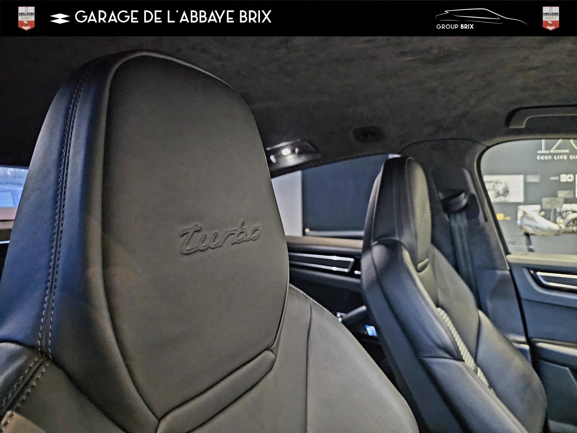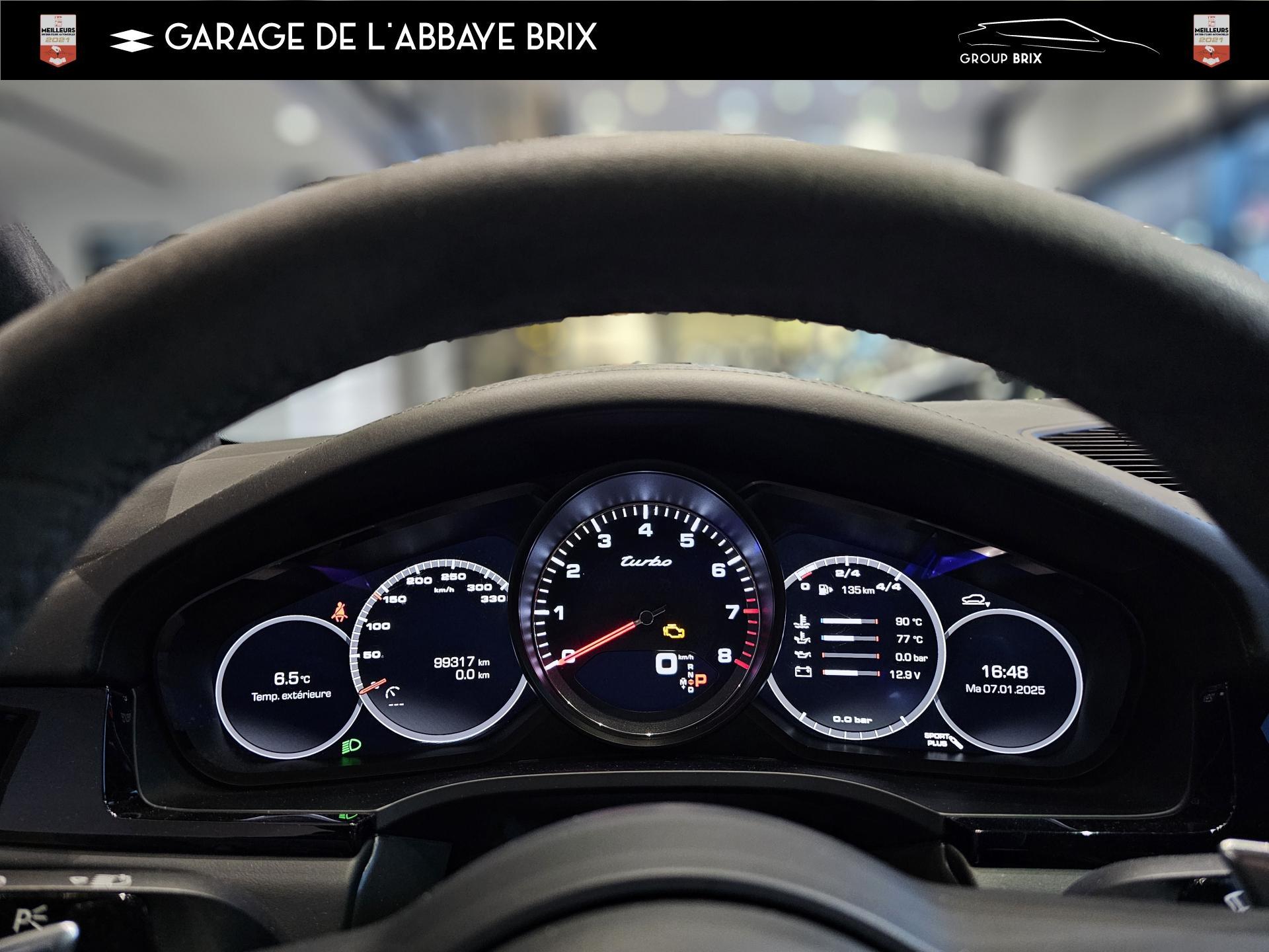 Assistance à la descente (Porsche Hill Control, PHC)Assistance parking avant et arrière avec caméra de reculAvertisseur de freinage d'urgenceBOSE Surround Sound System avec 14 haut-parleurs et caisson de basses, puissance totale de 710 wattsCiel de toit en AlcantaraContrôle stabilité remorque et mode PSM SPORTEntourage des vitres en finition noire brillanteFonction Auto-HoldHayon automatiqueInscription « turbo » estampée sur les appuie-tête avant et arrièreMode SPORT PLUS avec réglage axé sur les performances pour le moteur, la boîte de vitesse et le châssisPack Sport ChronoPhares à DEL avec fonction Porsche Dynamic Light System (PDLS)Porsche Active Suspension Management (PASM)Porsche Communication Management (PCM) avec module de navigationPorsche Surface Coated Brake (PSCB)Porsche Traction Management (PTM) : transmission intégrale dynamique avec différentiel central multidisque électronique, différentiel de freinage automatique (ABD), système de régulation antipatinage (ASR)Régulateur de vitesseServotronic PlusSièges chauffants à l'avant et à l'arrièreSignature « PORSCHE » et bandeau lumineux intégréSuspension pneumatique adaptativeSystème de stabilité dynamique Porsche Stability Management (PSM) avec régulation du couple moteur (MSR) et stabilisation d'attelageVolant chauffantVolant sport multifonctions avec palettes au volant