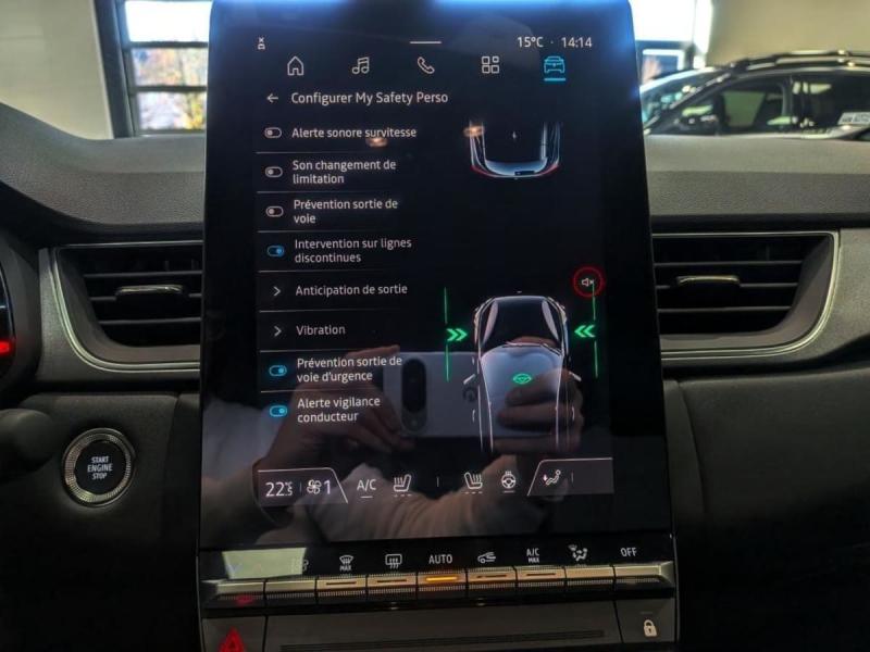 Aide au démarrage en côteAide au freinage d'urgence (A.F.U.)Airbag passager déconnectableAirbags frontauxAirbags latéraux AVAlerte détection de fatigueAlerte distance de sécurité - Information dans tableau de bordAlerte oubli des ceintures de sécurité aux 5 placesAlerte sortie de voieAllumage automatique des essuie-glacesAntenne requinAntiblocage des roues ABSAppel d'Urgence RenaultAppuie-têtes ARBanquette AR coulissante et rabattable 1/3 - 2/3Caméra de reculCarte Renault "Mains libres"Cartographie StandardCeinture centrale AR 3 pointsCeintures de sécurité AV réglables en hauteurChargeur smartphone à inductionClimatisation automatiqueCondamnation centralisée des portes avec télécommande et condamnation des portes en roulantConsole centrale de rangement avec accoudoirCoques de rétroviseurs noir/teinte caisseEclairage AV et AR Full LED Pure VisionFeux AR LED avec signature en forme de ''C'' et animation 3DFeux de stop à LEDFrein de parking électrique avec fonction Auto-HoldHarmonie noireHayon AR manuelIndicateur de changement de vitesseJantes alliage 18"Lève-vitres électriques et impulsionnelsLiseuses AV à LEDLunette AR chauffantePalettes au volantPeinture mono-tonPlancher de coffre mobilePoignées de portes ton caisseRégulateur limiteur de vitesseRépétiteurs latéraux de changement de directionRétroviseur intérieur électrochromeReconnaissance des panneaux de signalisationRenault Multi-senseSellerie TechnoSièges AV réglables en hauteurSièges avant + volant chauffantsSystème de détection de la pression des pneumatiquesSystème de freinage d'urgence avancéSystème ISOFIX (i-Size) aux places latérales AR et passager AVVitres AR surteintéesVolant en tissus
