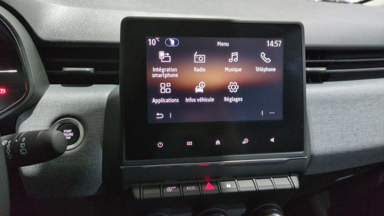 Aide au démarrage en côteAide au parking arAirbags conducteur et passagerAirbags latérauxAlerte d'oubli de ceinture de sécuritéAppuie-têtes arAssistant maintien de voieAvertisseur de distance de sécuritéBanquette ar 60/40Boîte de vitesse manuelle 6 rapportsBouton de déconnection adas / my safety switchCaméra de reculCarte renault mains libresClimatisation manuelleCompteur numérique 7"Contrôle de la traction (tcs)Contrôle dynamique de trajectoire escDéconnexion airbag passager avDirection assistéeEasy link 7'' : système multimédia avec radioEclairage av et ar full led pure visionEssuie-vitre automatique avec capteur de pluieFeux ar cristal full ledFreinage d'urgenceHarmonie beigeIntel speed assistJantes alliage 16" boavistaKit de gonflageLève-vitres électriques av et arMode ecoPeinture métallisée bleu ironRégulateur de vitesseRéplication smartphone sans filRétroviseur intérieur jour/nuitRétroviseurs ext rabattables électriquement Sellerie textile gris motif avec motif 3dSystème d'antiblocage des roues (abs)Système de contrôle de pression des pneumatiques rdcSystème de freinage automatique d'urgence (aebs)Système de surveillance de l'attention du conducteurSystème isofix aux places latérales ar et passager avVerrouillage centraliséeVitres et lunette ar surteintéesVolant textile enduit grainé