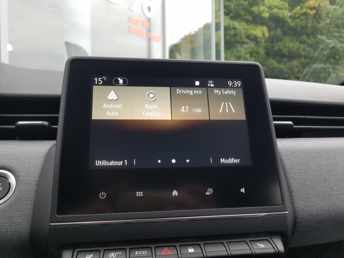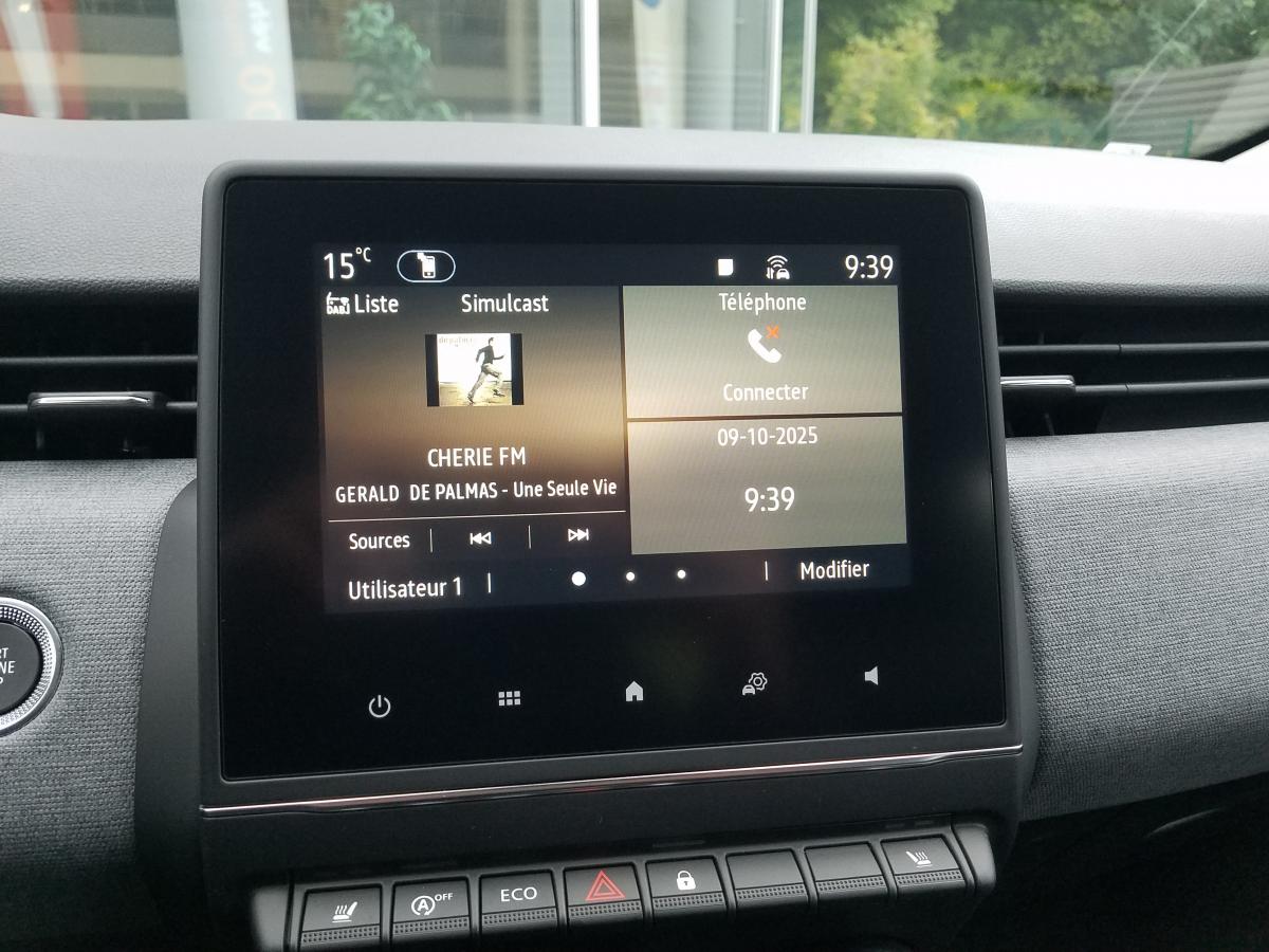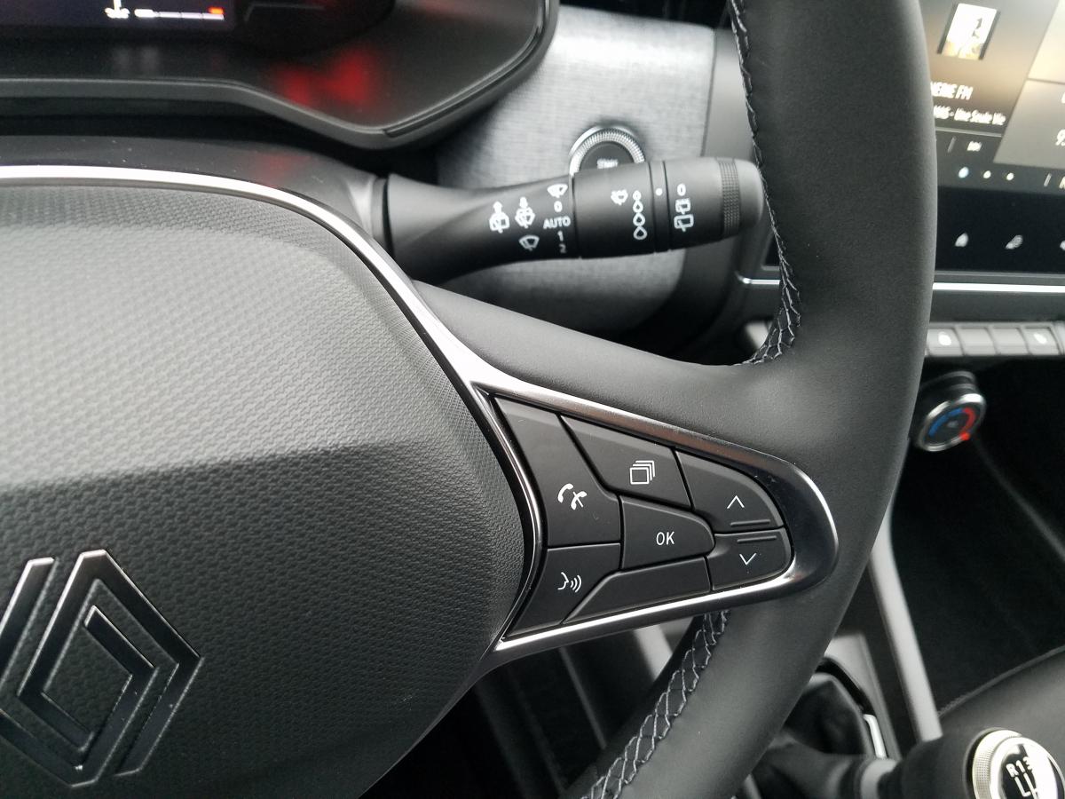 6 haut-parleursABS avec aide au freinage d'urgenceAérateurs latéraux chrome satinéAide au démarrage en côteAide au stationnement arrièreAirbags frontaux et latéraux à l'AVAirbags rideaux de têtes aux places avant et arrièreAlerte attention conducteurAlerte de franchissement de ligneAlerte distance de sécuritéAlerte oubli des ceintures de sécurité aux 5 places avec détection des occupantsAllumage automatique des essuie-glacesAllumage automatique des projecteursAppel d'Urgence RenaultAppuie-tête AV anti "coup du lapin"Appuis-têtes avant fin et 3 appuis-têtes arrière réglables en hauteurAssistance au maintien de voieBanquette arrière rabattable 40/60Bluetooth, 2 USB, 1 AUXBoîte à gants ferméeBouton de déconnection ADAS / my safety switchCeinture centrale arrière 3 points, avec prétensionneurCeintures de sécurité AV et latérales AR à prétensionneurs et limiteurs d'effortCeintures de sécurité avant réglables en hauteurClimatisation manuelleCompteur numérique couleur 7” personnalisableContrôle électronique de stabilité (ESC)Désactivation manuelle de l'airbag passagerDirection assistée électrique variableEasy link 7” : radio avec écran tactile 7” haute résolution (compatible avec Android Auto et Apple CarPlay)Eclairage intérieur avant avec 2 liseuses halogèneEntourage levier de vitesses chromésFeux arrière à LEDFeux de jour à LED intégrés aux projecteursFixation ISOFIX sur siège passager avantFixations Isofix aux places latérales arrièreFrein à main manuelFreinage actif d’urgence, avec détection des voitures, motos, piétons, cyclistes (jour et nuit)Inserts décoratifs sur le volant à effet "chromé-satiné"Kit de gonflage de pneumatiquesLève-vitres arrière électriques impulsionnelsLimiteur de vitesseLogo Renault chromé, avec bandeau supérieur de calandre Noir BrillantPlancher de coffre mobilePoignées de porte avant couleur carrosseriePrévention survitesseProjecteurs avant 100% à LED Performance éclairage Renault LED pure vision avec faisceau allongé et élargiRéception radio numérique (DAB+ et traditionnels FM/AM)Régulateur de vitesseRéplication smartphone sans filRétroviseur intérieur jour et nuitRétroviseurs extérieurs couleur noirRétroviseurs extérieurs électriques et dégivrantsSellerie tissu gris motifs 3D twidaSiège conducteur avec réglage en hauteurSystème d'appel en cas de panne : B-CallSystème de surveillance de pression des pneusVéhicule connecté 4G avec pack de données inclus pendant 3 ansVitres avant électriques avec descente et remontée à impulsionVolant en textile enduit grainé cousuVolant multifonctionVolant réglable en hauteur et en profondeur