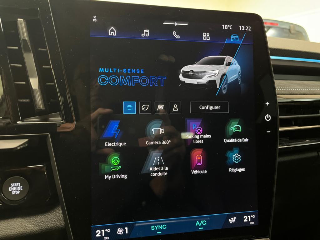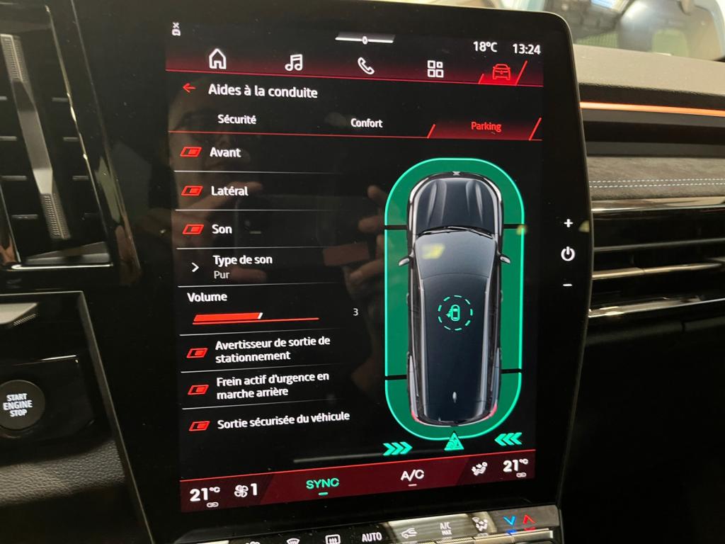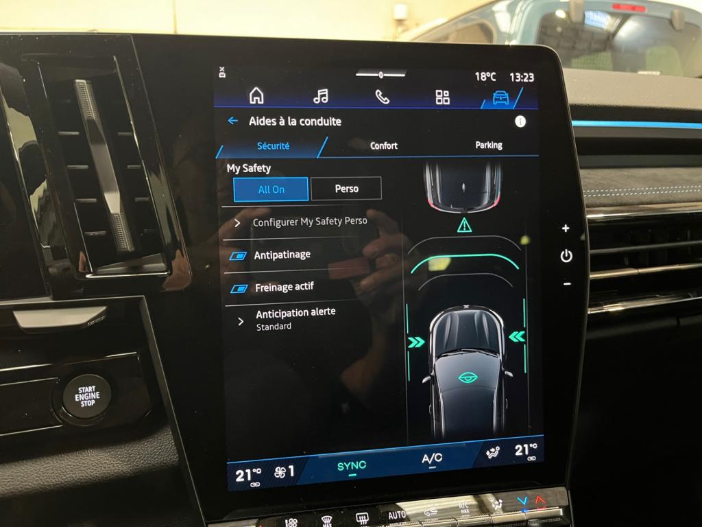 4Control advanced6 haut-parleurs7 placesAccès et démarrage mains-libresAccoudoir central et inserts de portes en textile enduit grainé avec surpiqûres argentAide au maintien dans la voieAide au parking avant, arrière et latéralAvertisseur d'angle mort et prévention de sortie de voie en cas de dépassementAvertisseur de changement de voieAvertisseur de sortie de stationnement en marche arrière avec freinage d'urgence automatiqueBadge esprit AlpineBanquette arrière coulissante sur 22 cmBarres de toit noir matifiéCaméra de reculCapteur de pluieChargeur de smartphone par inductionClimatisation automatiqueContour des vitres chroméFeux arrière à LED effet moiré 3D et avec clignotant à défilementFeux avant LED Adaptative VisionFeux LED adaptive vision (avec fonction antibrouillard intégrée)Frein de parking électrique avec fonction Auto-HoldFreinage d’urgence automatique urbain/péri-urbain avec détection piétons et cyclistesHayon électrique mains libresJantes alliage 20" Daytona diamantées noir avec vernis fumé grisLimiteur de vitesseLogo avant et arrière ice blackOpenR link 12” : système multimédia connecté avec Google intégré incluant pack navigation (Google Maps et Google Assistant) pendant 5 ans, et pack infotainment (Google Play)Pack contrôle à distance (via l’application My Renault) inclus pendant 5 ansPédalier en aluminiumRégulateur de vitesse adaptatif intelligent (i-ACC)Renault MULTI-SENSE (choix des modes de conduite)Réplication smartphone compatible Android Auto & Apple CarPlayRétroviseur intérieur électrochrome sans contourSellene mixte tissu carbone/Alcantara avec surpiqûres bleuesSéquence d’accueil dédiéeSièges avant réglables manuellementSon auditorium ArkamysSystème de reconnaissance des panneaux de signalisation avec alerte de survitesse (inclus pendant 14 ans)Système de surveillance de la vigilance du conducteurSystème OpenR Link avec écran tactile 12" et navigation Google Maps, Google Play et Google AssistantVitres arrière surteintéesVolant spécifique avec insert Alcantara