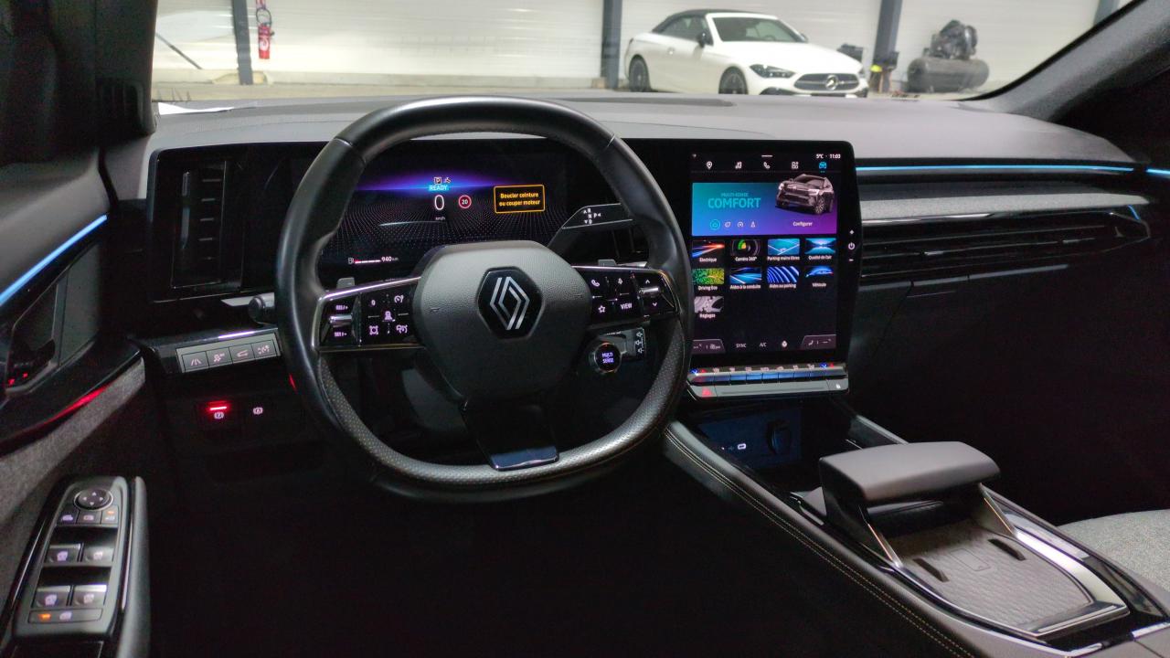 3''7 placesAide au parking av/ar et latéralAlerte de distance de sécuritéAlerte détection de fatigueAlerte franchissement de ligne et assistant maintien dans la voieAssistance de conduite avec une remorqueAudio arkamys auditoriumAvertisseur d'angle mort et prévention sortie de voie en cas de dépassementAvertisseur de sortie de stationnement en marche ar avec freinage d'urgence automatiqueBanquette ar coulissante 1/3-2/3 avec dossier 40/20/40Barres de toit longitudinalesCaméra 3d vision 360°Carte renault accès et démarrage mains libresChargeur smartphone à inductionCiel de toit gris anthraciteClimatisation automatique bi-zoneCommutation automatique des feux de route/croisementDégivrantsDégivrantsDétection intelligente des limitations de vitesse et prévention survitesseEclairage d'accompagnement au sol avec projection logoFaux plancher de coffreFeux av full led adaptative visionFrein de parking électrique avec fonction auto-holdHayon motorisé main libreJantes alliage 19" komah diamantées noirLumière d'ambiance personnalisableMiroir de surveillance enfantsMulti-senseMy safety switch (raccourci vers configuration personnalisée des aides à la conduite)Pack city premium : caméra 3d vision 360°Parking mains-libresPeinture métallisée gris schistePrises au rang 3Rabattables automatiquementRabattables automatiquementRégulateur de vitesse adaptatifRétroviseur intérieur électrochrome sans cadreRétroviseurs extérieurs électriquesRétroviseurs extérieurs électriques à mémoireSellerie mixte tissu gris / textile enduit grainé noirServices googleSièges av manuels réglables en hauteurSortie sécurisée des occupantsSystème de surveillance de la pression des pneusSystème isofix sur siège passager & 2 places rang 2Système multimédia openr link 12" : navigationTableau de bord full numérique 12Volant chauffantVolant réglable en hauteur et profondeur