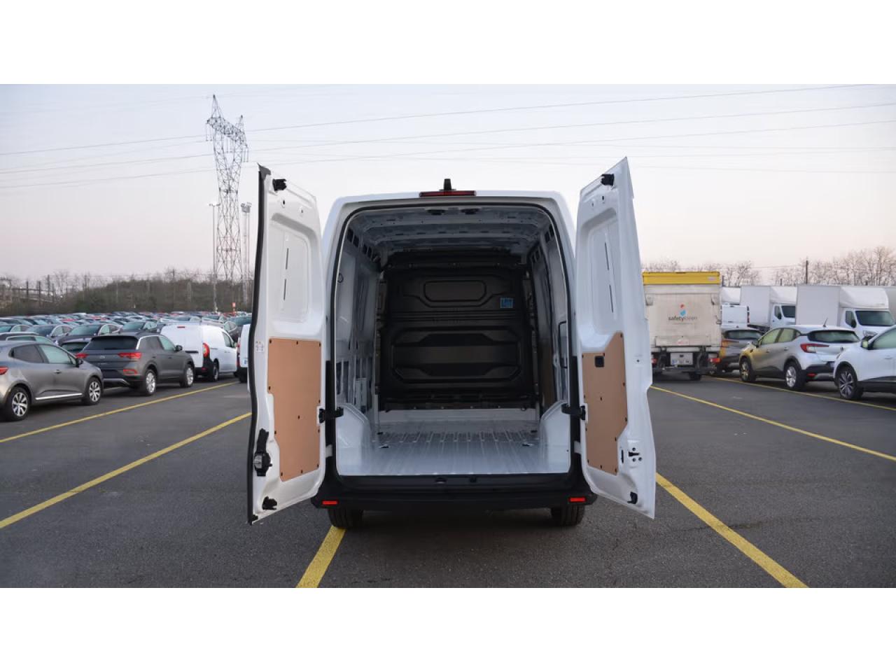 10 anneaux d’arrimage latéraux2 clés 3 boutons (1 repliable & fixe)6 anneaux d’arrimage rotatifs au solAide au démarrage en côteAide au stationnement arrièreAirbag conducteur frontalAlerte d'oubli de ceinture de sécuritéAlerte de franchissement de ligne avec maintien de voieAlerte de survitesse avec reconnaissance des panneaux de signalisationAllumage automatique des projecteursAssistant à la conduite d’une remorqueBanquette passager 2 places fixe avec rangement sous assiseBoîte à gants/tiroir Easy LifeBoîtier connecté AIVCCaméra de reculCeintures de sécurité avant 3 points, réglables en hauteur avec prétensionneur et limiteur d’effort (sauf place centrale)Chargeur de smartphone par inductionChauffageClimatisation automatiqueCloison tôléeCondamnation centralisée des portesContrôle de trajectoire électronique (ESP)EBV : Répartiteur électronique de freinageEclairage d'habitacle à LEDEnjoliveur de calandre couleur caisseEnjoliveurs chromés, intérieur : contours aérateurs et curseurs, pommeau de levier de vitesseEssuie-glace à déclenchement automatiqueExtended GripFreinage d'urgence automatiqueIsolation pour Cloison (thermique et acoustique)Jantes tôle 16” avec protection élargie vangoKit de réparation pneumatiqueLève-vitres avant électriques, à impulsion côté conducteurOpenR link 10" avec nav & services GoogleOuverture de porte arrière indépendantPack aménagement zone de chargementPack chrome intérieurPanneau latéral droit tôléPanneau latéral gauche tôléPanneaux latéraux arrière tôlésPeinture Blanc MinéralPoignée d’aide à la montéePorte latérale droite coulissante tôléePortes arrière tôlées ouvrant à 180°Précâblage attelagePrédisposition EthylotestProjecteurs Full LEDRangement fermé sur planche de bordRégulateur et limiteur de vitesseRéservoir 80 litresRétroviseurs extérieurs électriques et dégivrantsRétroviseurs extérieurs grand angleSellerie tissu chiné gris avec surpiqûres bleues et côté d’assise conducteur renforcé en textile enduit grainéSeuil de coffreSiège conducteur réglable 6 directions avec accoudoir et réglage lombaireSystème antiblocage des roues (ABS) & Assistance au freinage d'urgence (AFU)Système d'appel d'urgenceSystème de surveillance de la pression des pneumatiquesSystème de surveillance de la vigilance du conducteurTableau de bord avec combiné d’instrumentation digital TFT 3,5”Vitres teintéesVolant réglable en hauteur et en profondeur