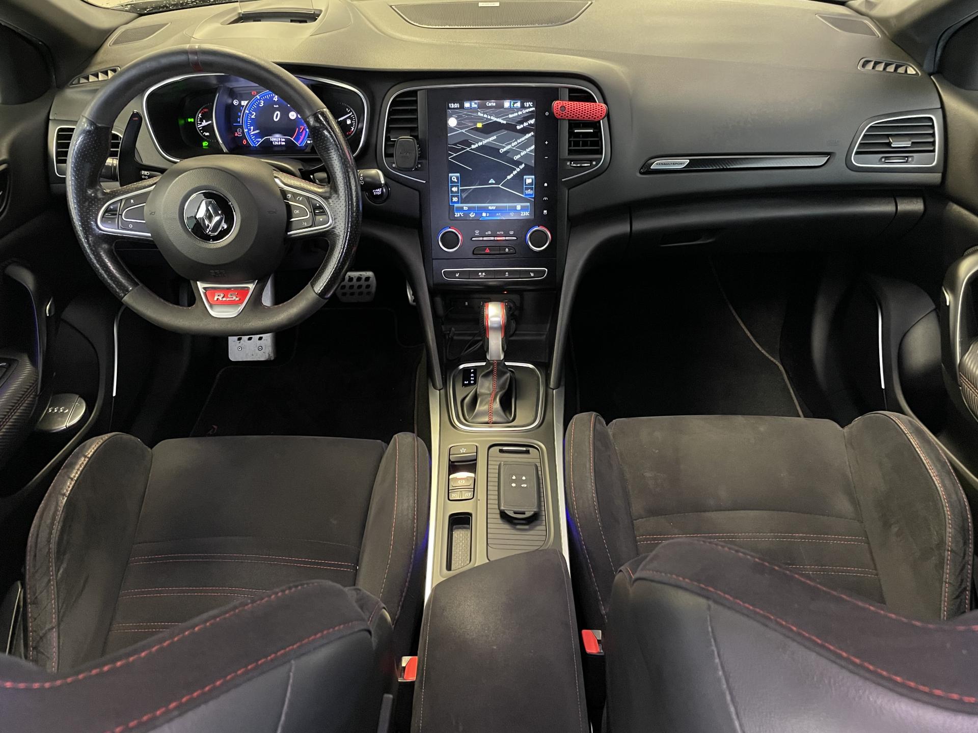 Aide au démarrage en côteAide au parking avantAide au stationnement arrièreAiles arrière élargies R.S.Ailes avant élargies R.S. avec grilles d’air et marquage Renault SportAlerte distance de sécuritéCaméra de reculCarte Renault avec accès et démarrage mains-libres avec fermeture à l’éloignementChâssis Sport avec 4 butées hydrauliques de compressionCiel de toit harmonie noir spécifique R.S.Climatisation automatique bi-zoneContrôle dynamique de trajectoire (ESC)Feux de jour à guide de lumière LED et effet 3DPédalier et repose-pied aluminiumPack R-Link 2Projecteurs R.S. VISION Full LED 3 fonctions (antibrouillard, cornering, longue portée)Sièges avant chauffantsSièges sport R.S. avec appuis-têtes intégrés