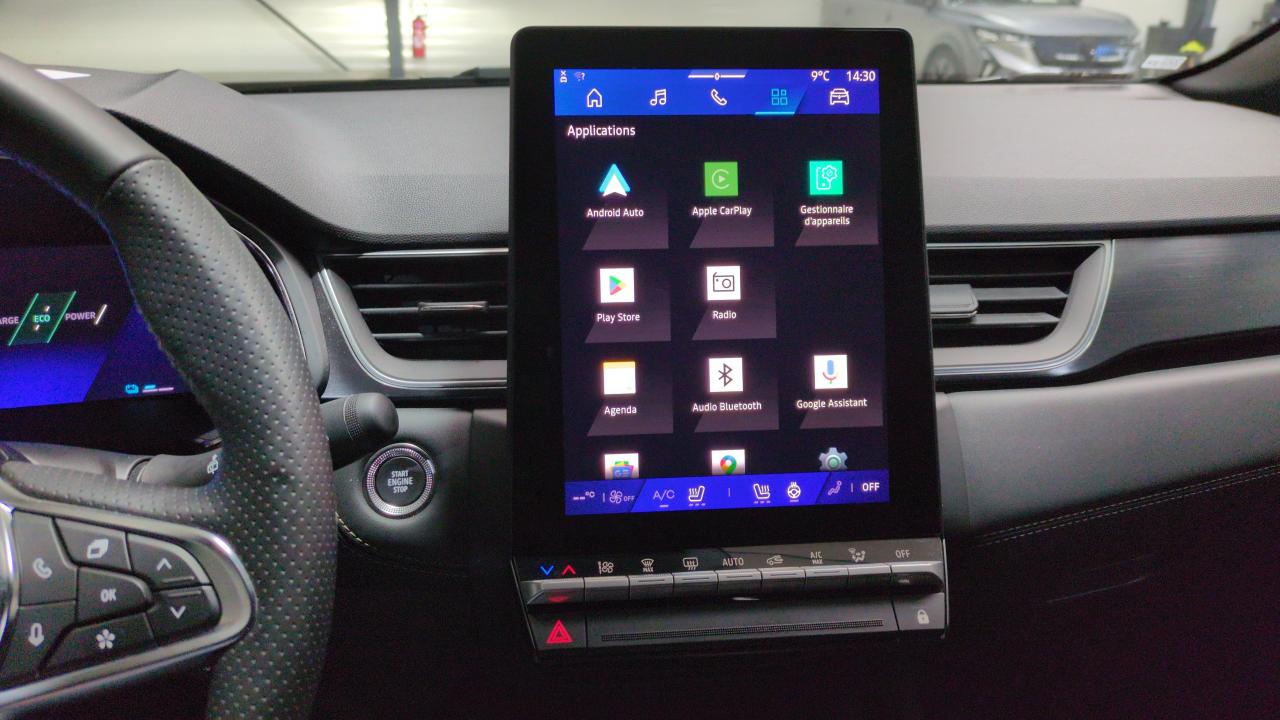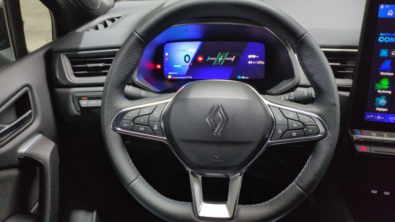 Aide au freinage d'urgence (a.f.u.)Airbag passager déconnectableAirbags frontaux conducteur et passager adaptatifAirbags latéraux avAlerte de distance de sécuritéAlerte détection de fatigueAlerte franchissement de ligne et assistant maintien dans la voieAlerte sortie sécurisée des occupantsAllumage automatique des essuie-glacesAntenne requinAntiblocage des roues absAppuie-têtes arAvertisseur d'angle mort et détection ar avec centrage dans la voieAvertisseur de sortie de stationnement en marche ar avec freinage d'urgence automatiqueBanquette ar coulissante et rabattable 1/3 - 2/3Boîte de vitesse automatique 4 rapportsCaméra 360°Carte "mains libres"Ceinture centrale ar 3 pointsChargeur smartphone à inductionClimatisation automatiqueCompartiment de coffreCondamnation centralisée des portesContrôle de la traction (tcs)Direction assistéeEclairage av et ar full led pure visionFeux ar 3dFeux ar avec signature lumineuse yFeux de stop à ledFiltre à particulesFrein de parking électrique avec fonction auto-holdHayon motorisé main libreIndicateur de changement de vitesseJantes alliage 18" diamantées gravityLève-vitres av électriques à impulsionLunette ar chauffanteMiroirs de courtoisie rétroéclairésMy safety switch (raccourci vers configuration personnalisée des aides à la conduite)Navigation cartographie standardPack extended grip : pneus tout-temps + mode de conduite extended grip + jantes alliage 18" diamantées gravityParking mains-libresPeinture métallisée gris cassiopéePoignées de portes ton caissePrédisposition éthylotestReconnaissance des panneaux de signalisationRéglables et rabattables électriquementRégulateur de vitesse adaptatifRenault multi-senseRépétiteurs latéraux de changement de directionRétroviseur intérieur chrome framelessRétroviseurs extérieurs dégivrantsRoue de secours temporaireSellerie iconicSièges av à réglage électrique 6 voies et conducteur réglage manuel lombaireSièges av chauffantsSystème de contrôle de trajectoire esc avec aide au démarrage en côteSystème de freinage d'urgence avancéSystème de surveillance de la pression des pneusSystème isofix (i-size) aux places latérales ar et passager avSystème multimédia openr link 10.4" avec google intégréTableau de bord avec écran numérique et personnalisable 10"Témoin d'oubli de ceinture de sécuritéVitres latérales et ar surteintéesVolant chauffantVolant tep