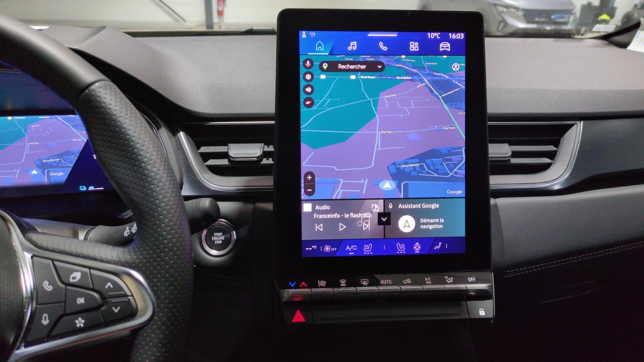 Aide au freinage d'urgence (a.f.u.)Airbag passager déconnectableAirbags frontaux conducteur et passager adaptatifAirbags latéraux avAlerte de distance de sécuritéAlerte détection de fatigueAlerte franchissement de ligne et assistant maintien dans la voieAlerte sortie sécurisée des occupantsAllumage automatique des essuie-glacesAntenne requinAntiblocage des roues absAppuie-têtes arAvertisseur d'angle mort et détection ar avec centrage dans la voieAvertisseur de sortie de stationnement en marche ar avec freinage d'urgence automatiqueBanquette ar coulissante et rabattable 1/3 - 2/3Boîte de vitesse automatique 4 rapportsCaméra 360°Carte "mains libres"Ceinture centrale ar 3 pointsChargeur smartphone à inductionClimatisation automatiqueCompartiment de coffreCondamnation centralisée des portesContrôle de la traction (tcs)Direction assistéeEclairage av et ar full led pure visionFeux ar 3dFeux ar avec signature lumineuse yFeux de stop à ledFiltre à particulesFrein de parking électrique avec fonction auto-holdHayon motorisé main libreIndicateur de changement de vitesseJantes alliage 18" diamantées gravityLève-vitres av électriques à impulsionLunette ar chauffanteMiroirs de courtoisie rétroéclairésMy safety switch (raccourci vers configuration personnalisée des aides à la conduite)Navigation cartographie standardPack extended grip : pneus tout-temps + mode de conduite extended grip + jantes alliage 18" diamantées gravityParking mains-libresPeinture métallisée gris cassiopéePoignées de portes ton caissePrédisposition éthylotestReconnaissance des panneaux de signalisationRéglables et rabattables électriquementRégulateur de vitesse adaptatifRenault multi-senseRépétiteurs latéraux de changement de directionRétroviseur intérieur chrome framelessRétroviseurs extérieurs dégivrantsRoue de secours temporaireSellerie iconicSièges av à réglage électrique 6 voies et conducteur réglage manuel lombaireSièges av chauffantsSystème de contrôle de trajectoire esc avec aide au démarrage en côteSystème de freinage d'urgence avancéSystème de surveillance de la pression des pneusSystème isofix (i-size) aux places latérales ar et passager avSystème multimédia openr link 10.4" avec google intégréTableau de bord avec écran numérique et personnalisable 10"Témoin d'oubli de ceinture de sécuritéVitres latérales et ar surteintéesVolant chauffantVolant tep