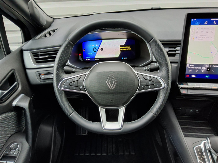 Aide au freinage d'urgence (A.F.U.)Aide au parking AV/AR et lateralAirbag passager deconnectableAirbags frontaux conducteur et passager adaptatifAirbags lateraux AVAlerte de distance de securiteAlerte detection de fatigueAlerte franchissement de ligne et assistant maintien dans la voieAllumage automatique des essuie-glacesAntenne RequinAntiblocage des roues ABSAppel d'urgenceAppuie-tetes ARBanquette AR coulissante et rabattable 1/3 - 2/3Boite de vitesse automatique 4 rapportsCamera de reculCarte "Mains libres"Cartographie StandardCeinture centrale AR 3 pointsChargeur smartphone a inductionClimatisation automatiqueCompartiment de coffreCondamnation centralisee des portesControle de la traction (TCS)Direction assisteeEclairage AV et AR Full LED Pure VisionFeux AR 3DFeux AR avec signature lumineuse YFeux de stop a LEDFiltre a particulesFrein de parking electrique avec fonction Auto-HoldHarmonie noireIndicateur de changement de vitesseJantes alliage 18'' diamantees GravityKit de gonflageLeve-vitres AV electriques a impulsionLunette AR chauffanteMiroirs de courtoisie retroeclairesMy Safety switchPoignees de portes ton caisseReconnaissance des panneaux de signalisationRegulateur de vitesse adaptatifRenault Multi-senseRepetiteurs lateraux de changement de directionRetroviseur interieur chrome framelessRetroviseurs exterieurs degivrants, reglables et rabattables electriquementSellerie TechnoSiege AV reglable en hauteurSysteme de controle de trajectoire ESC avec aide au demarrage en coteSysteme de freinage d'urgence avanceSysteme de surveillance de la pression des pneusSysteme multimedia openR link 10.4" avecGoogle integreTableau de bord avec ecran numerique et personnalisable 10"Temoin d'oubli de ceinture de securiteVitres laterales et AR surteinteesVolant tep