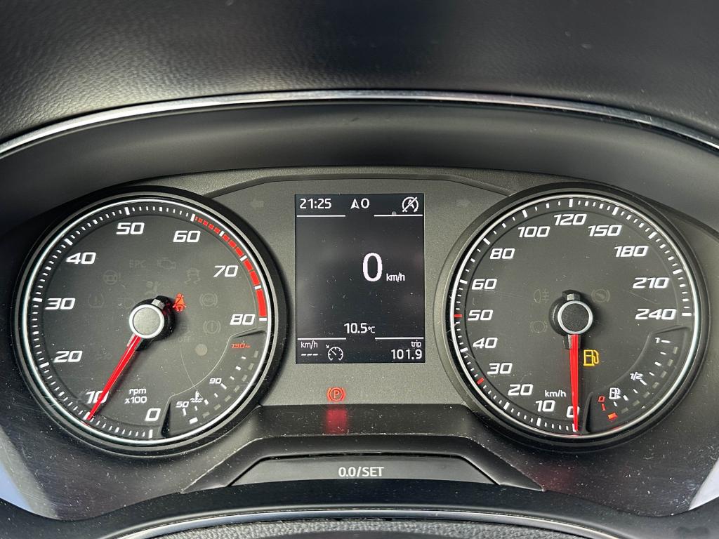 2 Fixations ISOFIX + Top-Tether à l'arrière pour ancrage de sièges enfant3 appuie-tête arrière6 haut-parleursABS électronique (système antiblocage des roues)Aide au démarrage en côte (HHC)Airbags frontaux conducteur et passager (déconnectable côté passager)Airbags latéraux avant tête/thoraxAlerte de perte de pression des pneumatiquesAnti-patinage électronique ASRAssistance au freinage d'urgenceAvertisseurs du non-bouclage des ceintures de sécurité avant et arrièreBanquette arrière rabattable 1/3-2/3Caméra de reculCeintures de sécurité avant trois points à enrouleur avec prétensionneurCiel de pavillon noirCompte-tour électroniqueConnectivity Box avec chargeur à inductionConsole centrale, volant et poignées de portes avec applications noir satinéCorrecteur électronique de trajectoire (ESC)Couvre-coffre rabattableDifférentiel XDSDigital CockpitDirection assistée électromécanique asservie à la vitesseDouble sortie d'échappementEclairage d’ambiance au niveau de la console centrale et de l’emplacement des piedsFull Link (MirrorLink + Android Auto + Apple CarPlay)Garantie 2 ans, kilométrage illimitéJantes alliage 17'' « Dynamic »Kit anti-crevaisonLave-glace arrière à balayage intermittentLevier de frein à main en cuirLimiteur de vitesseMiroir de courtoisie et porte-carte sur pare-soleil côté passagerOrdinateur de bord avec affichage de la température extérieurePack chrome intérieurPack ConducteurPack Full LEDPack RangementPack VisionPare-chocs dans la couleur de la carrosseriePare-soleil avec miroir de courtoisie, avec porte-carte côté conducteurPeinture Bleu Méditerranéen Toit couleur contrastéePhares avant antibrouillard avec fonction ''Corner-light''Plancher de coffre à double fondPoignées de portes couleur carrosseriePommeau de levier de vitesses en cuirProtection antidémarrage électroniqueRails de toit chromésRétroviseurs extérieurs peints dans la couleur du toitRétroviseurs réglables électriquement avec rappels latéraux de clignotant intégrésSeat Drive ProfileSellerie tissu Nora FRSiège conducteur réglable en hauteurSiège passager avant réglable en hauteurSièges confortSpots de lecture à l'avantSpring PackSummer PackSuspension sportSystème de navigation Europe tactile 8’’ avec lecteur CD, 2 prises USB, 2 ports SD et commande vocaleSystème de surveillance périmétrique "Front Assist" avec freinage d'urgence en villeSystème Start/ Stop avec récupération d'énergie de freinageTableau de bord noir Titan avec similicuir noir à surpiqûres rougesTapis de sol textile à l'avant et à l'arrièreTechnologie WLANTémoin de niveau de carburantVerrouillage centralisé, avec 2 clés pliantes radiocommandéesVitres avant et arrière électriquesVolant multifonctions à méplat avec logo FR