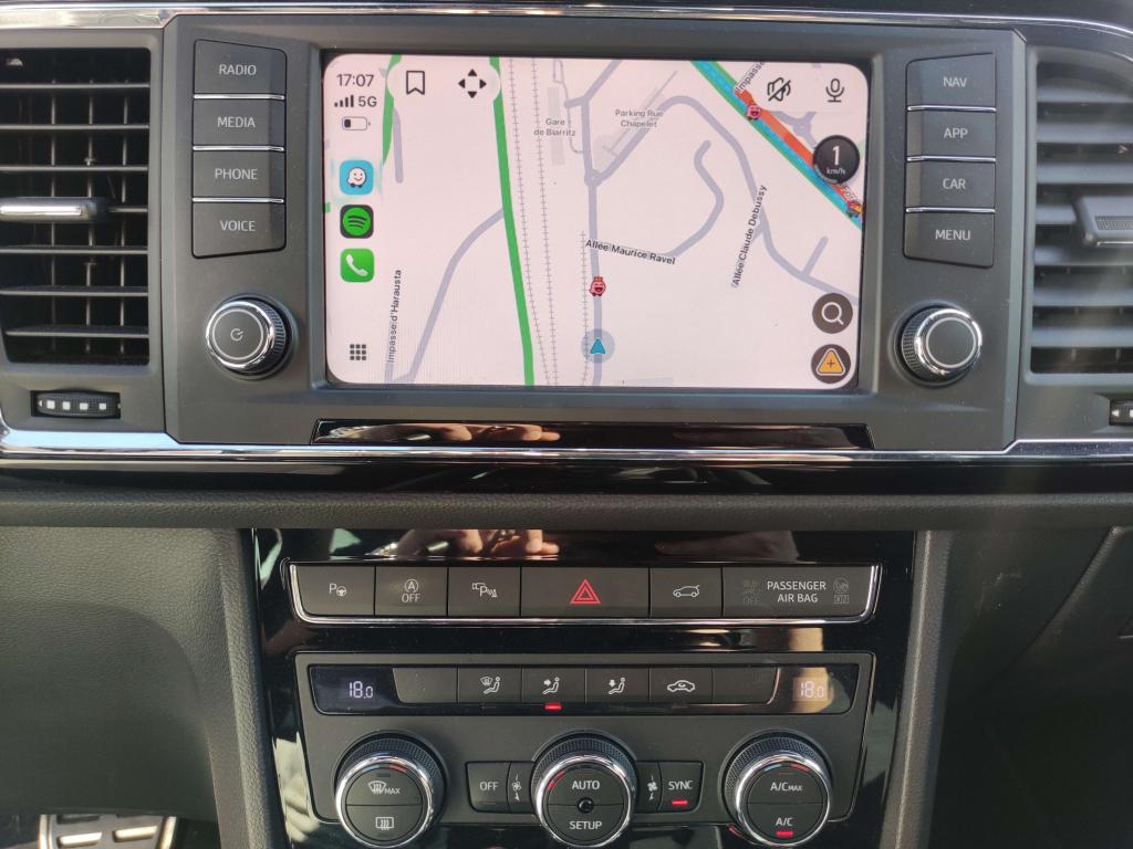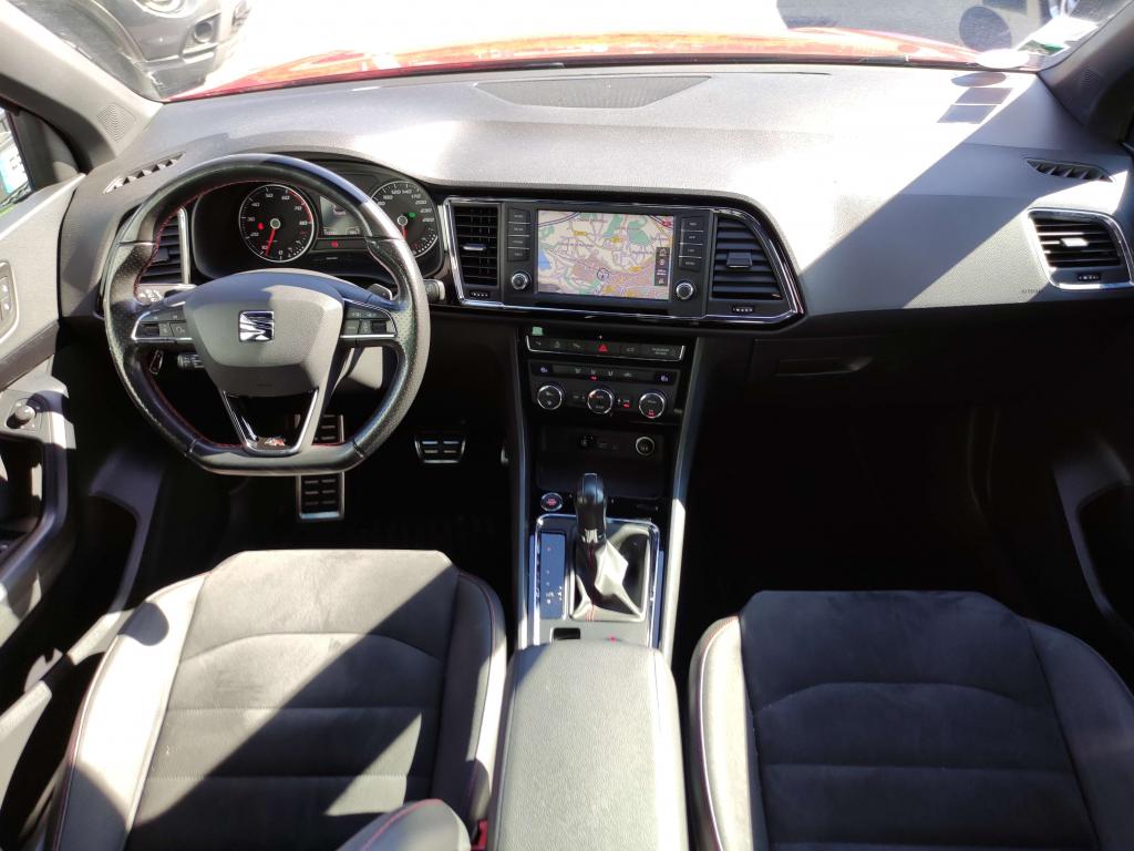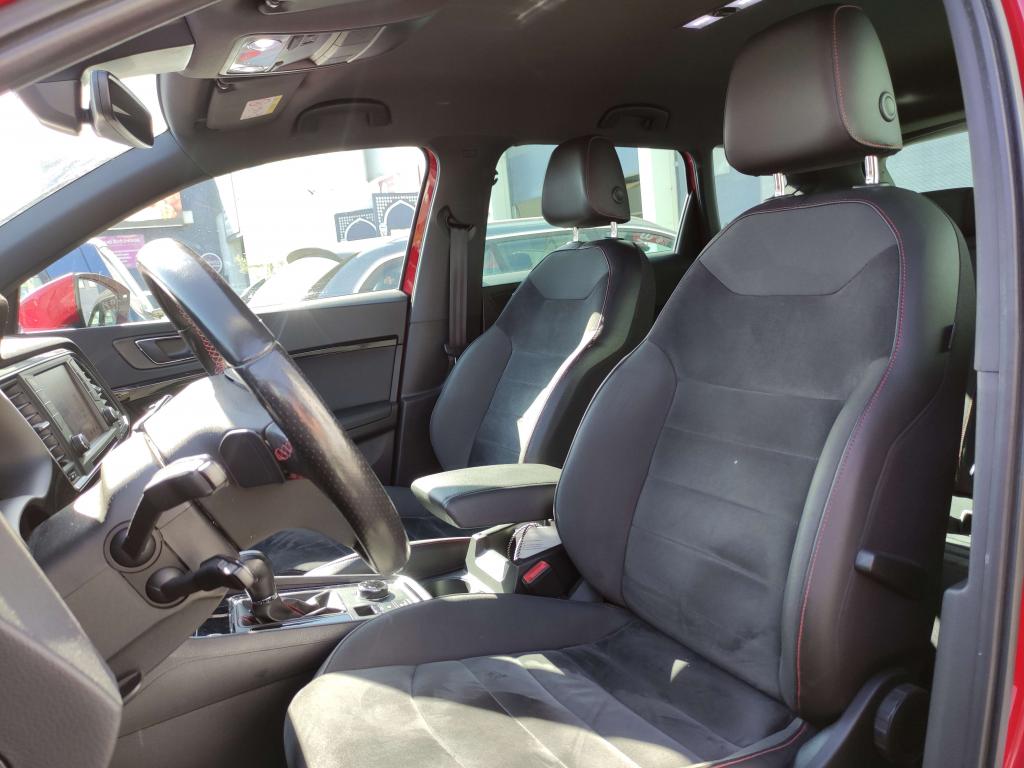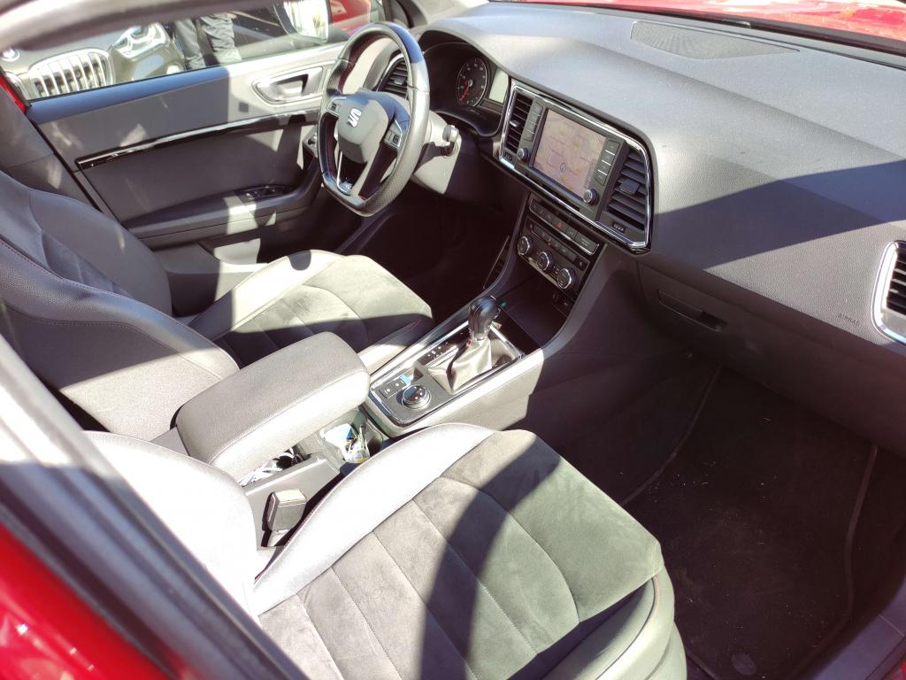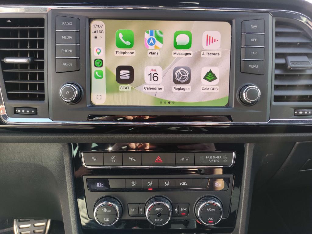 CAMERA 360 degres 2 Prises USBABS électronique (système antiblocage des roues)Aide au démarrage en côte (HHC)Anti-patinage électronique ASRAssistance au freinage d'urgenceClimatisation automatique Climatronic bi-zone avec système Pure AirDétecteur de fatigueDétecteur de pluie et allumage automatique des projecteursDifférentiel XDSDirection assistée électromécanique asservie à la vitesseFrein de parking électriqueFull Link (MirrorLink + Android Auto + Apple CarPlay)Jantes en alliage 18” Performance FRLimiteur de vitesseMolette Driving Experience avec direction progressiveOrdinateur de bord avec affichage couleur 3,5"Projecteurs Full LEDRéglage lombaire des sièges avantRétroviseurs réglables électriquement avec rappels latéraux de clignotant intégrésSEAT Sound system (9 haut-parleurs et caisson de basses à faible encombrement)Top view caméra 360°Vitres avant et arrière électriquesVolant cuir multifonctions réglable en hauteur et profondeur