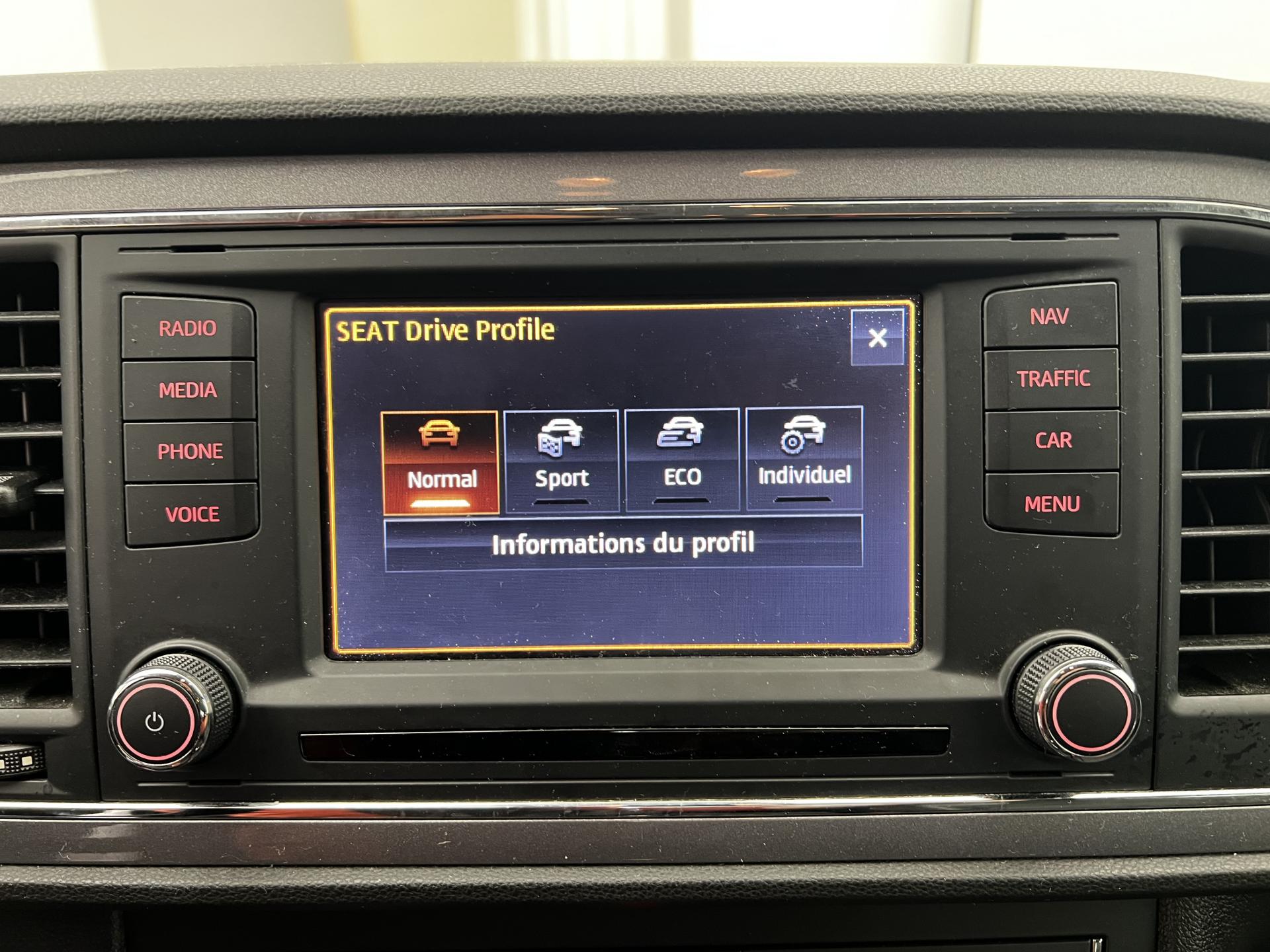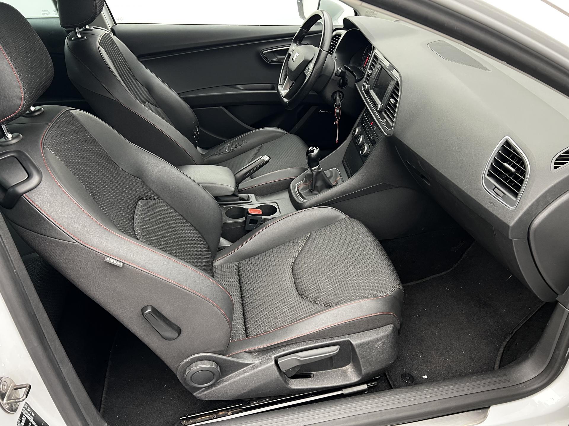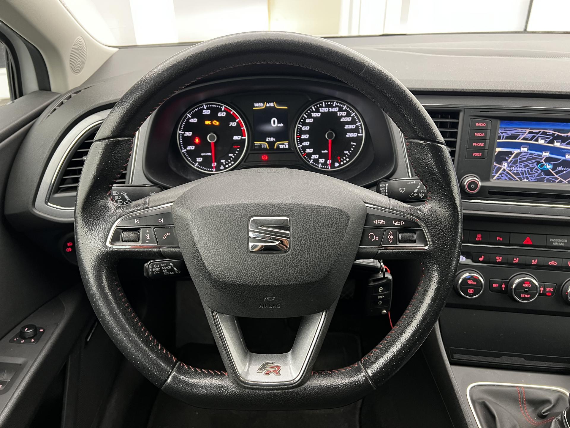 7 Airbags (2 avant / 2 rideaux / 2 latéraux / 1 genoux conducteur) avec désactivation de l'airbag passagerAccoudoir central avant, bouches d'aération arrièreAide au démarrage en côte et système XDS (bloquage de différentiel)Banquette arrière rabattable 1/3-2/3Climatisation automatique bi-zone “Climatronic"Console centrale avec système de rangement et porte-gobelets, et grilles d'aération à l'arrièreFeux arrière à LEDFixations Isofix sur sièges arrièreOrdinateur de bord 3,5'' avec affichage de la température extérieure monochromePare-choc avant/arrière spécifiques FRPrise 12V à l'avantRadars de stationnement avant/arrière, avec visualisation sur l'écran radioRangements sous sièges avantRégulateur de vitesseRétroviseurs extérieurs réglables, rabattables électriquement et dégivrantsSeat Drive ProfileSiège conducteur et passager avec réglage lombaireSiège conducteur et passager réglables en hauteurSièges sport semi-baquet avec Easy-EntrySuspension sportVerrouillage centralisé à distance à télécommande, avec verrouillage de la trappe à carburantVitres arrières surteintéesVitres avant électriquesVolant multifonctionVolant, levier de vitesse et frein à main gainés de cuir + Pack chrome intérieur