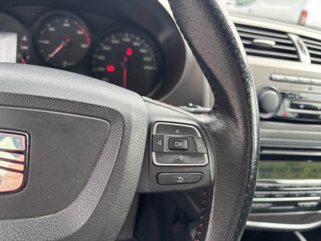 1 porte-gobelet à l'avant et 2 porte-gobelets à l'arrière1 prise 12V (à l'avant de la console centrale)3 appuis-tête arrière pleins réglables en hauteur3 ceintures de sécurité arrière 3 pointsABS électronique (système antiblocage des roues) avec EBV (répartiteur électronique de freinage), ESBS (correcteur électronique de freinage en courbe), EDS (blocage électronique de différentiel) , TCS (contrôle électronique de traction) dAir conditionné automatique "Climatronic" double zone (conducteur et passager avant)Airbags SEAT conducteur, passager avant et latéraux et Airbags SEAT rideauxAlarme de ceinture de sécuritéAntenne de toit avec système antivolAntidémarrage électronique à code variable agréé SRA 7 clésAppuis-tête avant pleins réglables en hauteur et en inclinaisonAumônière au dos du siège passager avantAutoradio CD-MP3 RCD 310 + 8 haut-parleurs + prise auxiliaire + volant multifonctionBanquette arrière confort, rabattable 1/3 - 2/3Boîte de rangement sous siège avant conducteurCeintures de sécurité avant 3 points réglables en hauteur avec prétentionneur électriqueCombiné prise USB + prise auxiliaire (Compatible Ipod)Compte-tour électroniqueDégivrage de lunette arrièreDésactivation de l'airbag SEAT passager avantDifférenciel électronique XDSEclairage de la boîte à gantsEclairage du coffreEOBD (Diagnostic Européen Embarqué)ESP (programme électronique de stabilité) avec EBA (Aide au Freinage d'Urgence) + DSR (Driver Steering Recommendation) avec mise en route automatique des feux de détresse en cas de freinage d'urgence + indicateur de pression des pneus avec signal sonoreEssuie-glaces avant intégrés dans les montants latérauxFiltre anti pollenGarantie 2 ans Kilométrage illimitéGarantie anticorrosion 12 ansIndicateur de rapport de boîte de vitesses automatiqueIndicateur de température extérieureJantes alliage léger "ALBEA" (5 branches doubles) 7 J x 17" + pneus 225/45 R 17"Kit anti-crevaisonLave-essuie-glace arrière à balayage intermittentLave-essuie-glace avant 3 vitesses, dont une intermittenteLogo FR sur le hayon arrière et sur le pare-chocs avantLumières de courtoisie à l'avant et à l'arrièreOrdinateur de bord et régulateur électronique de vitessePack TechniquePack visibilitéPalettes de changement de rapports au volantPare-chocs sport couleur carrosseriePare-soleil avec miroir de courtoisie occultable et éclairé côtés conducteur et passagerPhares avant antibrouillard avec fonction d'éclairage d'anglePhares bi-xénon avec feux diurnes + AFS (système d'éclairage auto-directionnel) + Lave-phares avant + Témoin du niveau de lave-pharePhares halogène à double optiquePoignées de portes couleur carrosserieRecirculation interne de l'airRéglage électrique de l'assiette des pharesRétroviseur extérieur conducteur convexeRétroviseurs extérieurs électriques, dégivrants et rabattables électriquement, couleur argent (PLATA-R)Sécurité enfant sur portes arrièreSiège conducteur réglable en hauteur manuellement avec réglage lombaireSiège passager avant réglable en hauteur manuellement avec réglage lombaireSièges sport et sellerie sportSortie d'échappements double et chromée de 70 mmSuspensions sport spécifiquesSystème anti-jacking (ouverture indépendante porte conducteur, reste des ouvrants et fermeture automatique de tous les ouvrants à partir de 15 km/h)Système Coming Home (temporisation de l'éclairage extérieur) - activé manuellement via le comodo d'appel de phares lorsque la clé est désengagée du NeymanSystème ISOFIX sur sièges arrièreVerrouillage centralisé (portes, hayon, trappe à carburant) avec télécommande à radiofréquence et clé rabattable (3 fonctions ouverture/fermeture/coffre). Fermeture des ouvrants (vitres, toit) par la serrure côté conducteurVitres arrière électriques antipincement et à impulsionVitres arrières surteintéesVitres avant électrique antipincement et à impulsionVitres teintéesVolant réglable en hauteur et en profondeurVolant Sport multifonction avec insert logoté FR et levier de vitesse en cuir